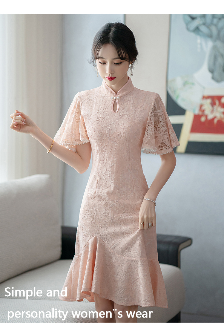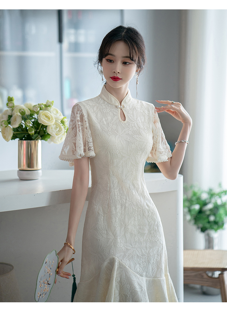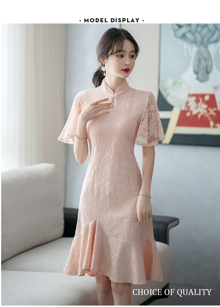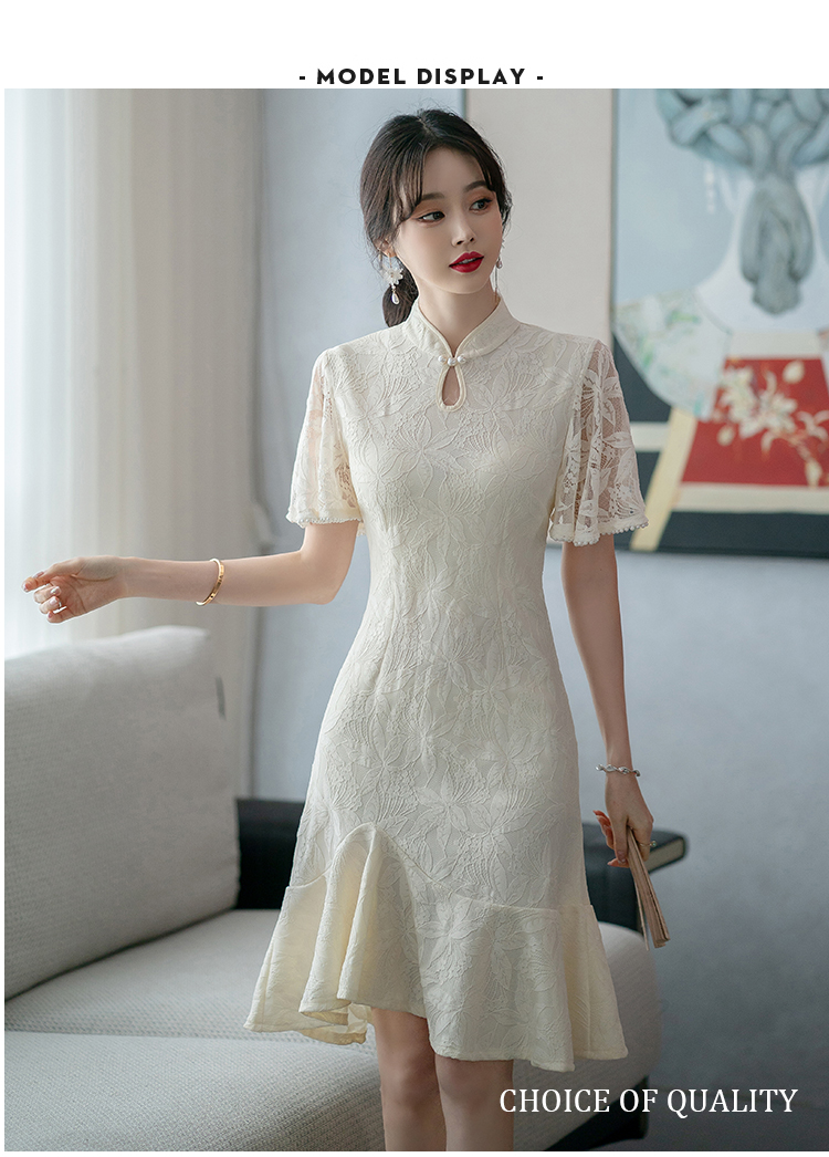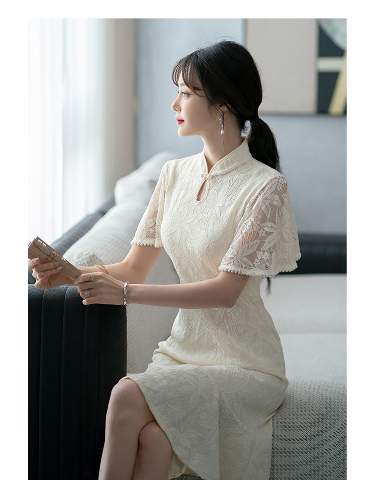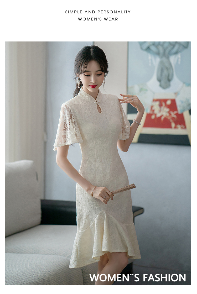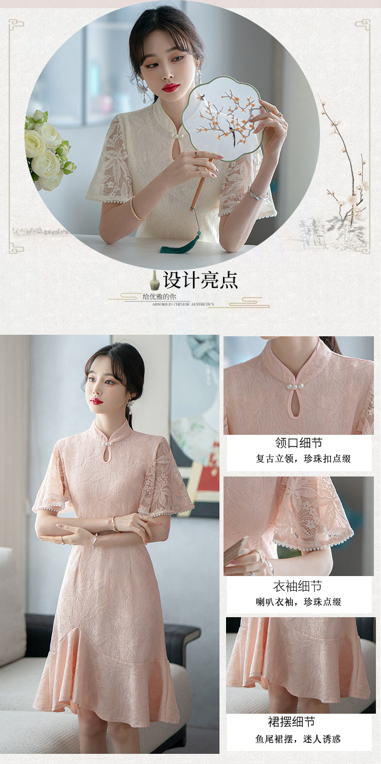 RY1938# 实拍蕾丝旗袍新款夏季年轻款少女改良鱼尾裙日常连衣裙