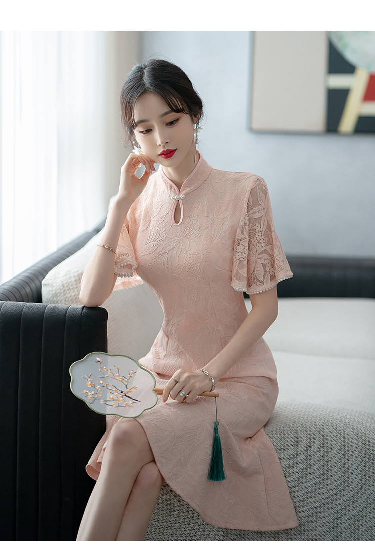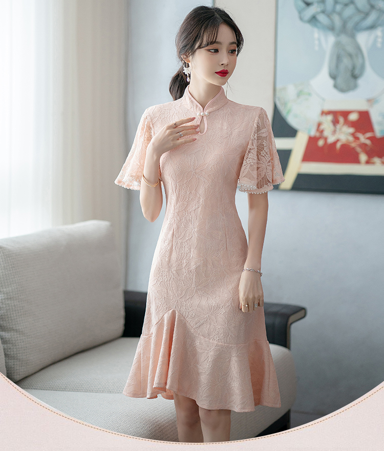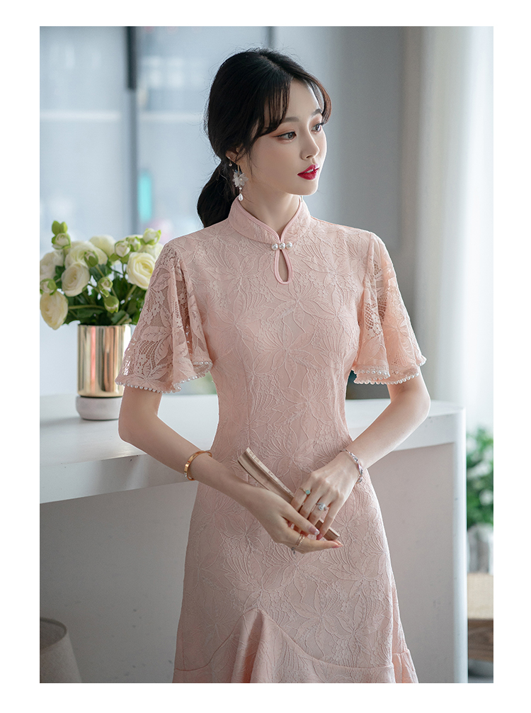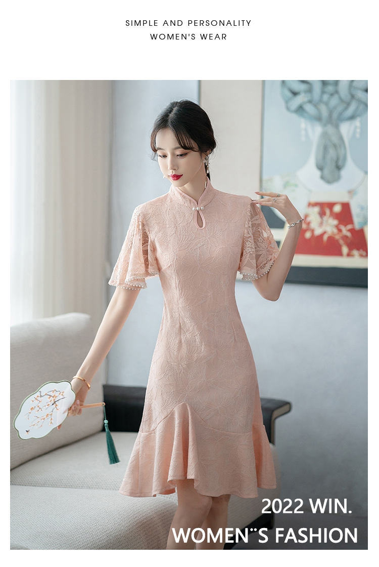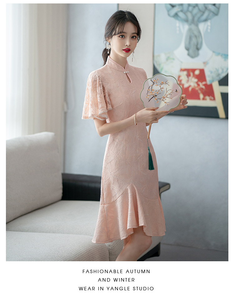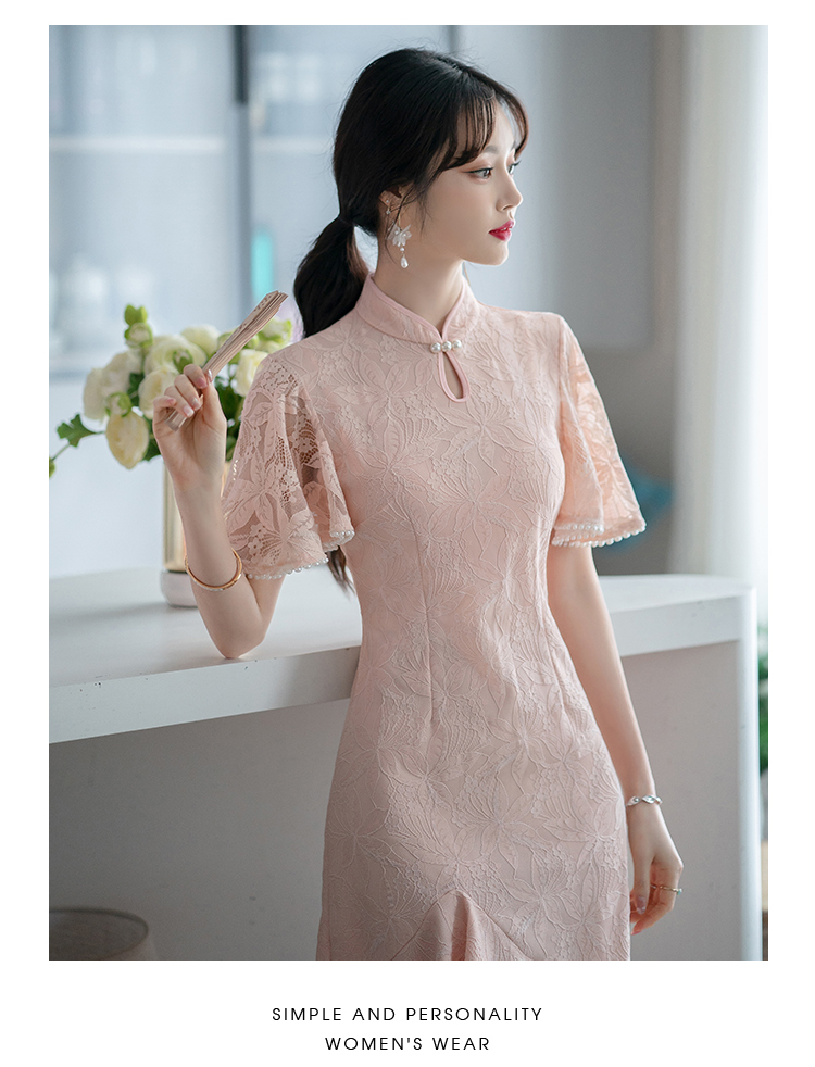RY1938# 实拍蕾丝旗袍新款夏季年轻款少女改良鱼尾裙日常连衣裙