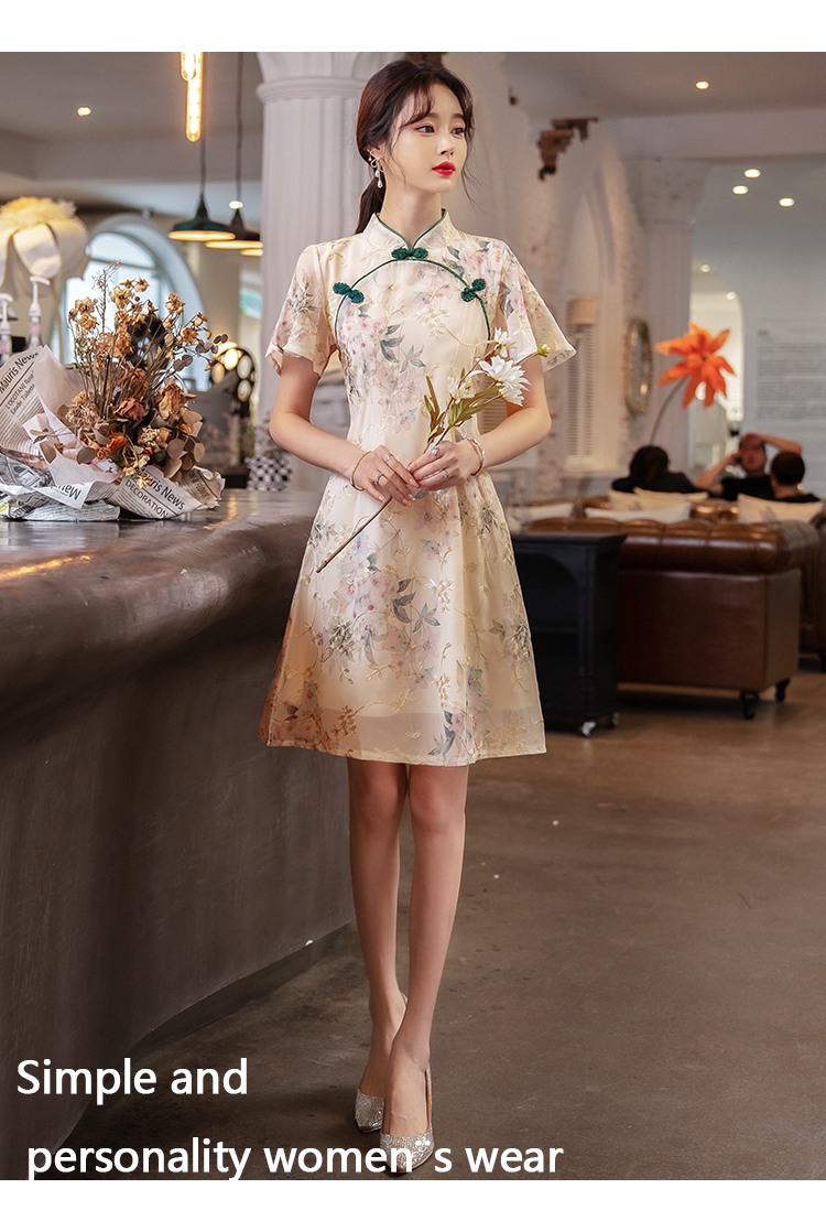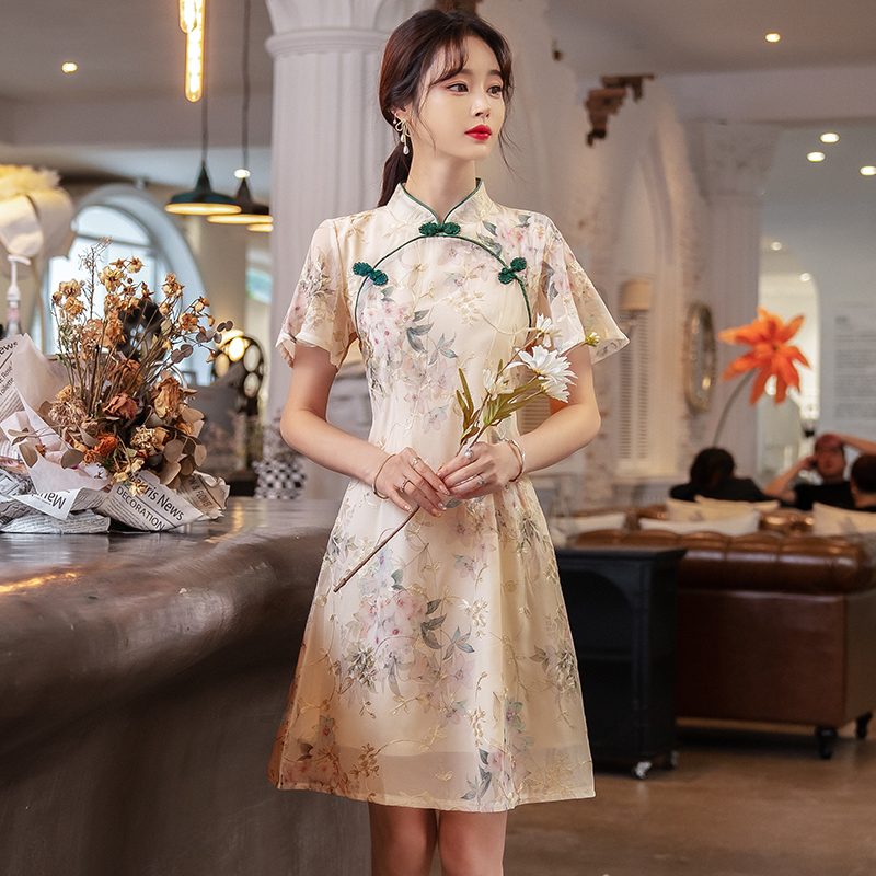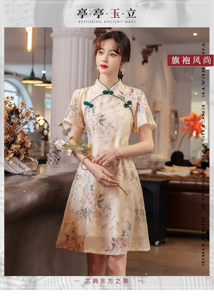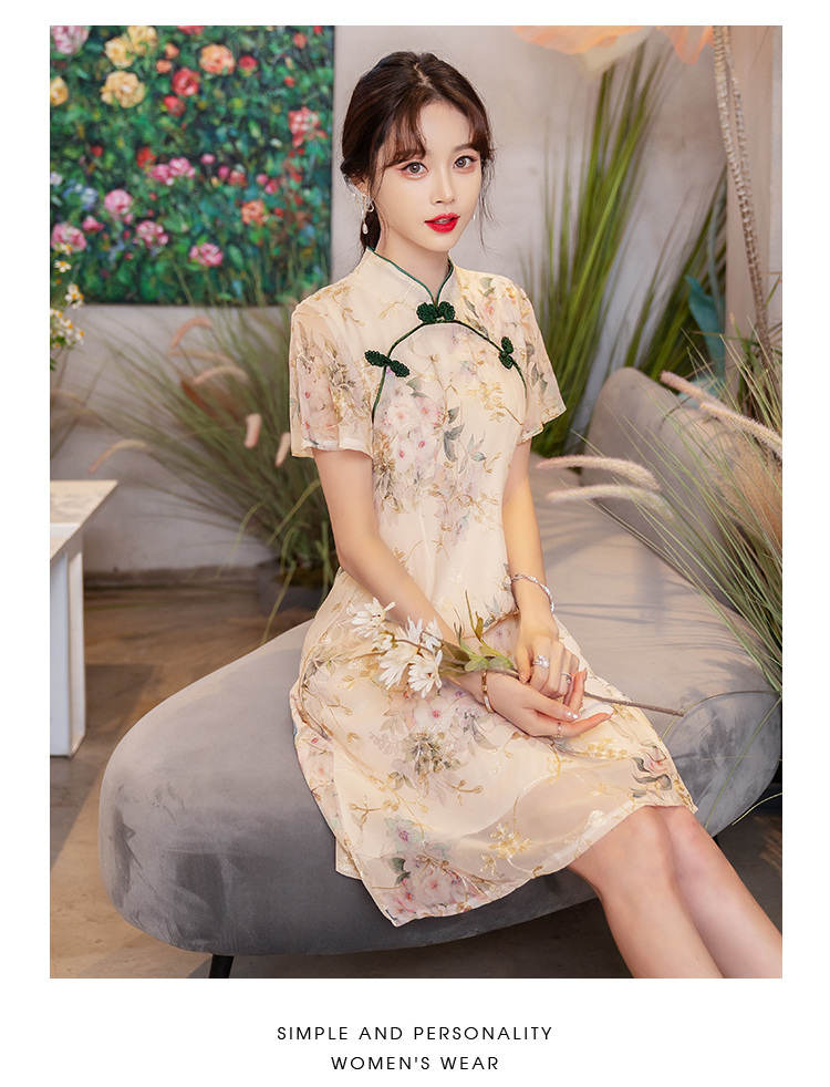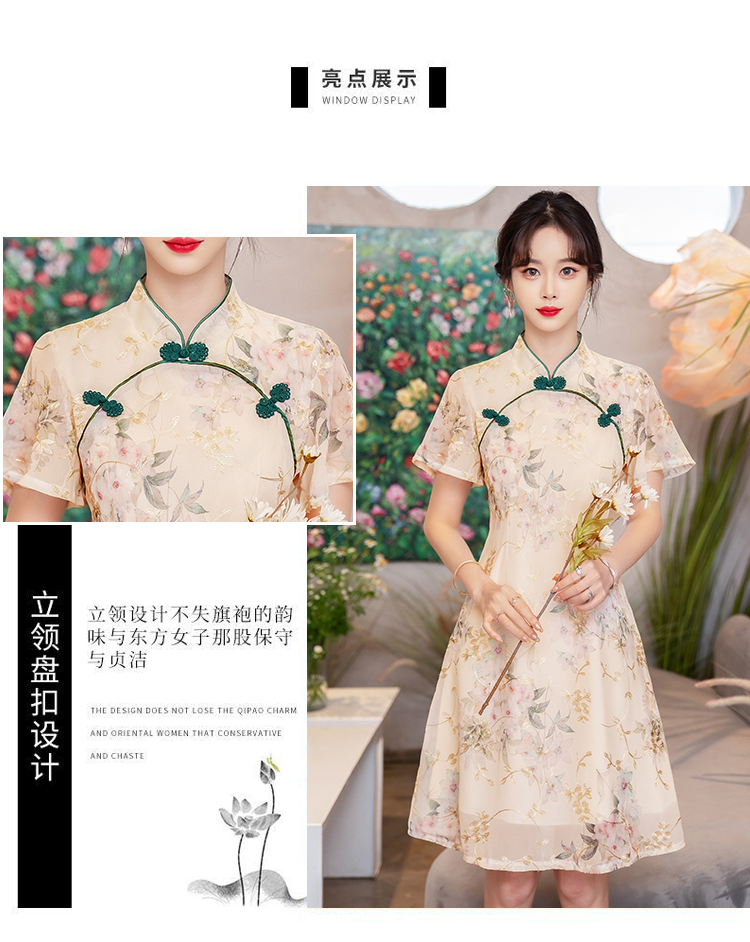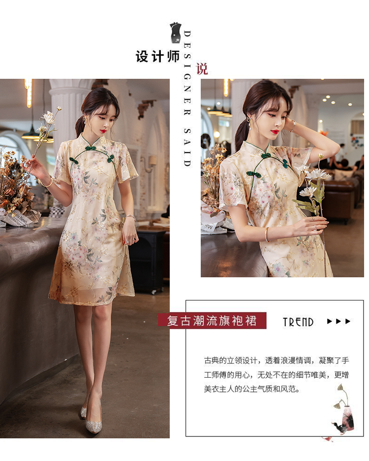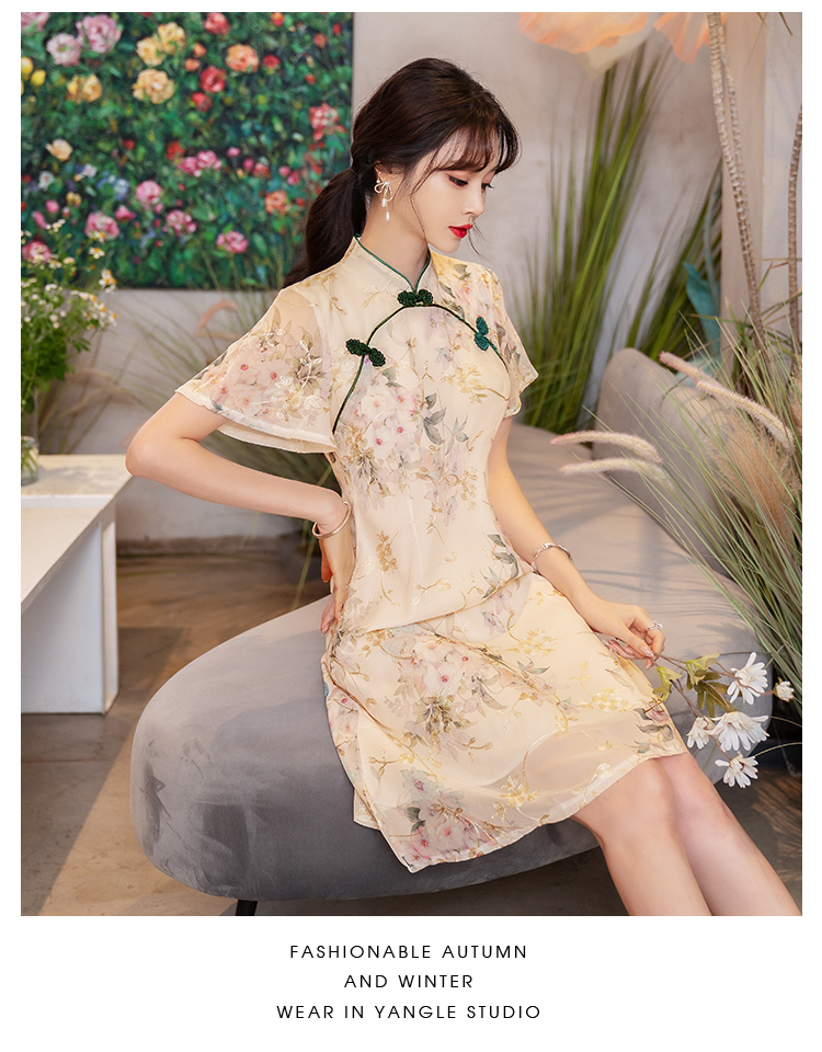 RY1941# 实拍年轻雪纺旗袍改良少女春夏日常气质优雅2026年新款