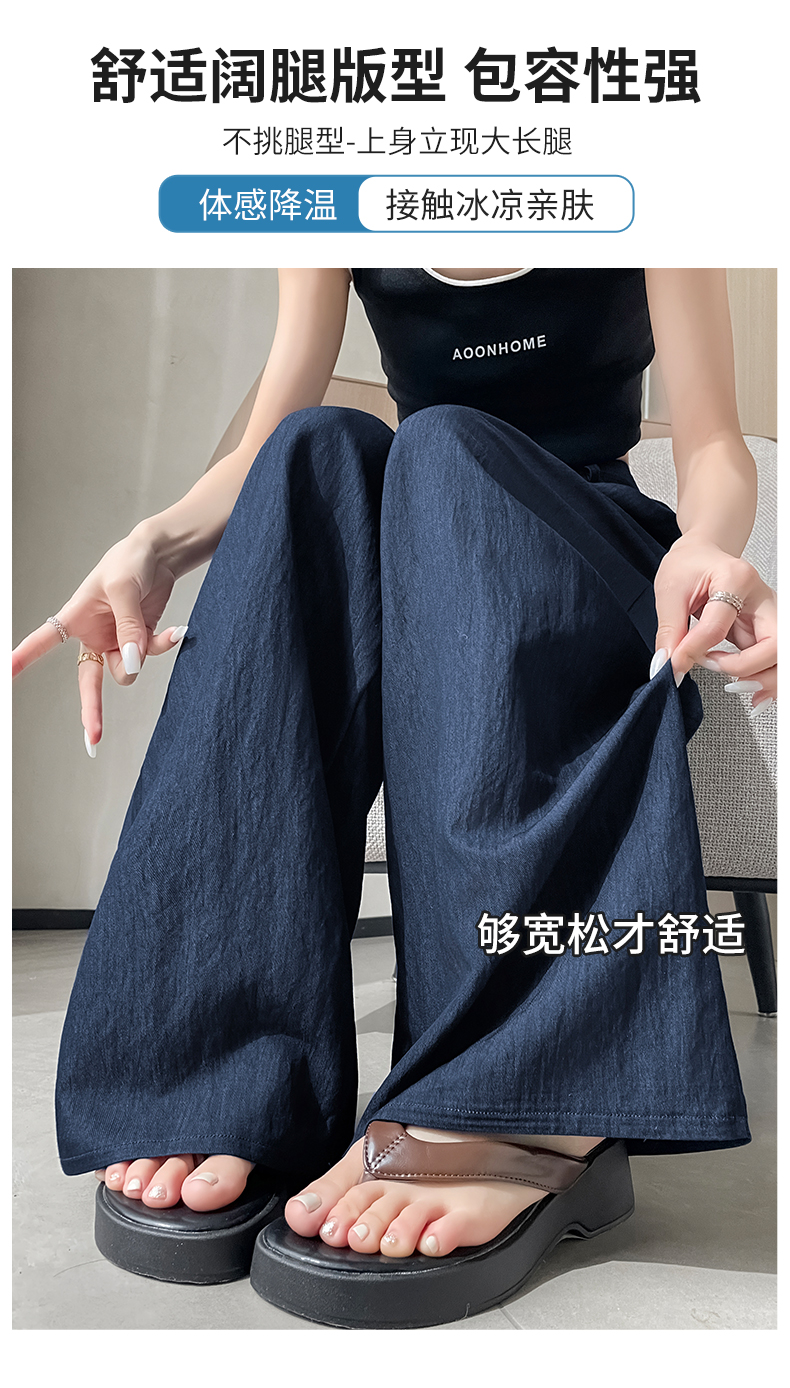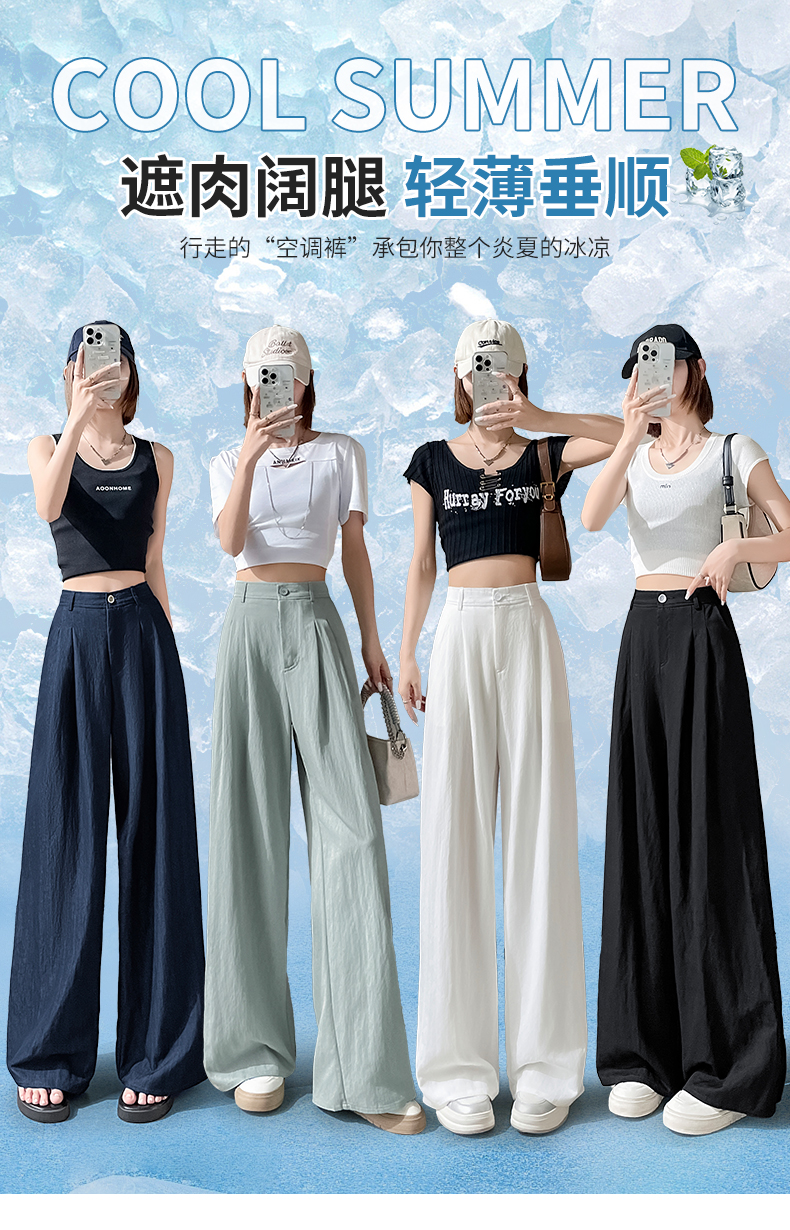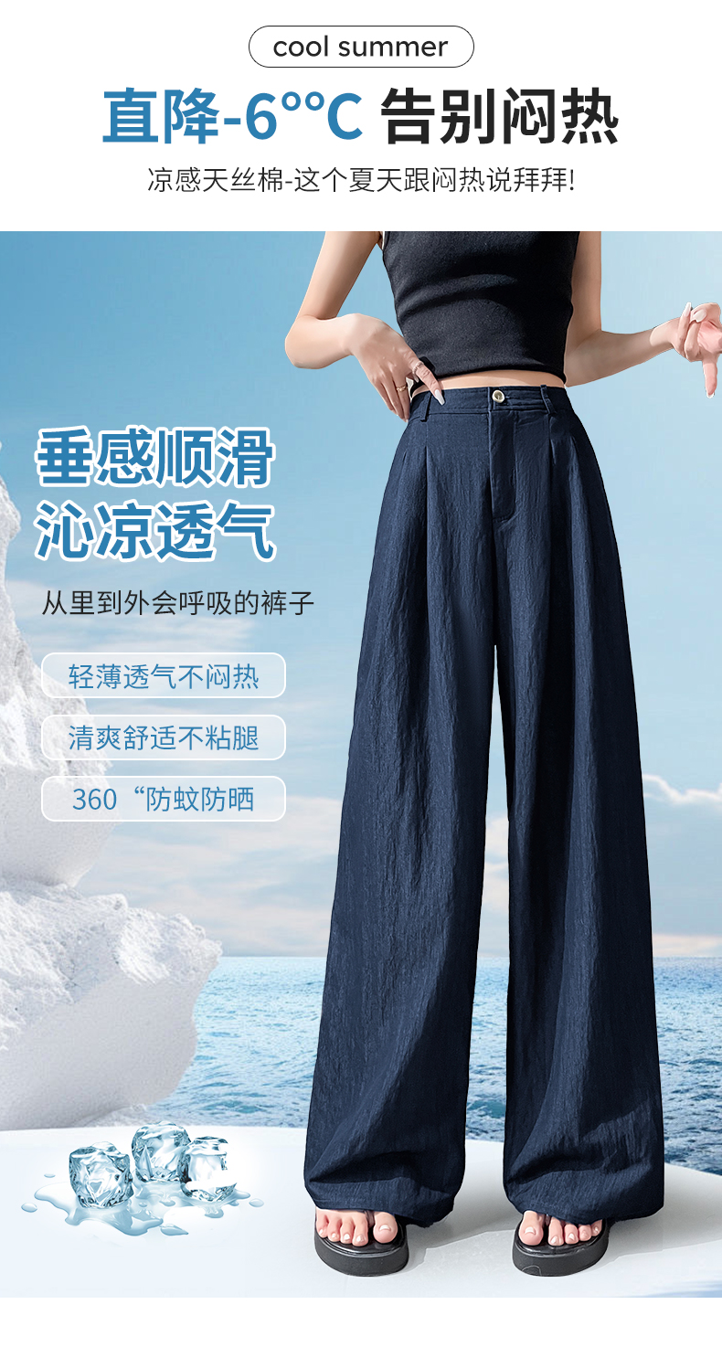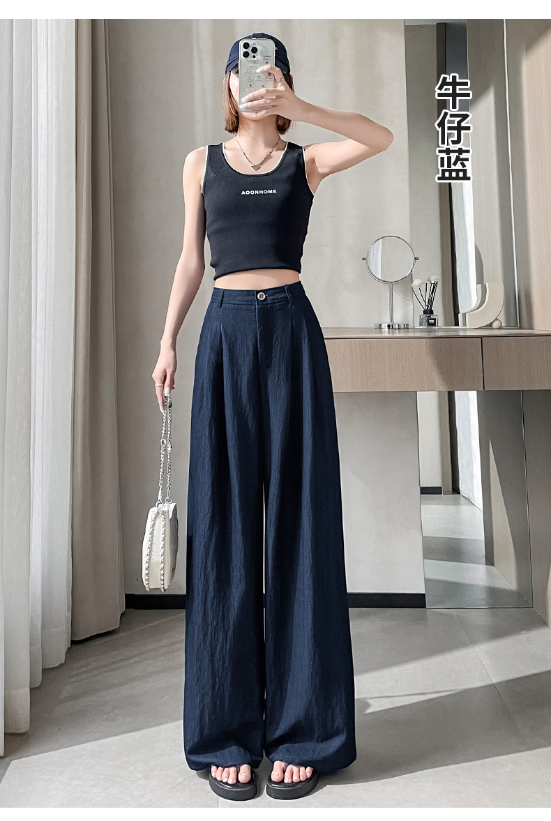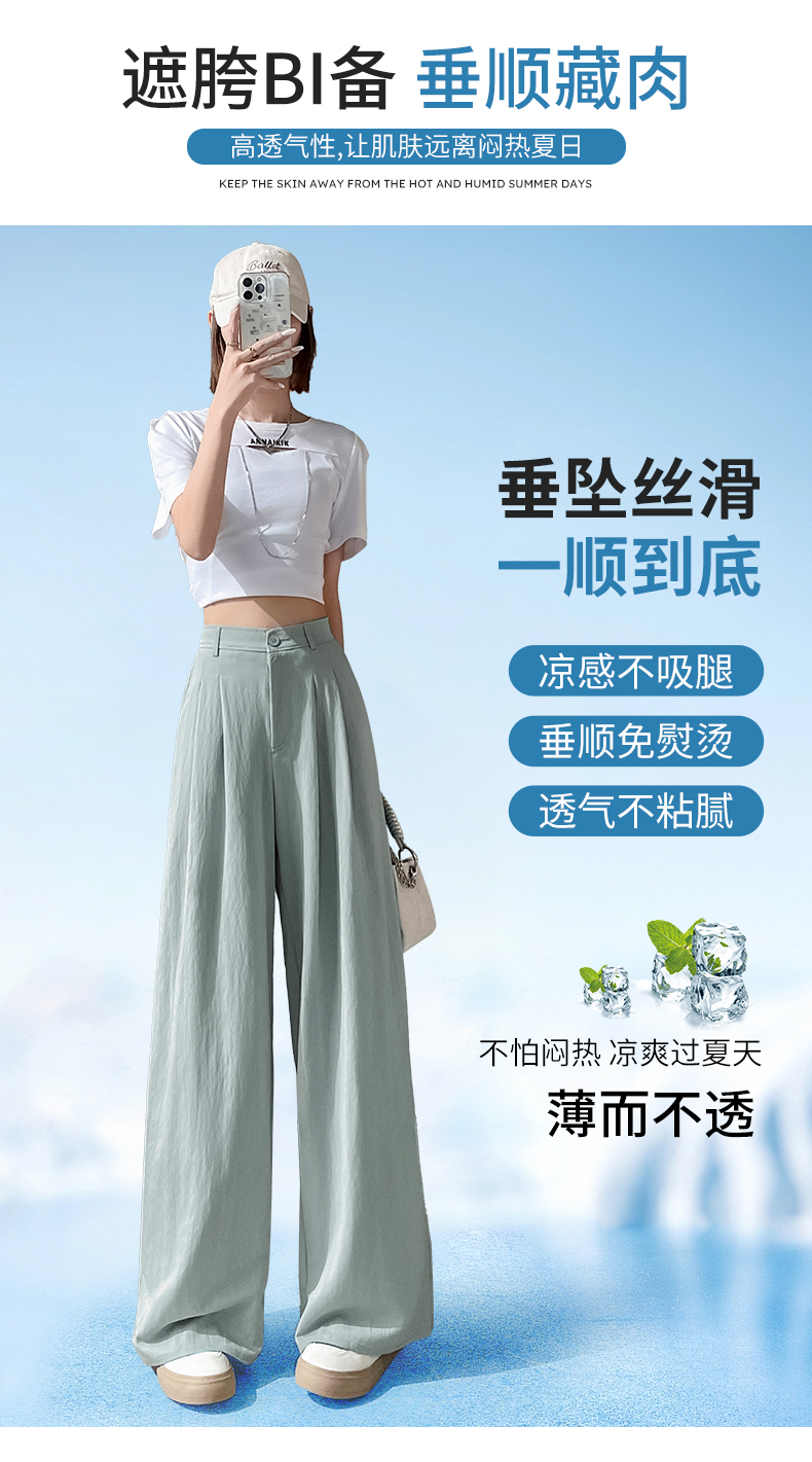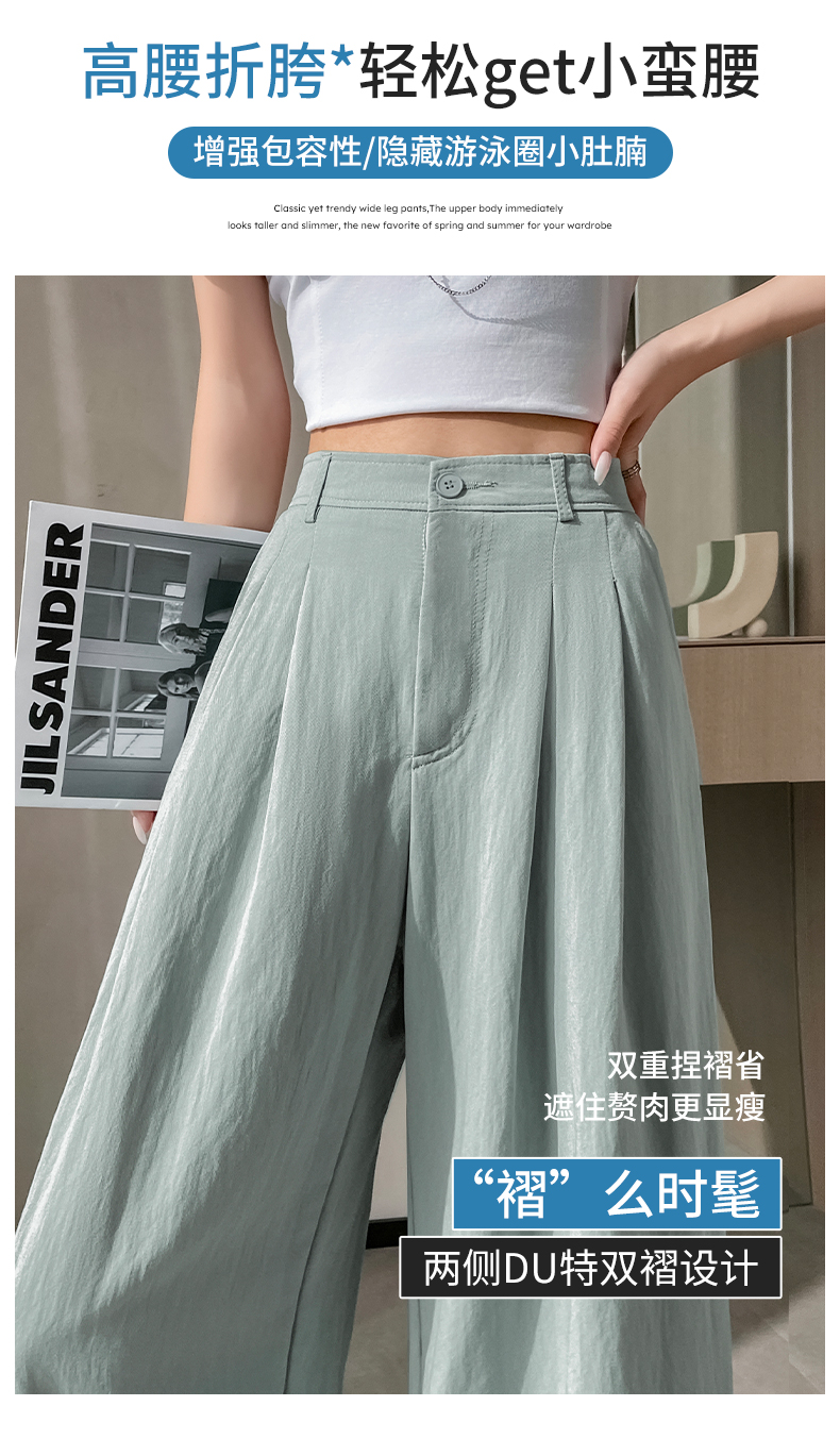 RY1949# 浅蓝色冰丝阔腿裤女2026夏天薄款棉麻山本裤高腰垂感慵懒风西装裤