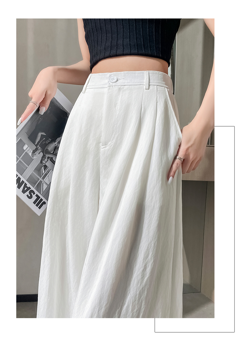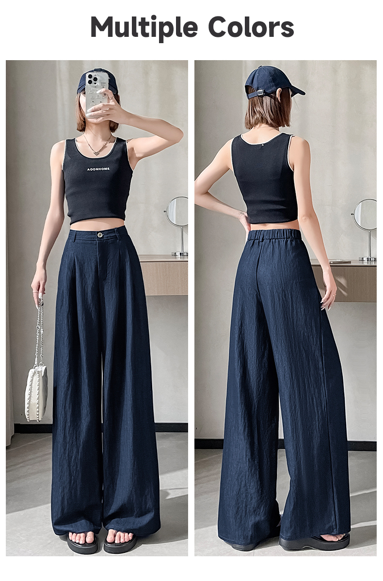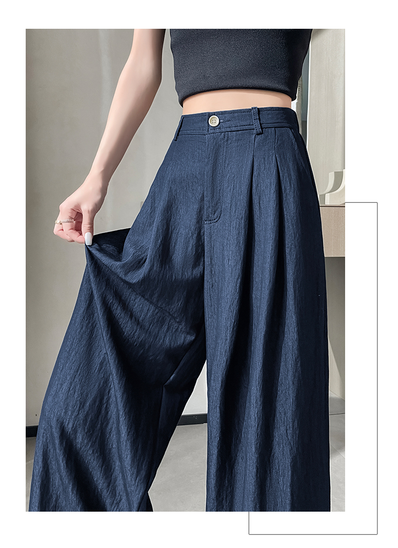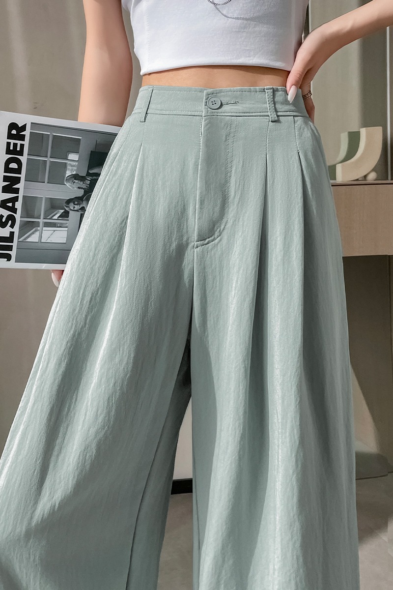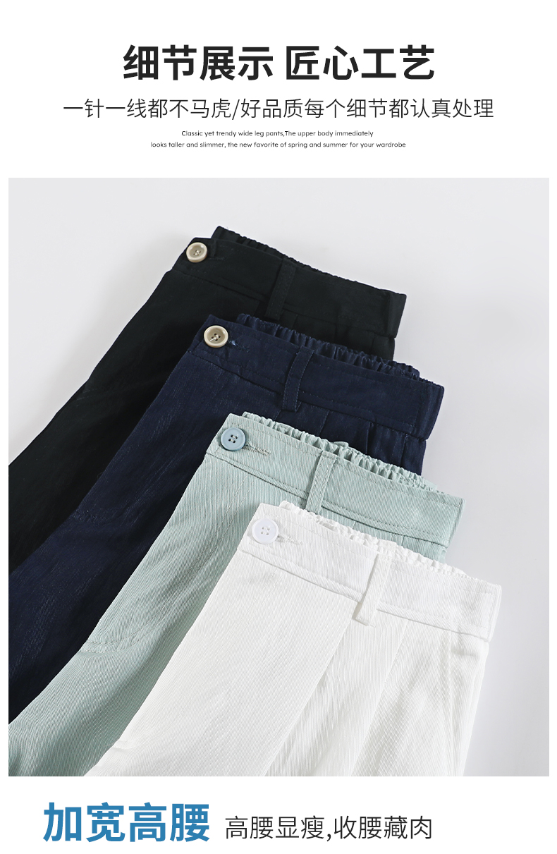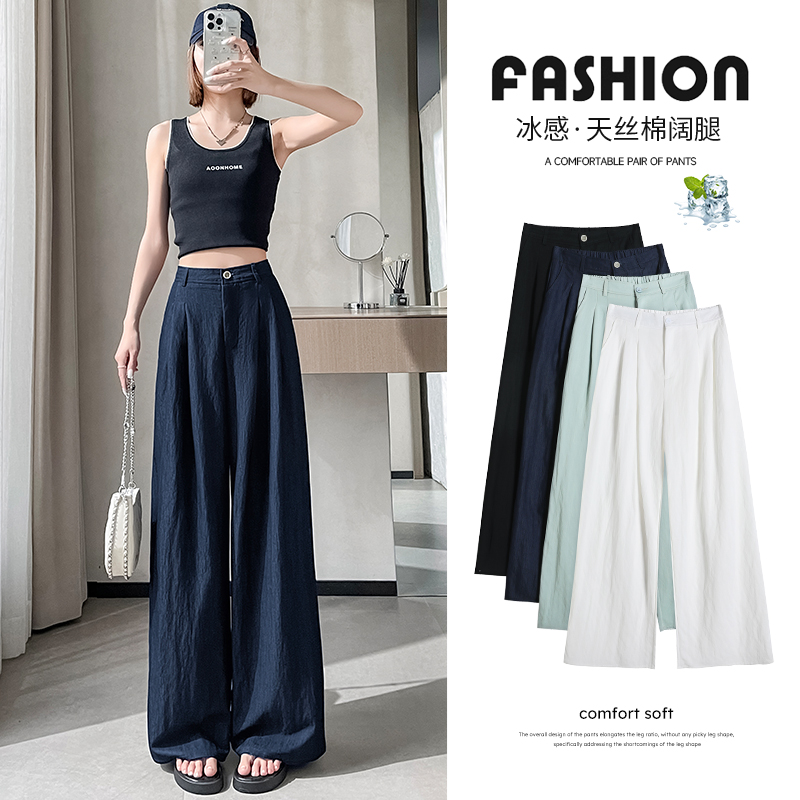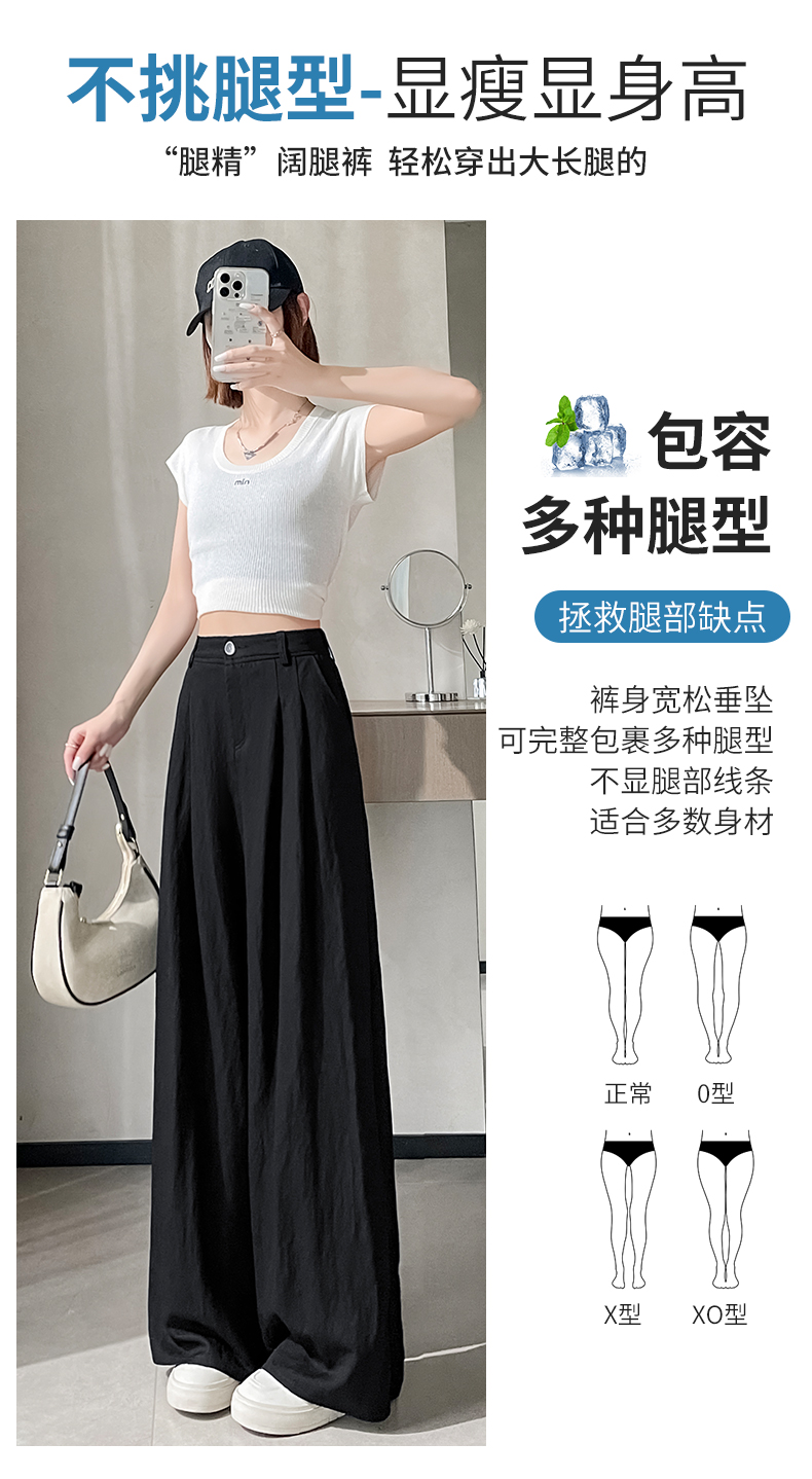 RY1949# 浅蓝色冰丝阔腿裤女2026夏天薄款棉麻山本裤高腰垂感慵懒风西装裤