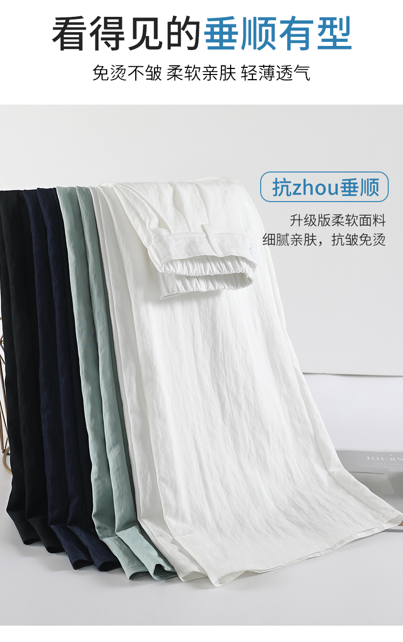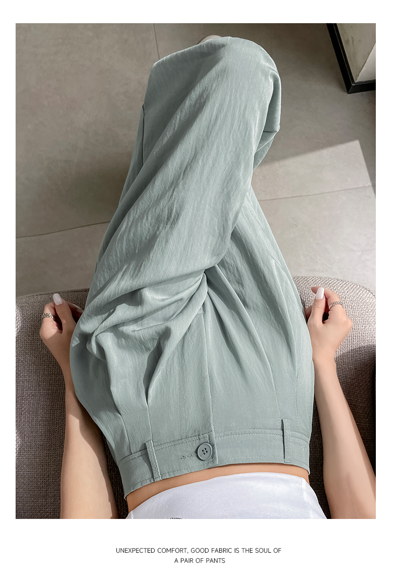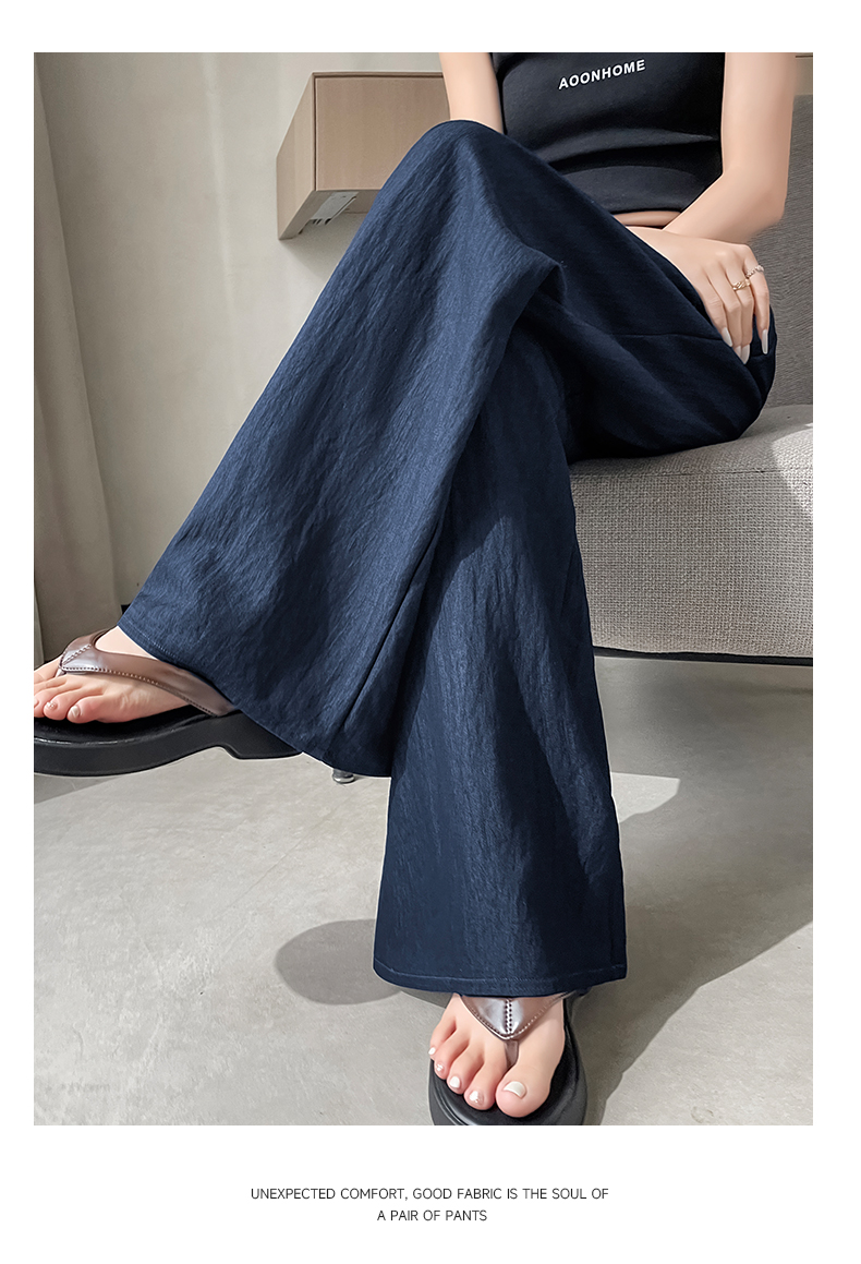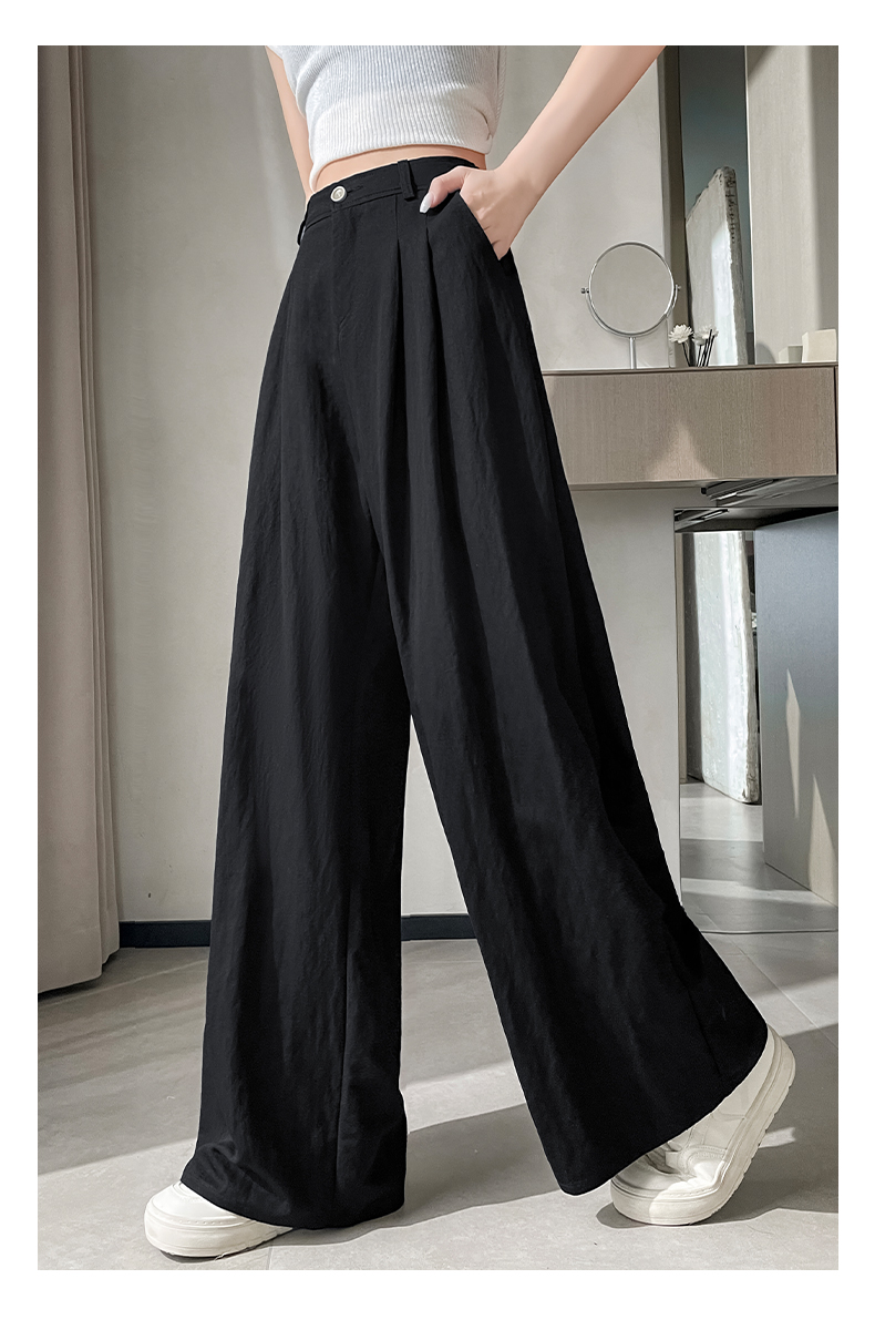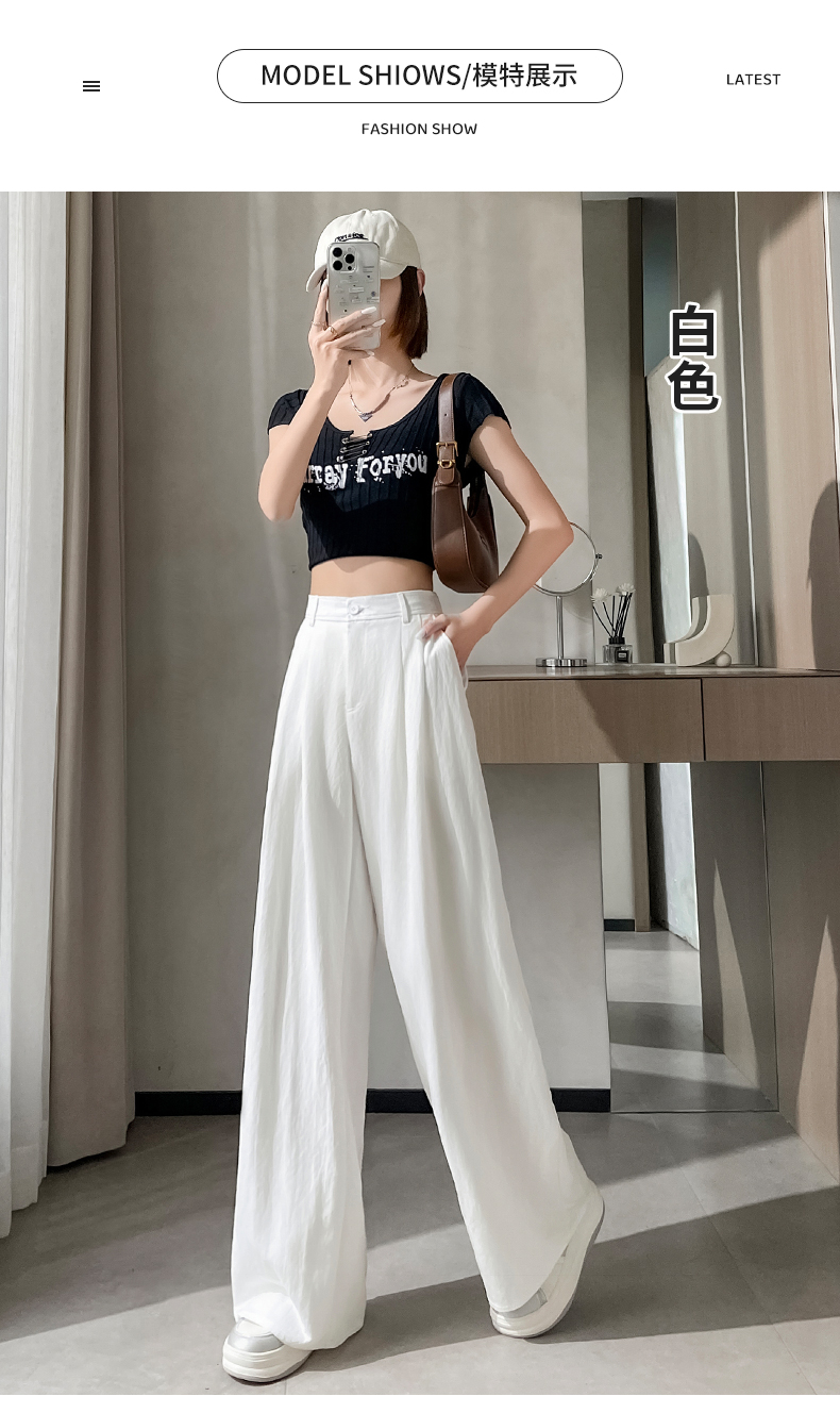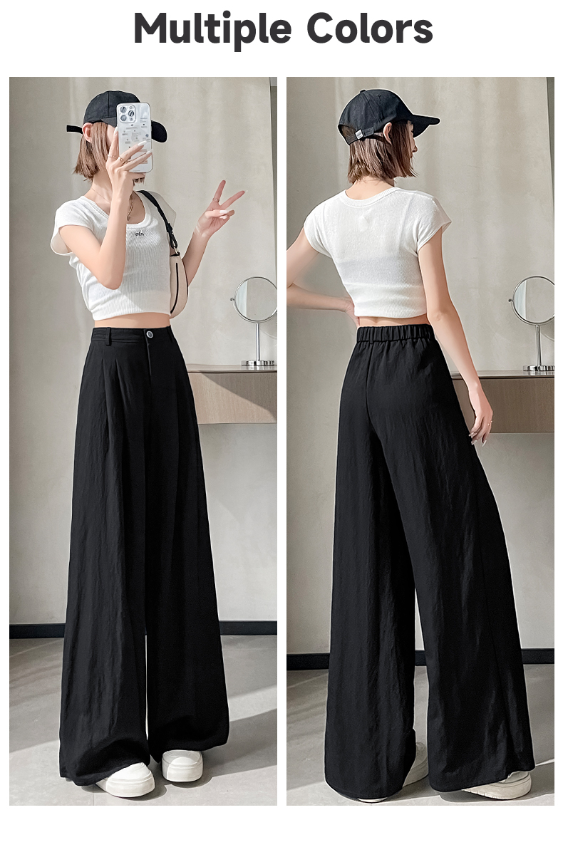 RY1949# 浅蓝色冰丝阔腿裤女2026夏天薄款棉麻山本裤高腰垂感慵懒风西装裤