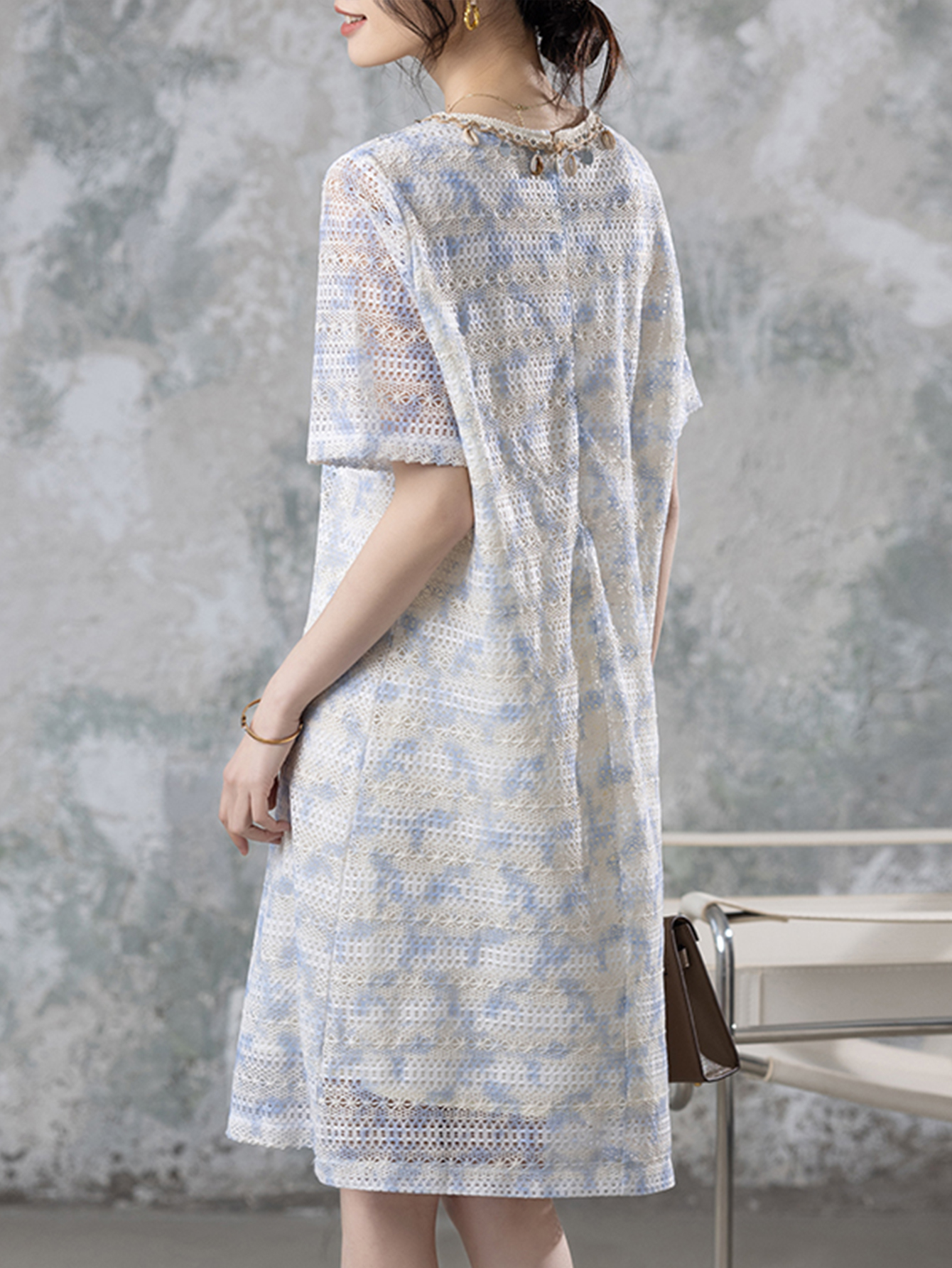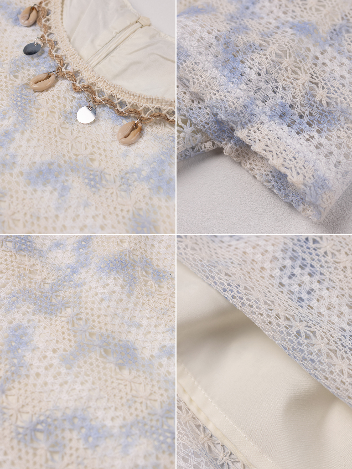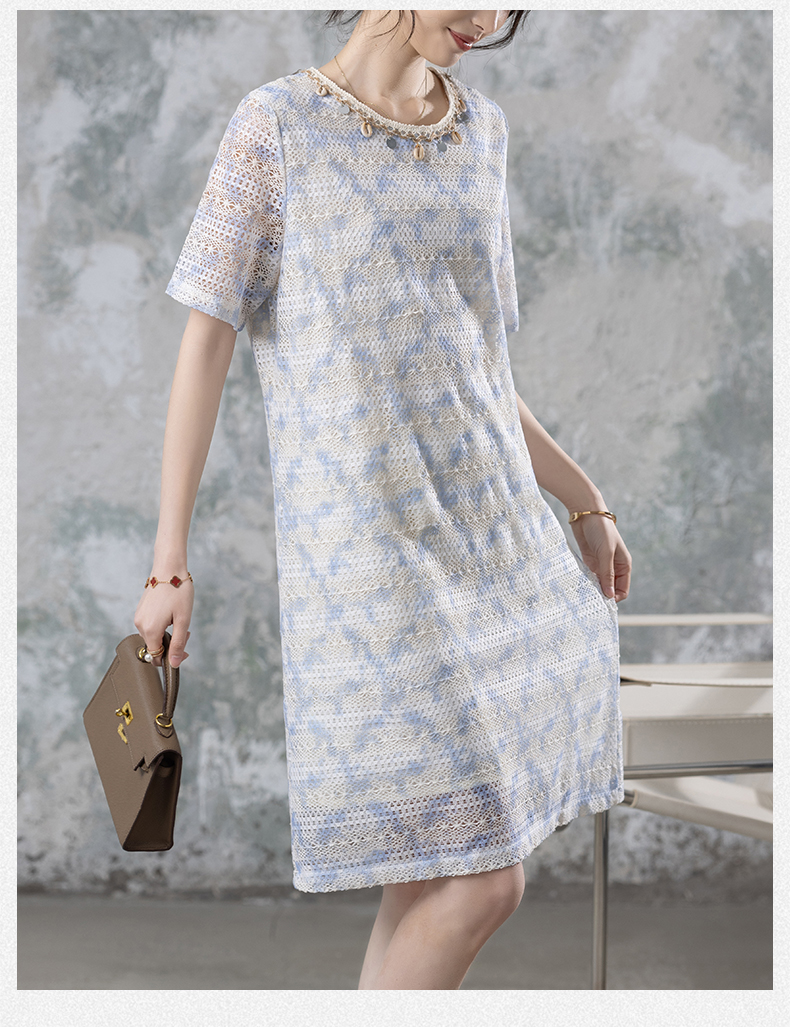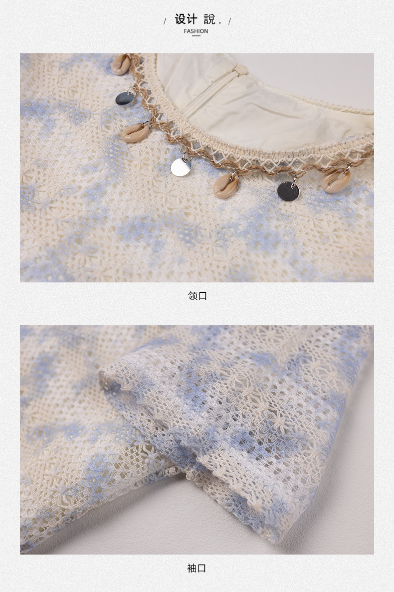 RY1951# 晕染贝壳蕾丝连衣裙女2026夏海边度假好看裙子