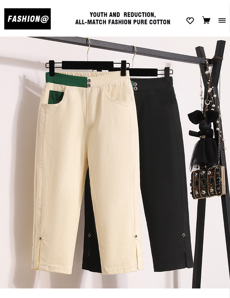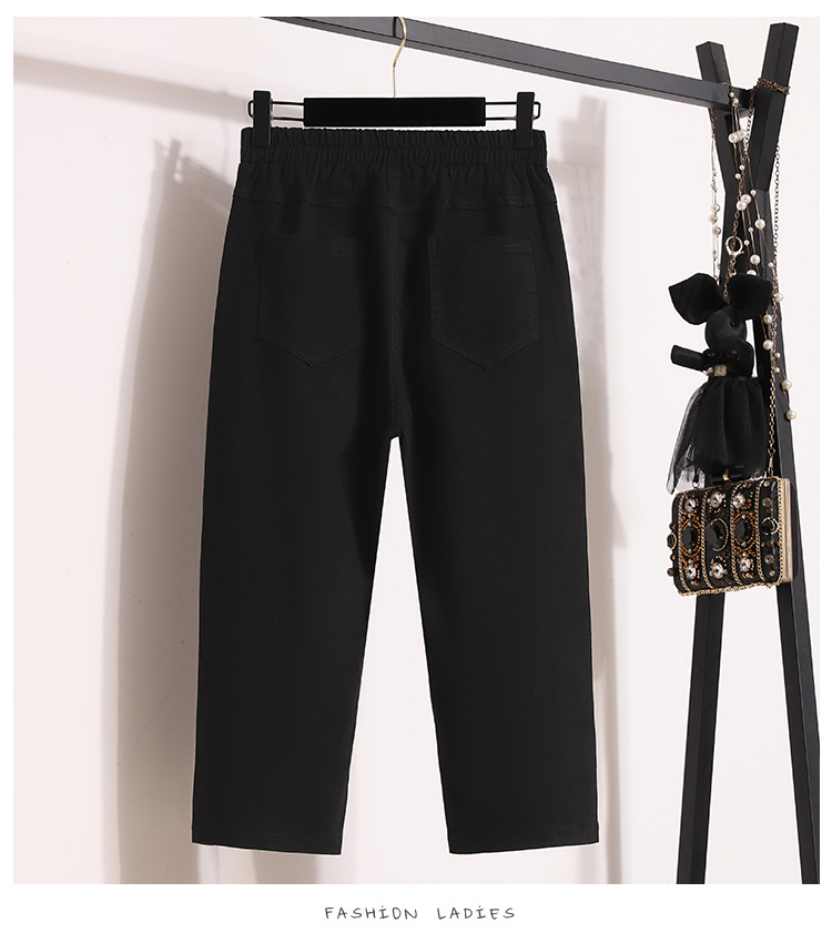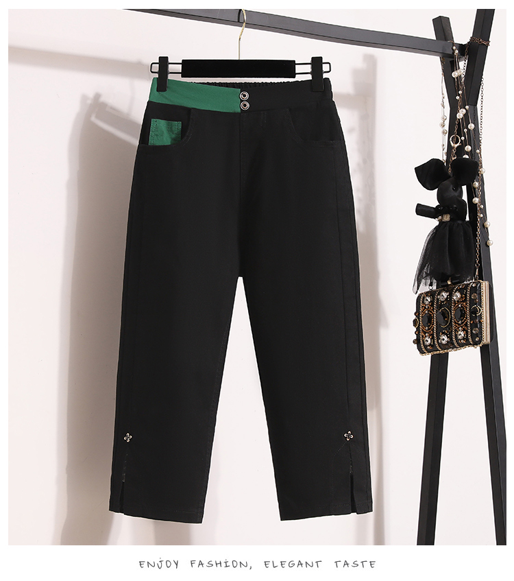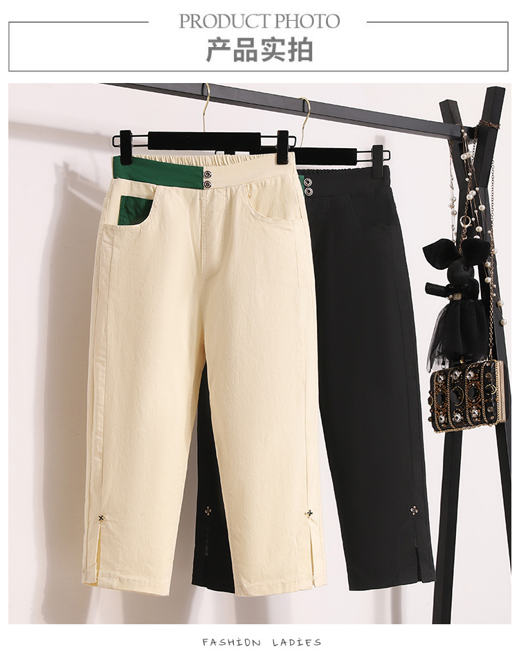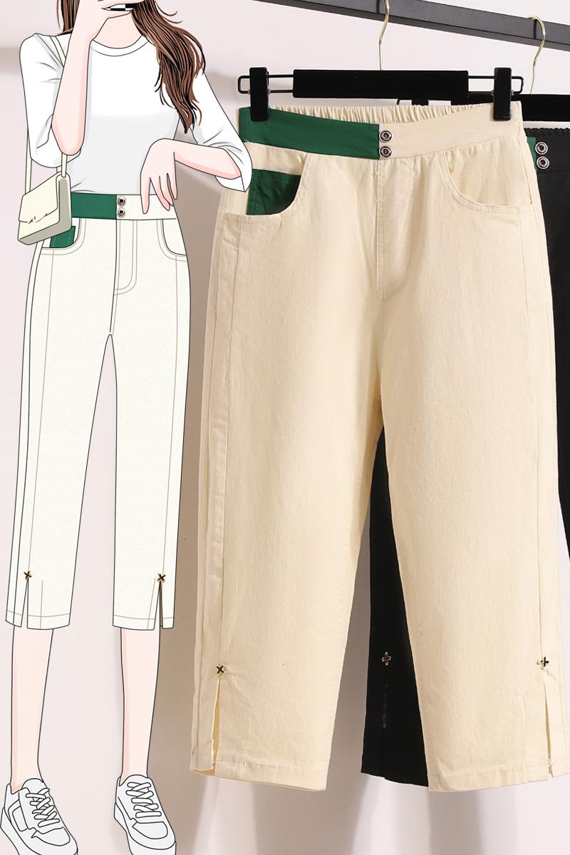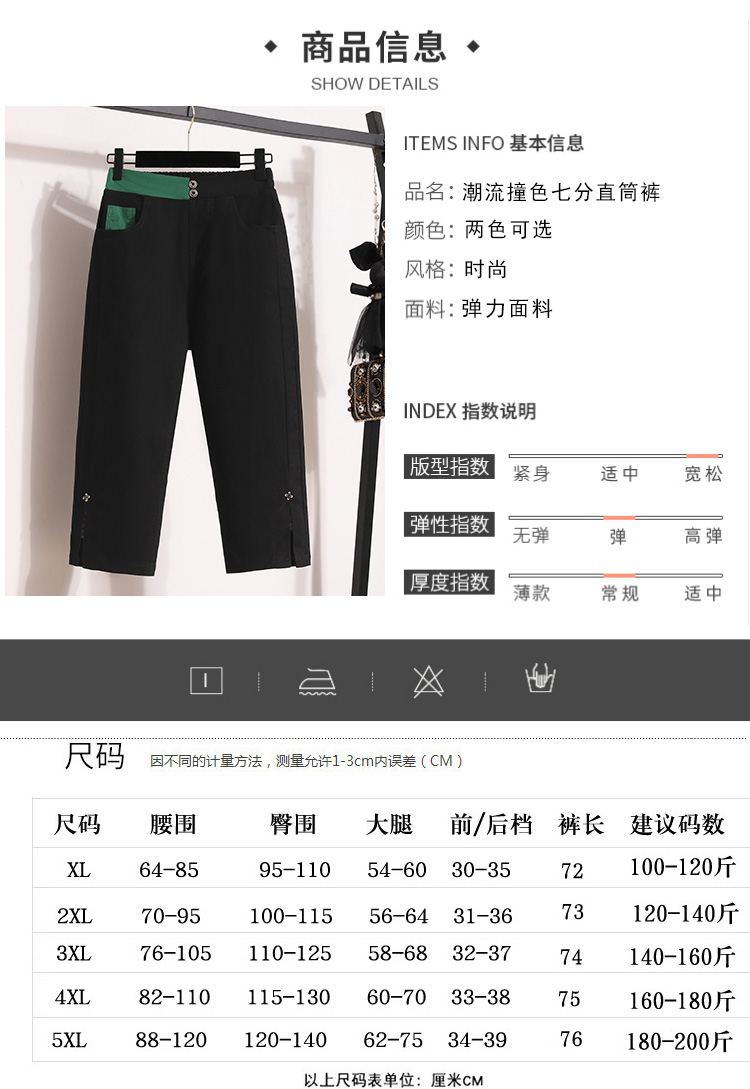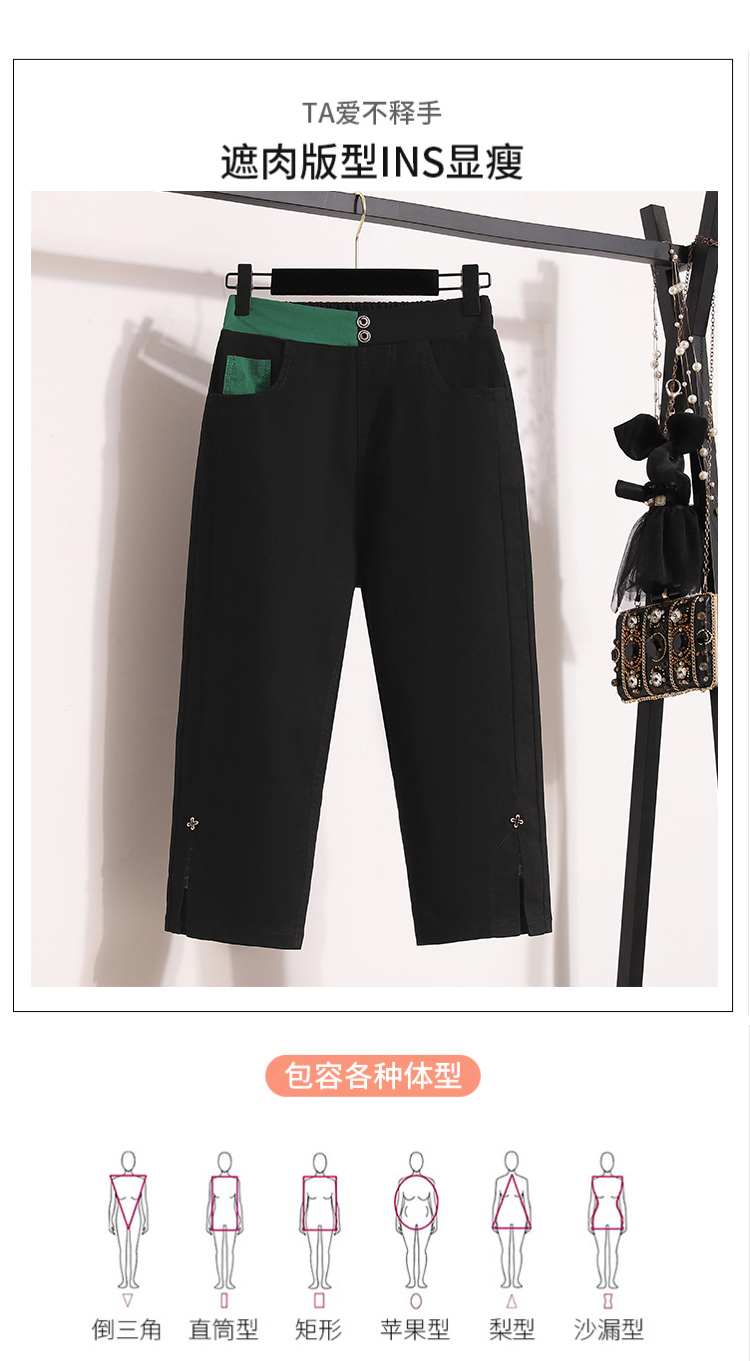 RY1970# 实拍夏新款欧版大码直筒 弹力七分休闲女裤胖MM薄款高腰八分中裤