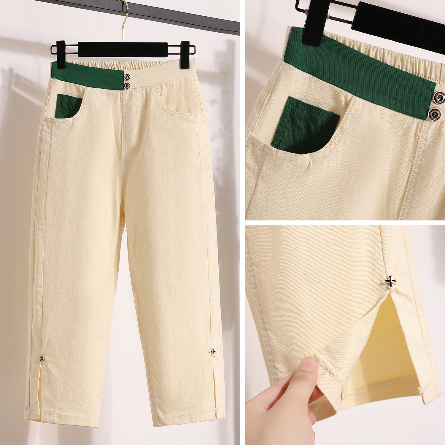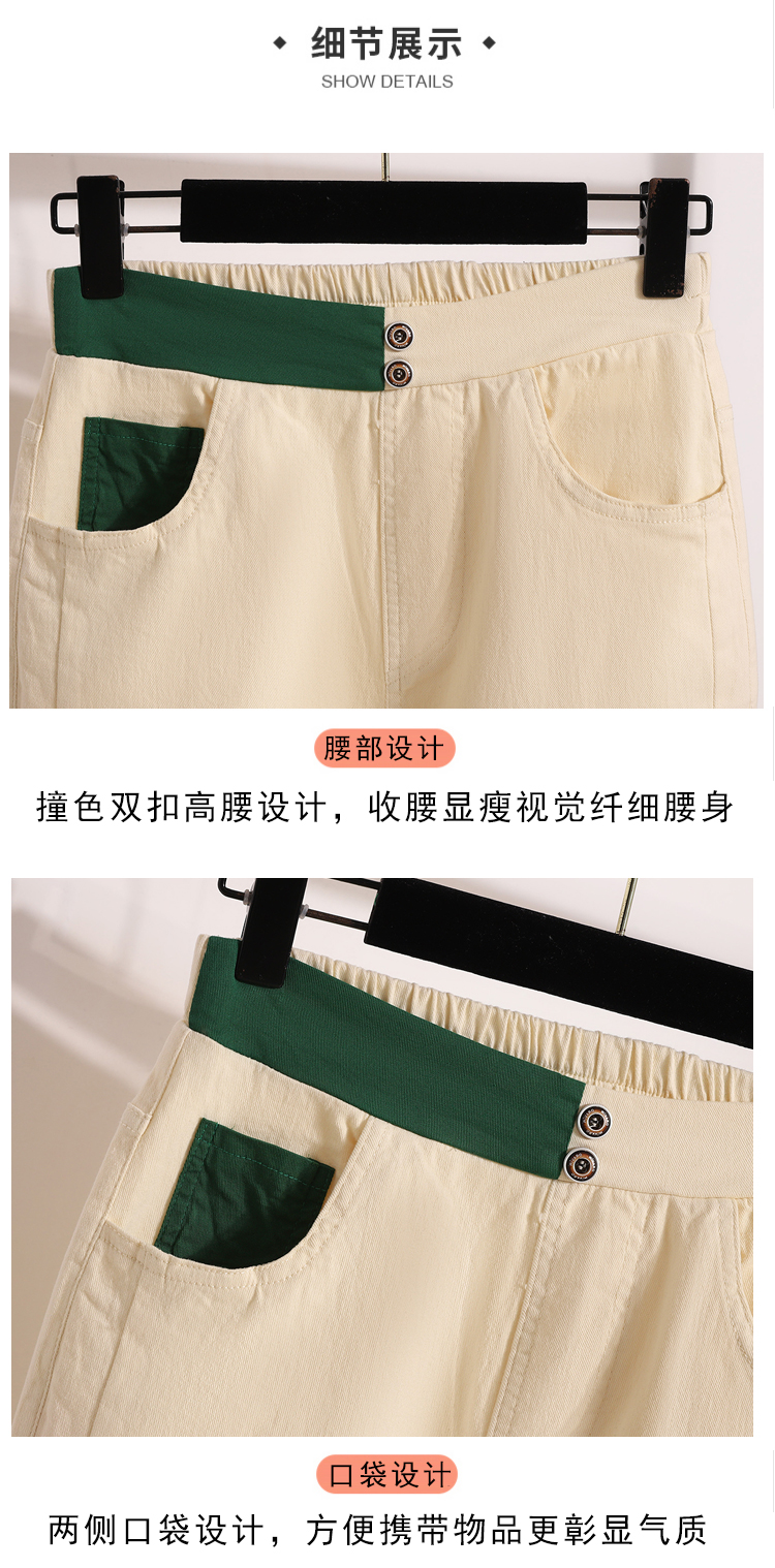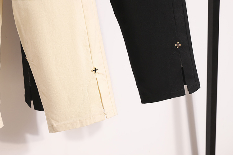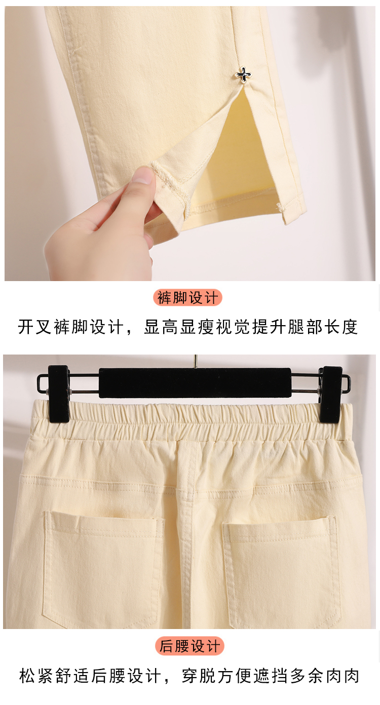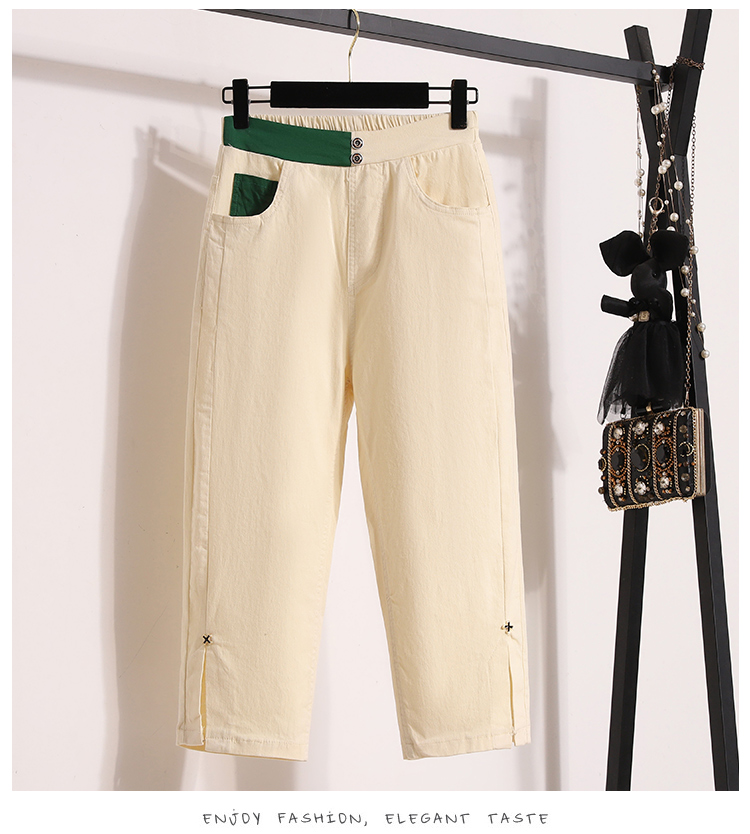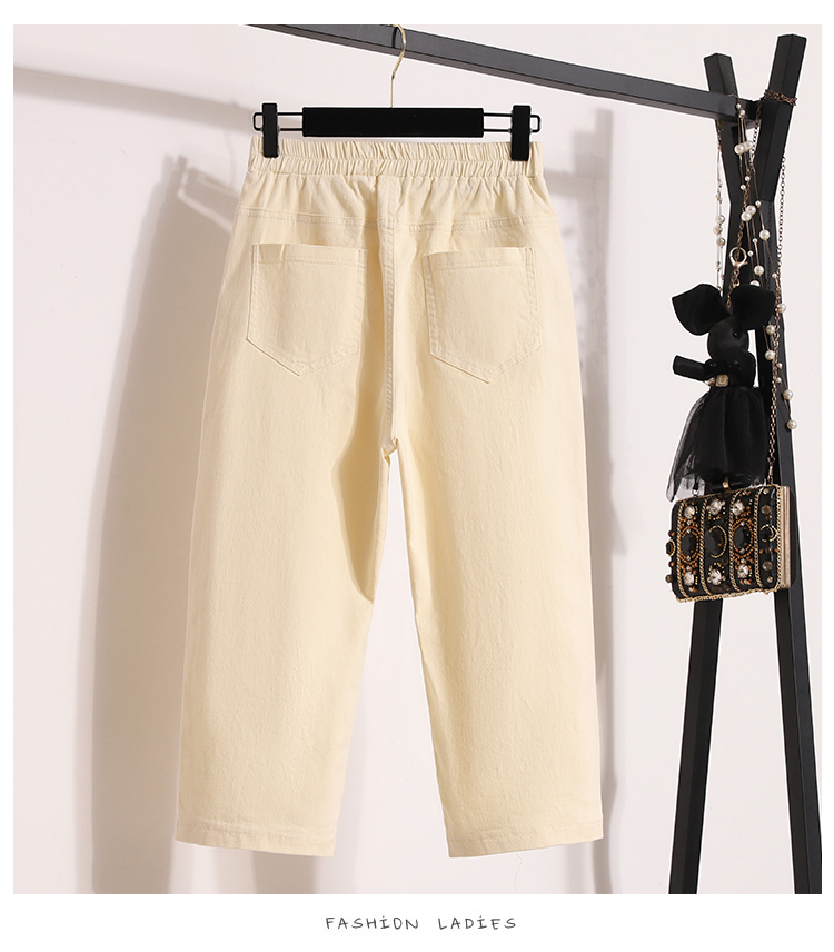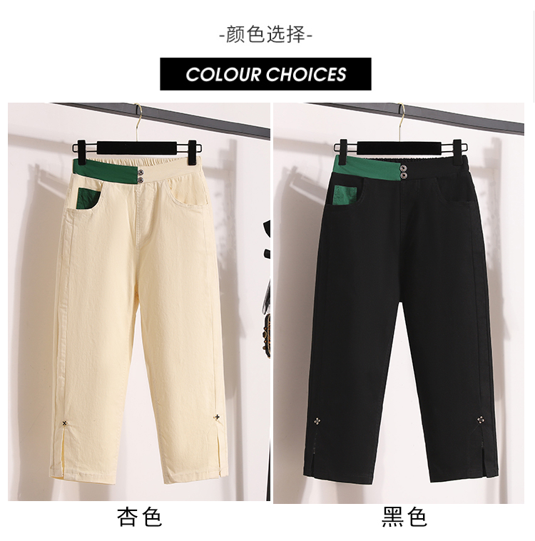 RY1970# 实拍夏新款欧版大码直筒 弹力七分休闲女裤胖MM薄款高腰八分中裤