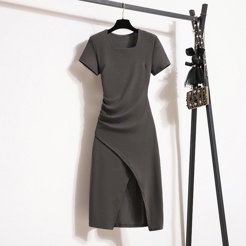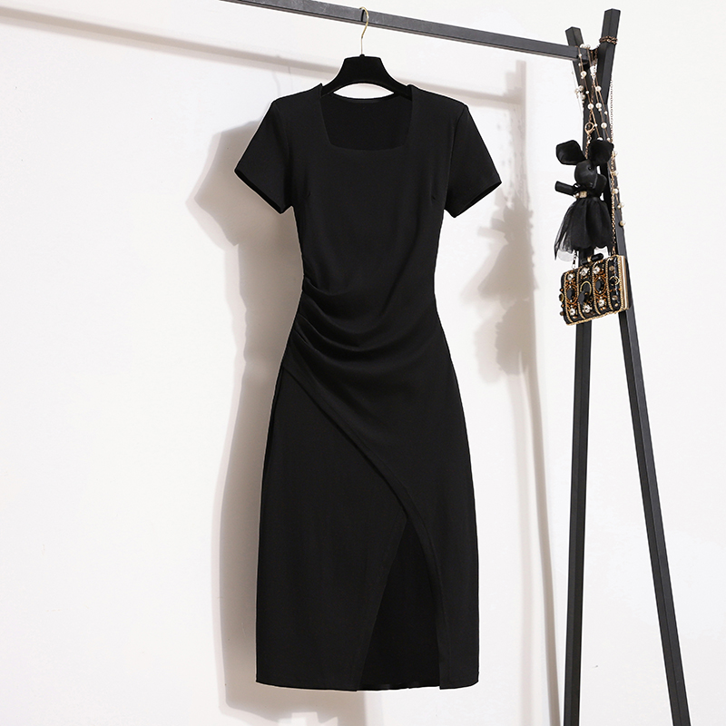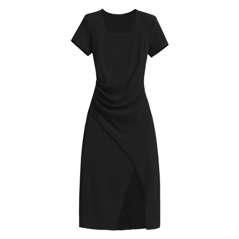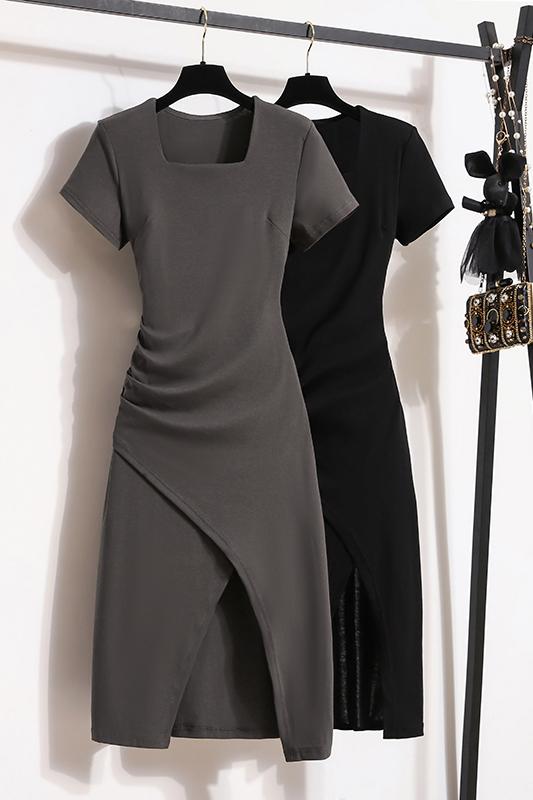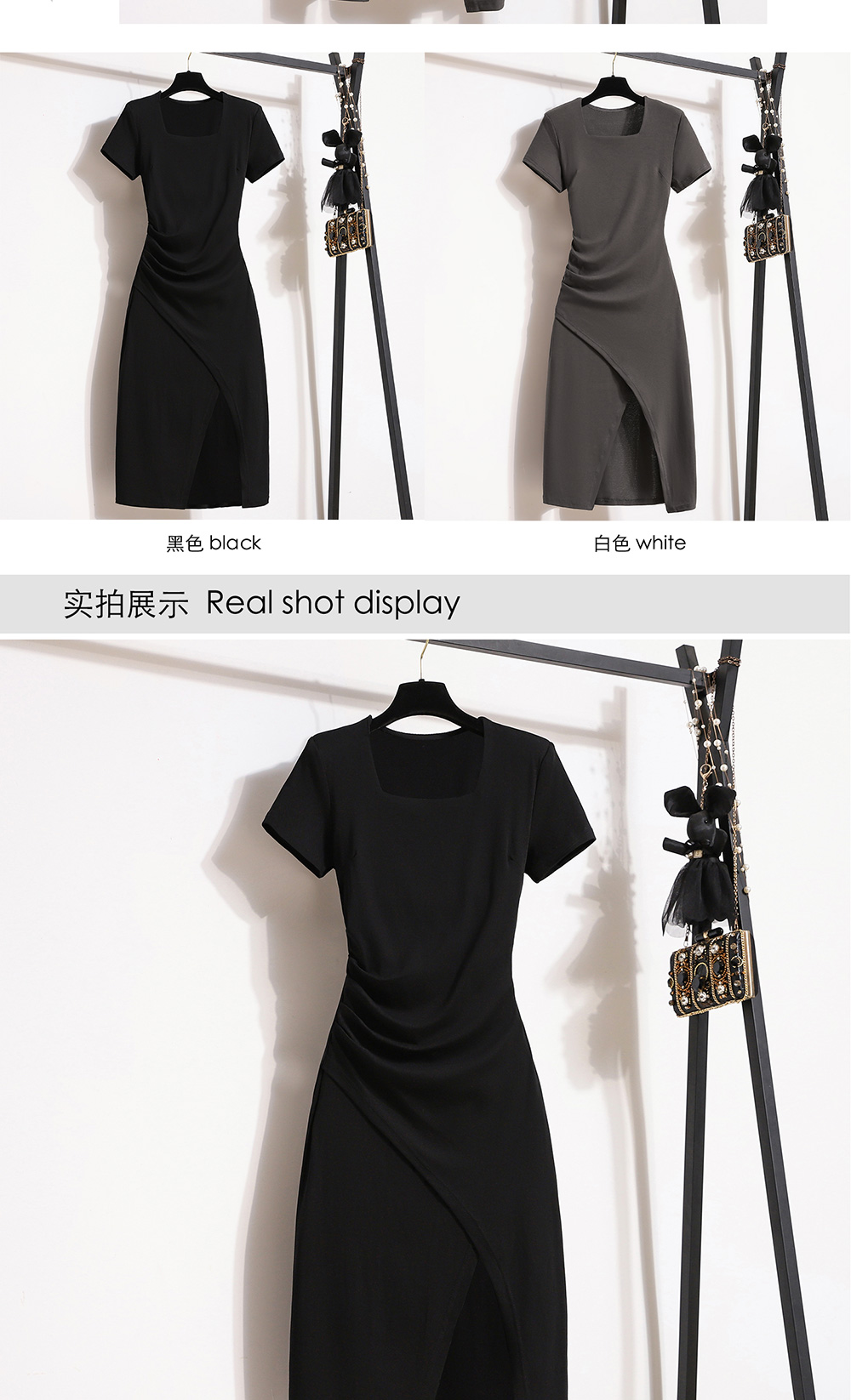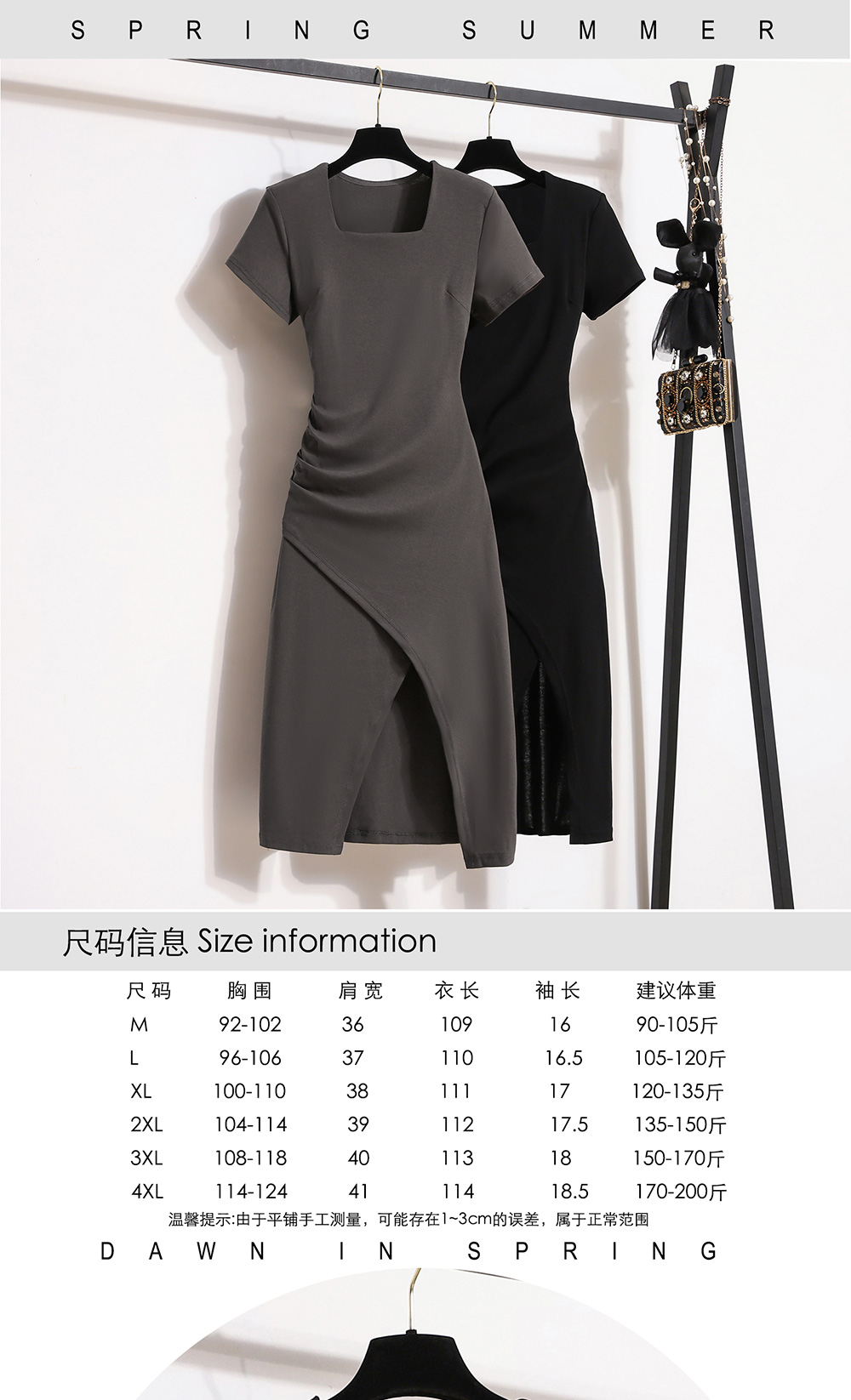RY1985# 实拍大码女装2026新款洋气方领连衣裙女开叉裙气质高腰显瘦一步裙