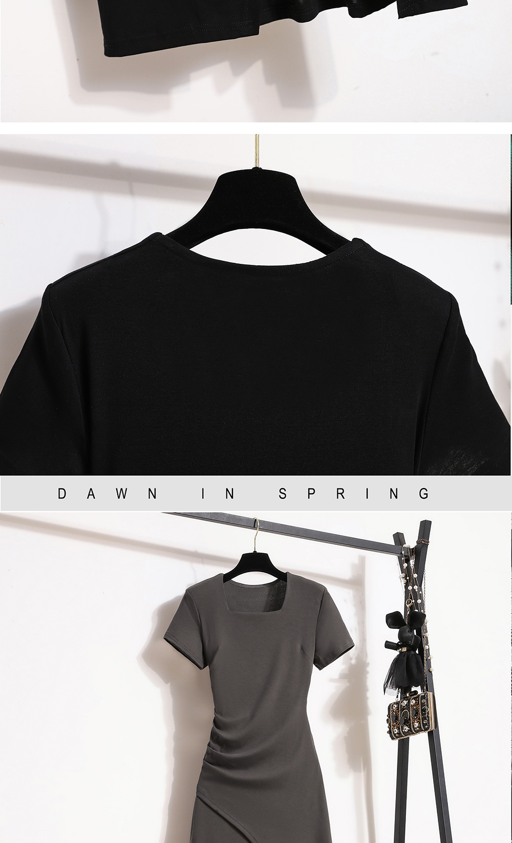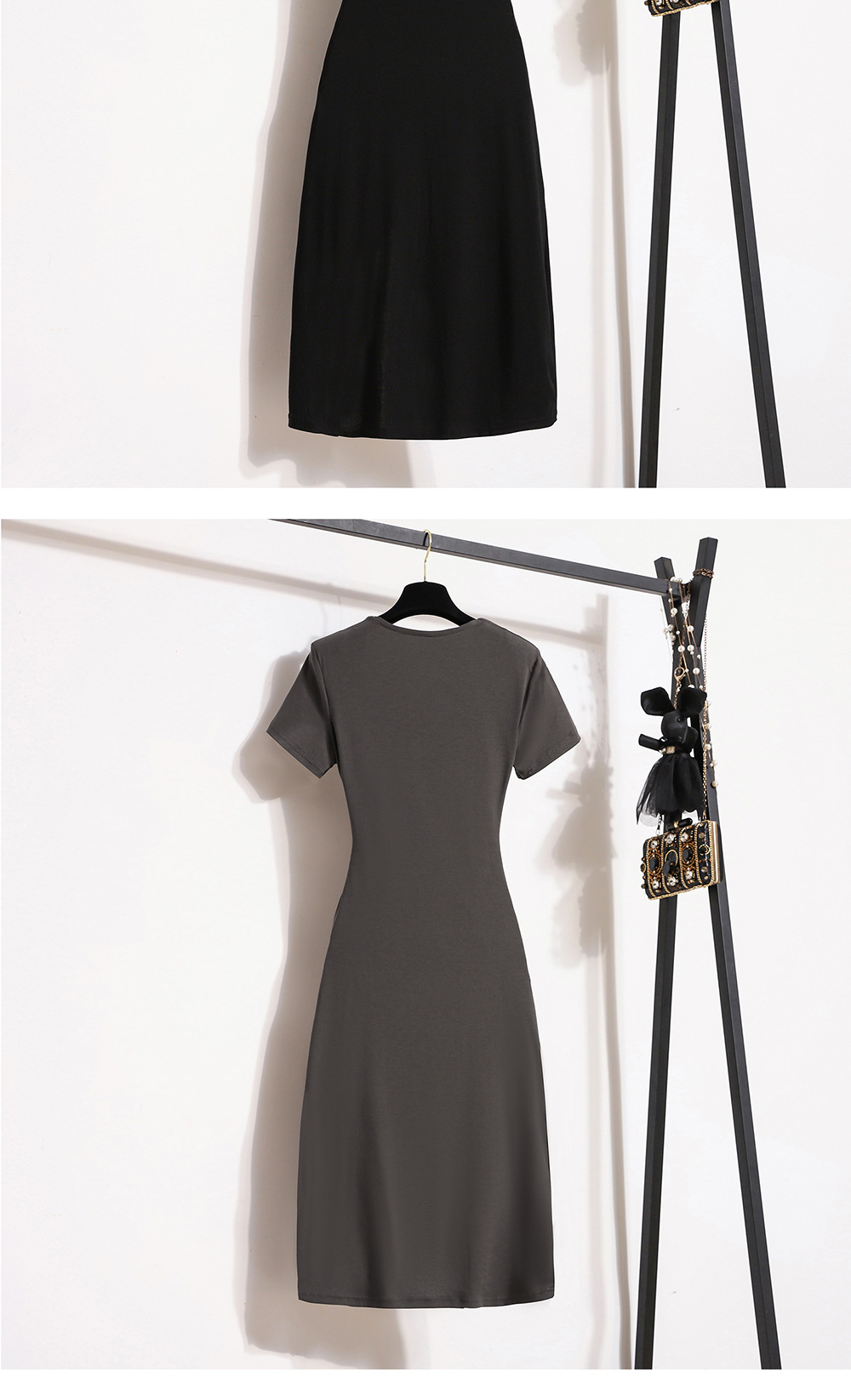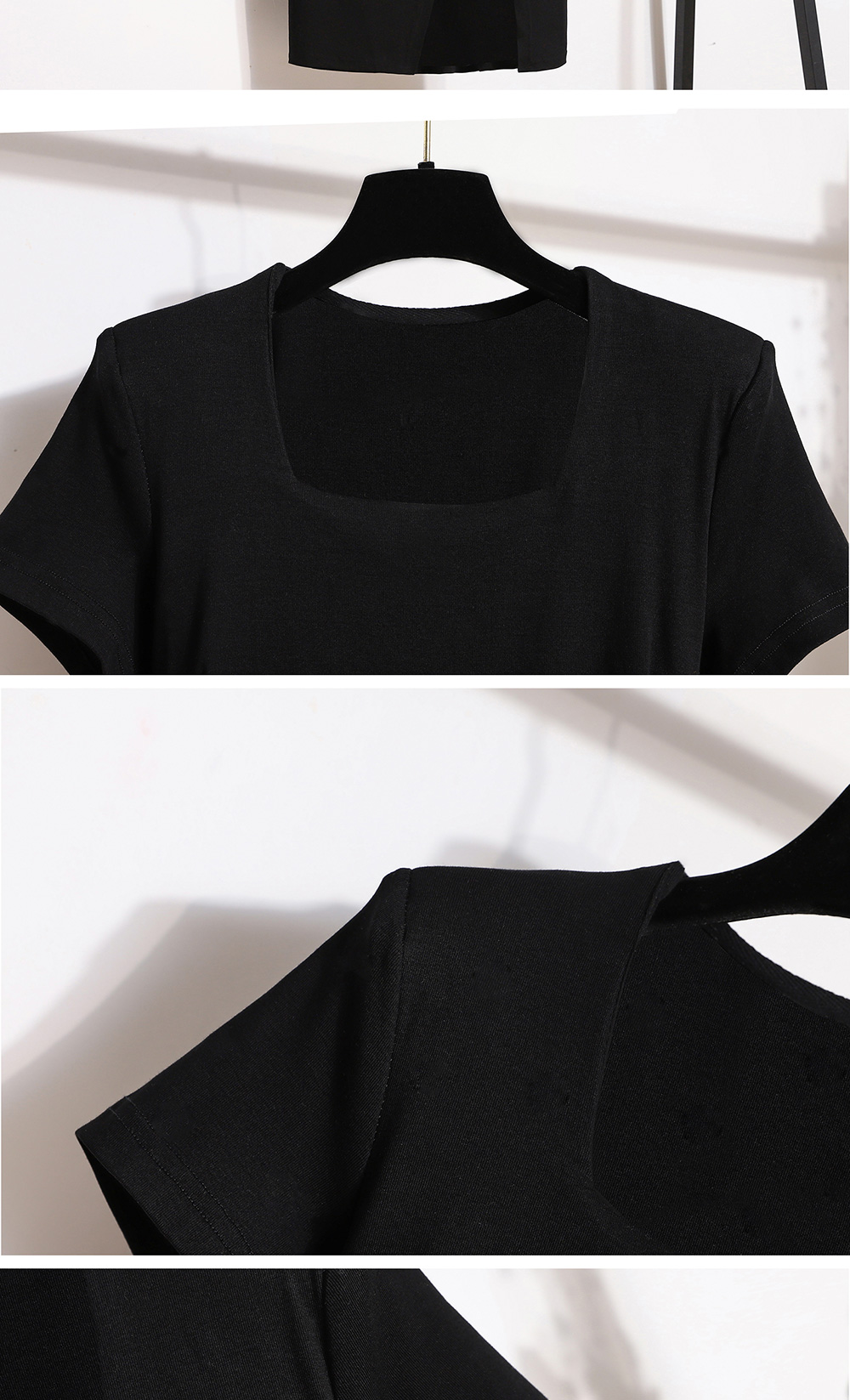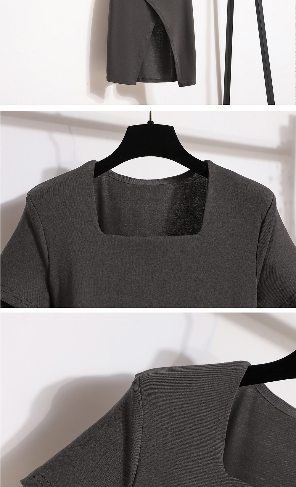 RY1985# 实拍大码女装2026新款洋气方领连衣裙女开叉裙气质高腰显瘦一步裙