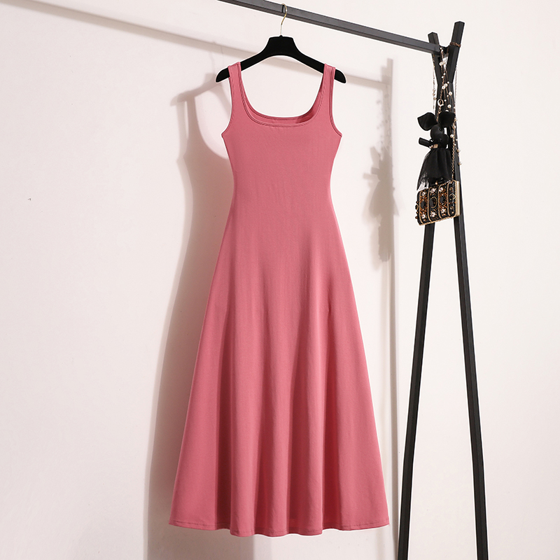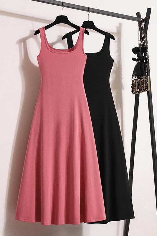 RY1987# 实拍大码女装2026夏新款遮副乳宽带吊带连衣裙海边度假收腰长裙子