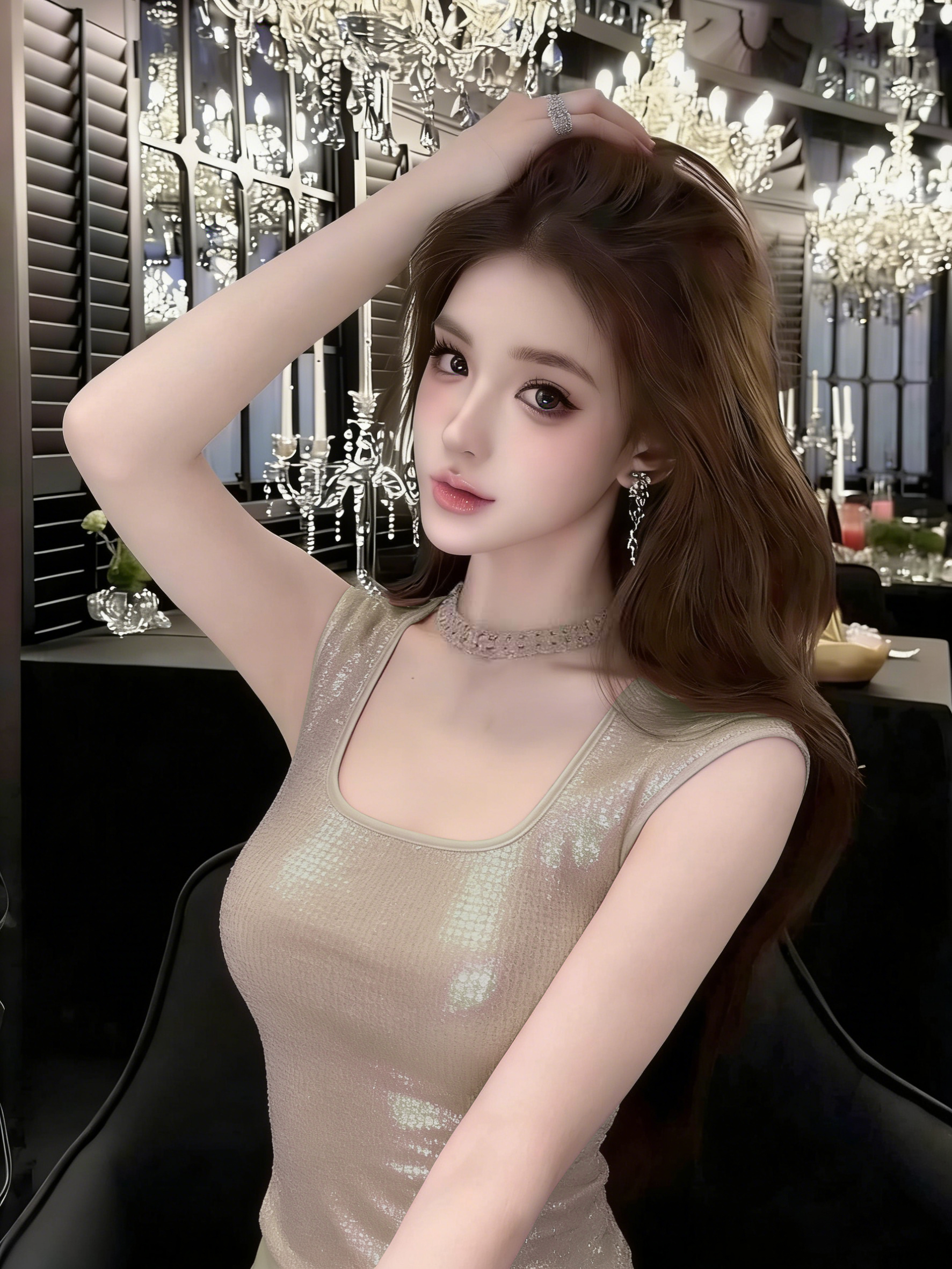 RY2013# 辣妹咖色收腰显瘦挂脖吊带夏季纯欲风高级感上衣女美背薄款
