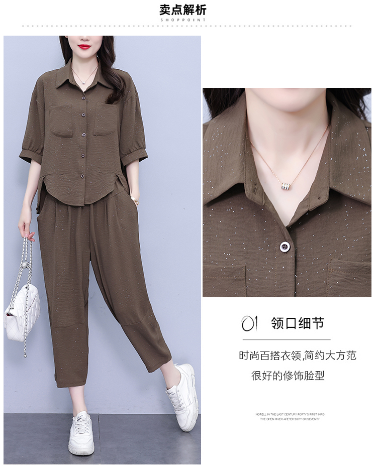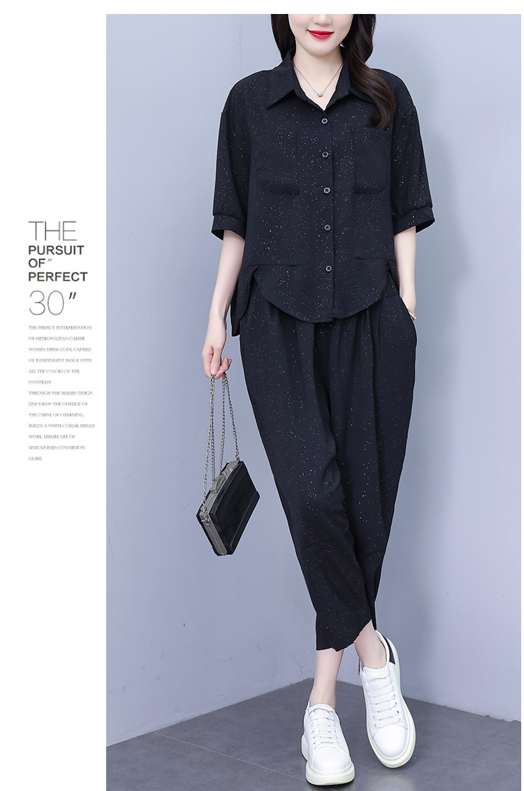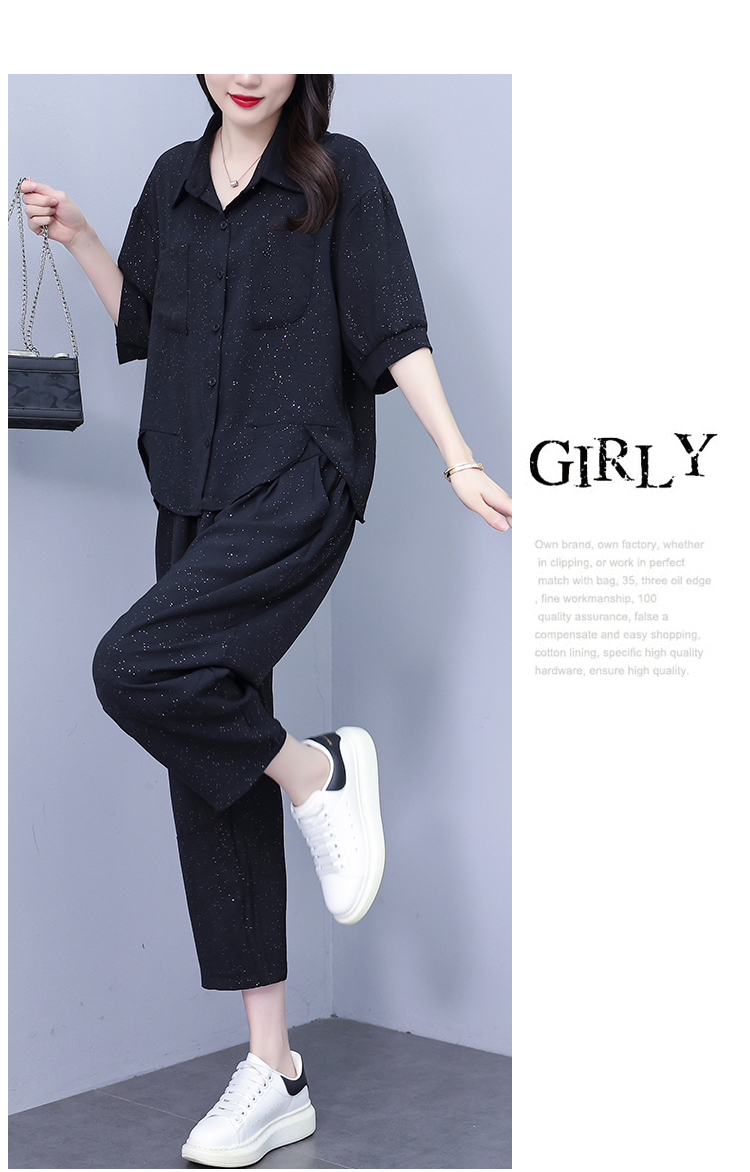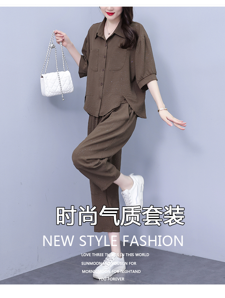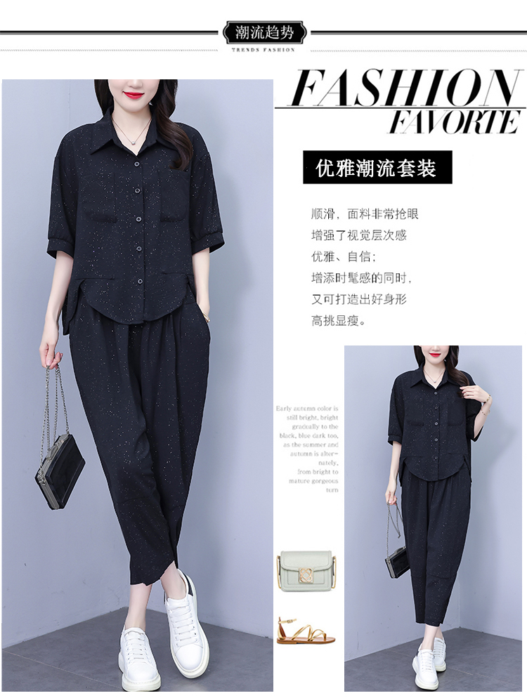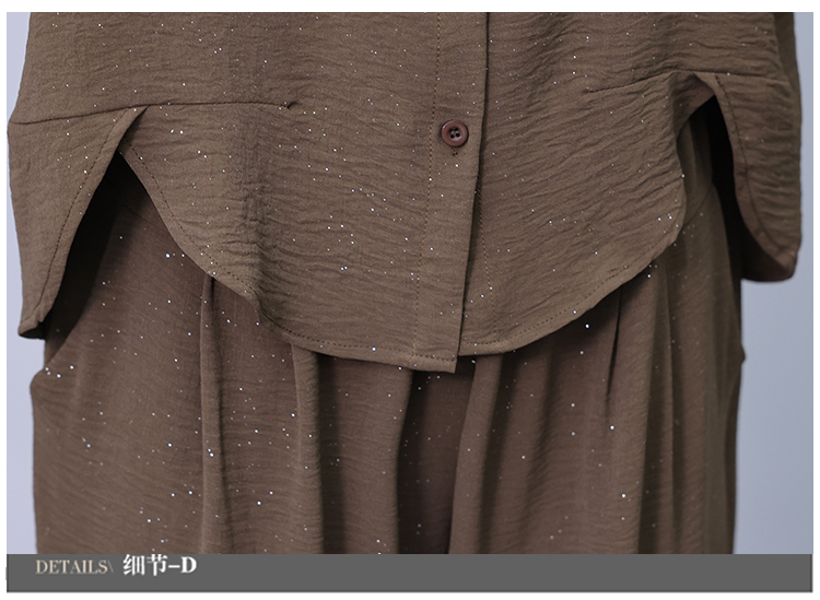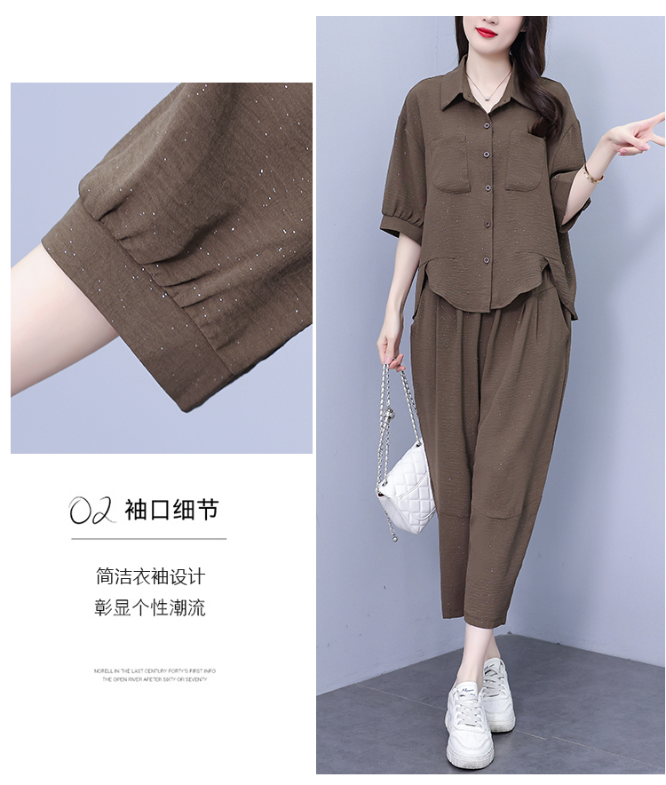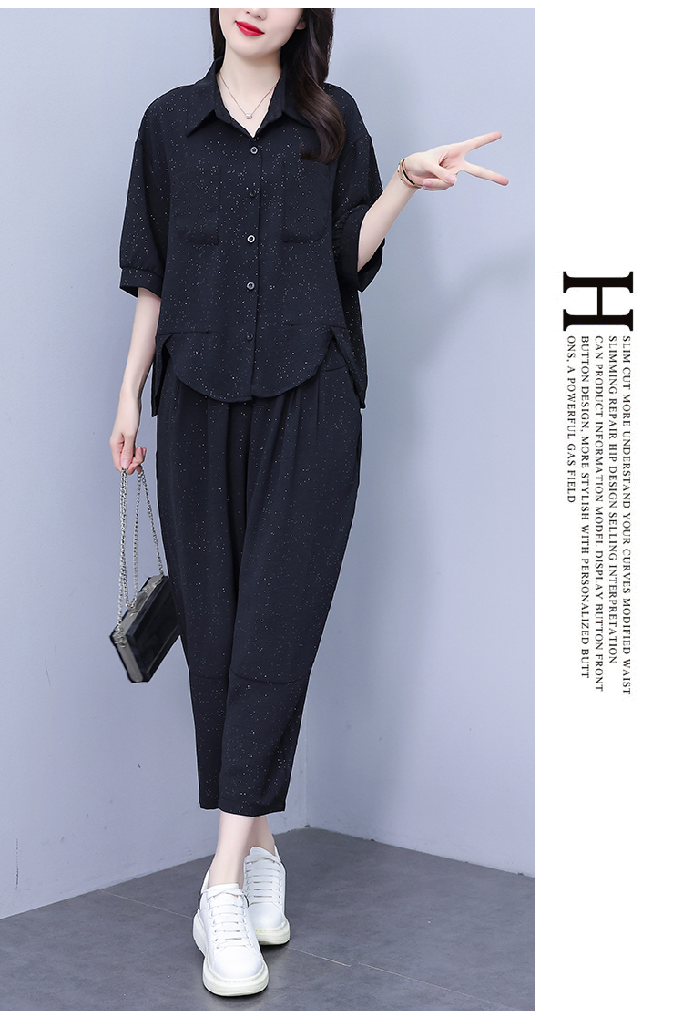 RY2021# 实拍2026年夏季新款洋气套装胖MM时尚细闪衬衫宽松显瘦减龄两件套