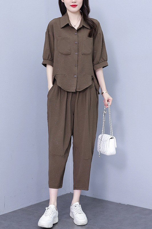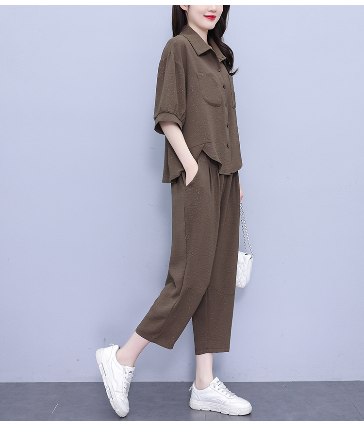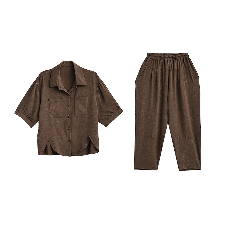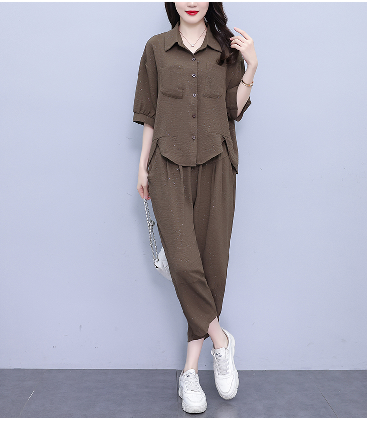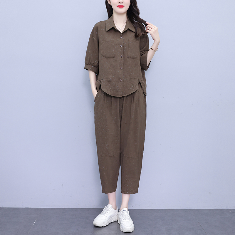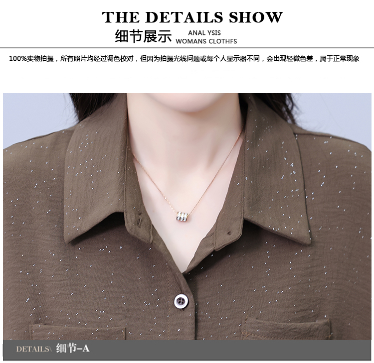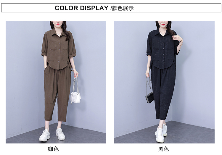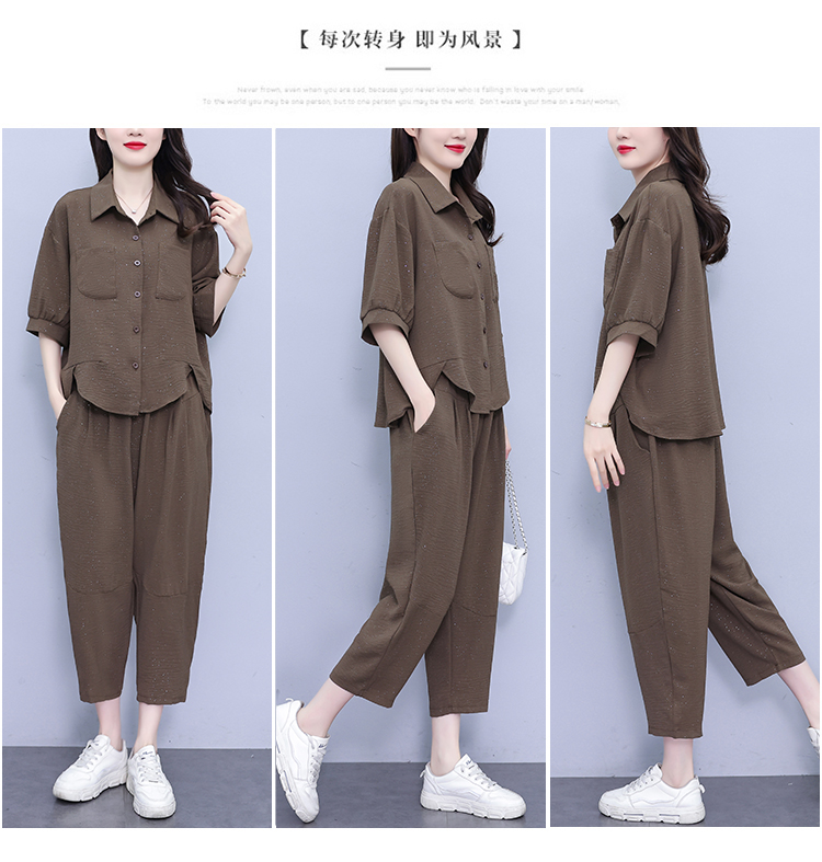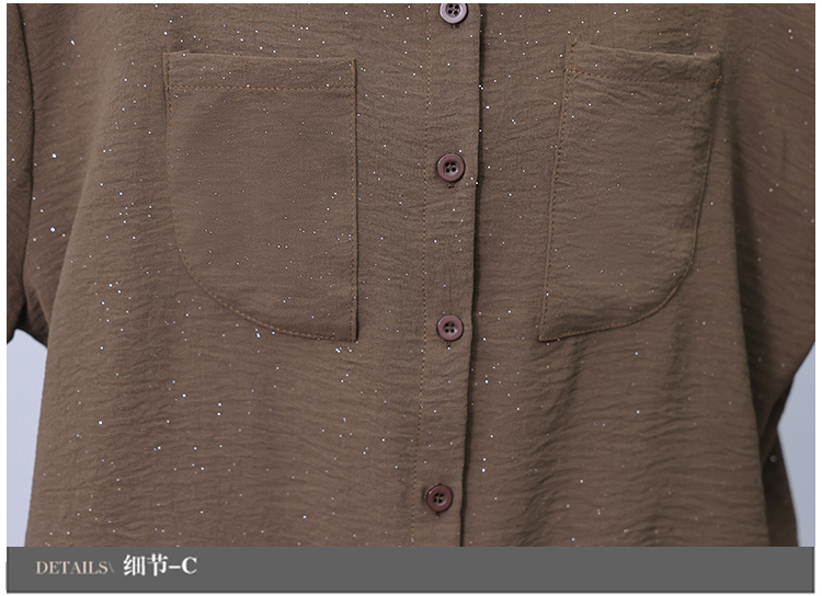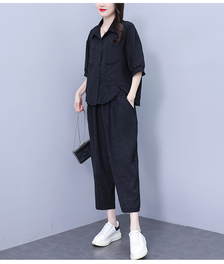 RY2021# 实拍2026年夏季新款洋气套装胖MM时尚细闪衬衫宽松显瘦减龄两件套