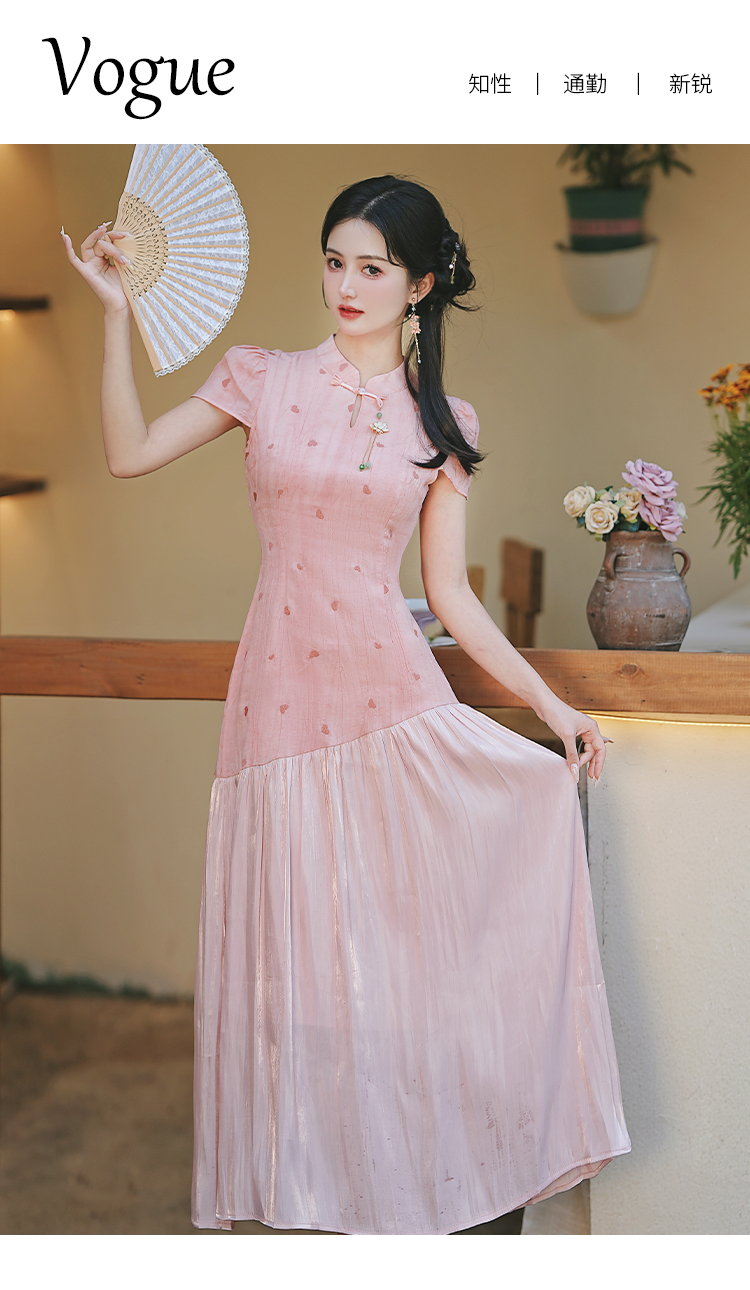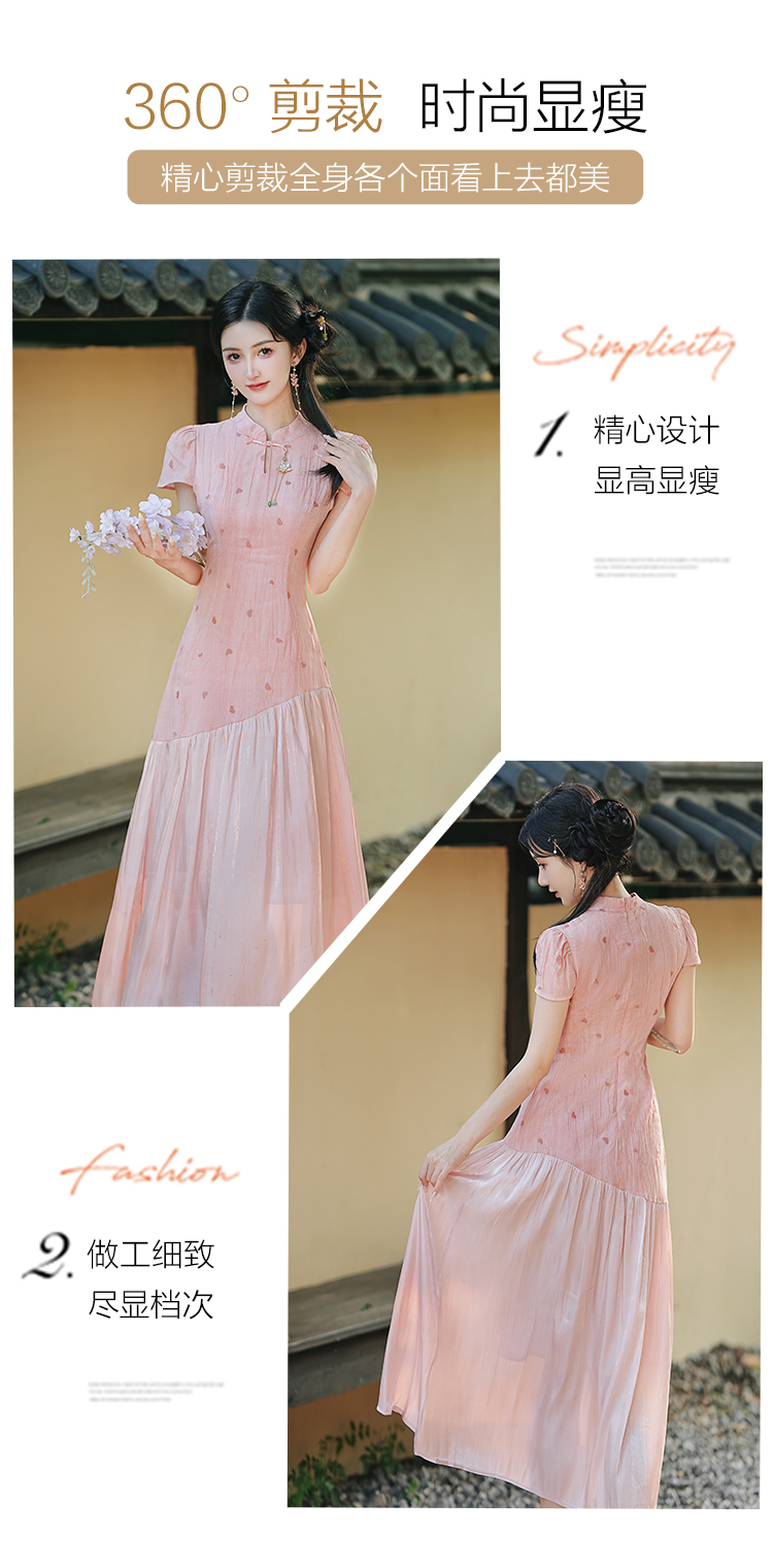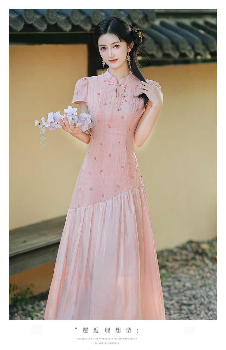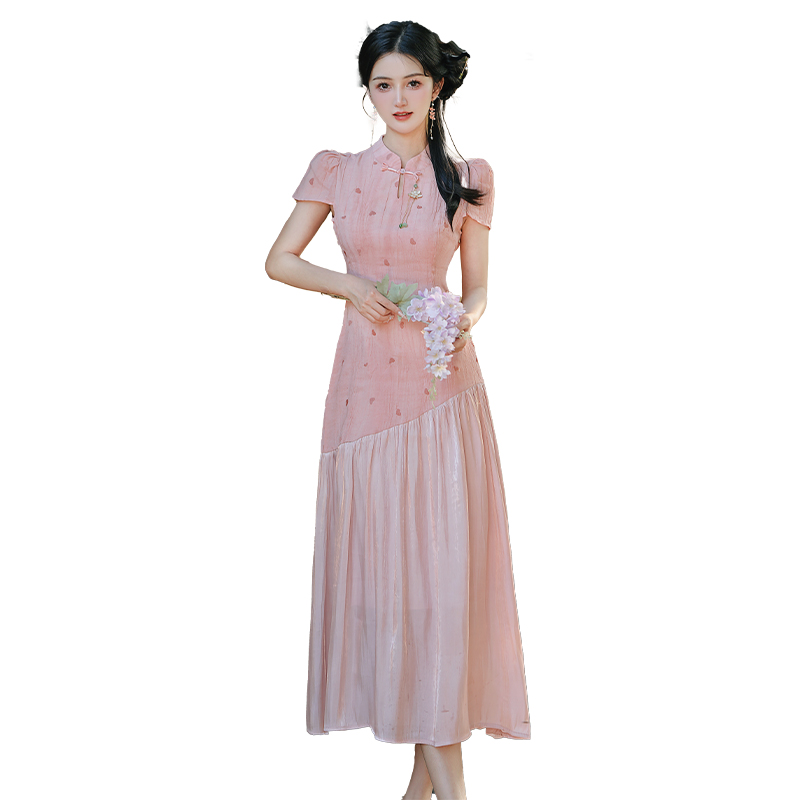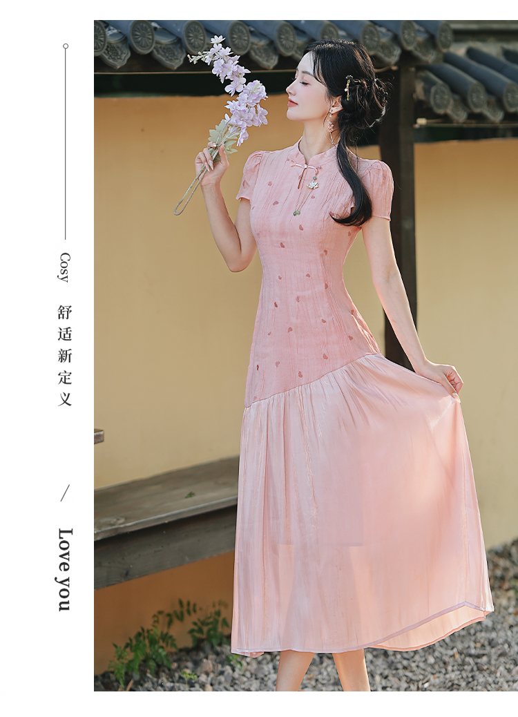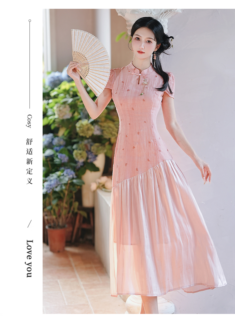 RY2022# 实拍 新中式晕染爱心刺绣旗袍假两件连衣裙