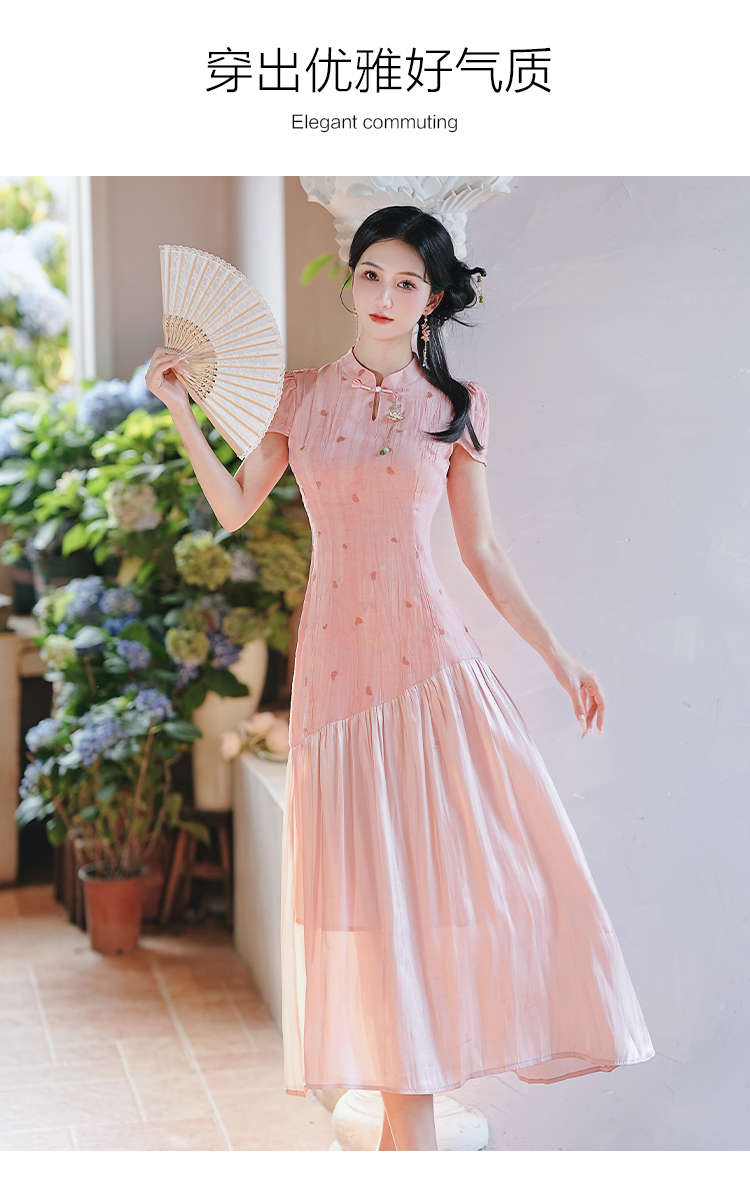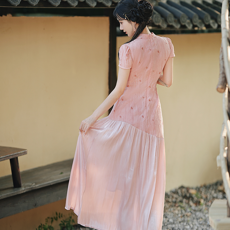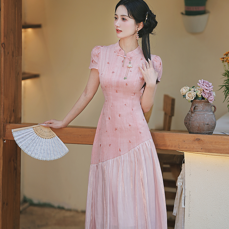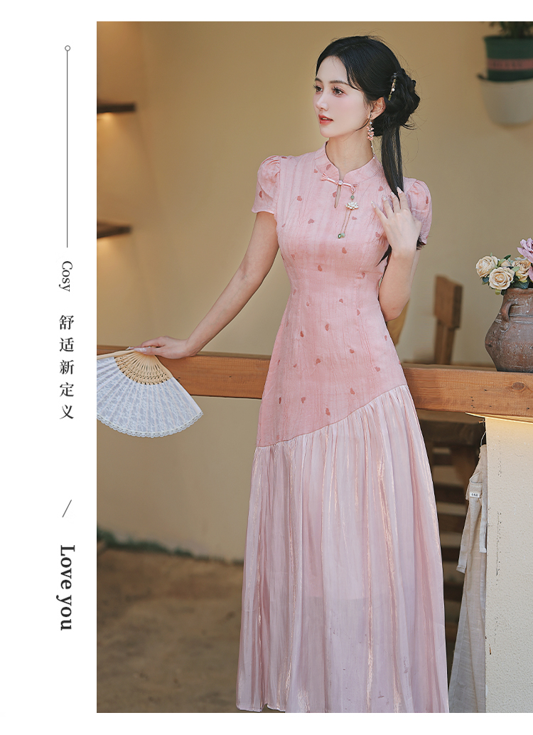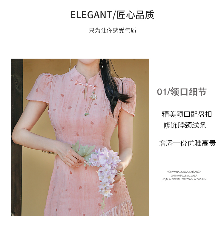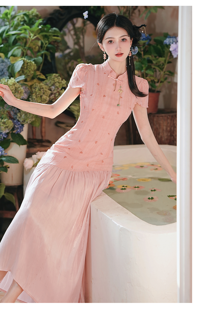 RY2022# 实拍 新中式晕染爱心刺绣旗袍假两件连衣裙