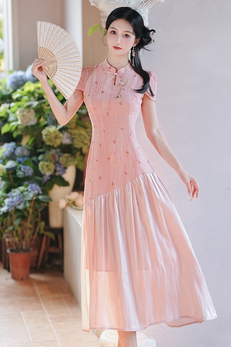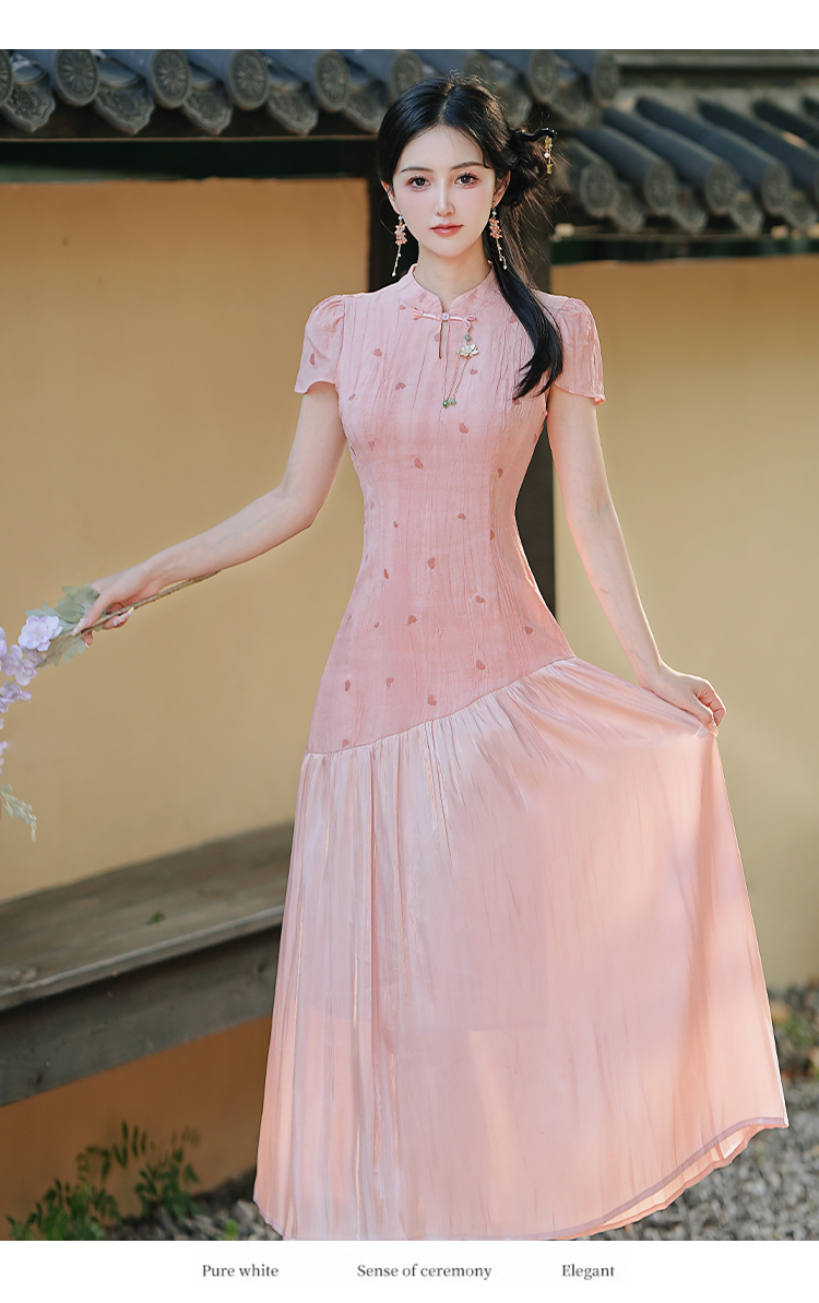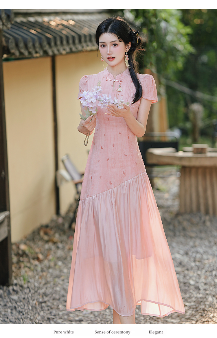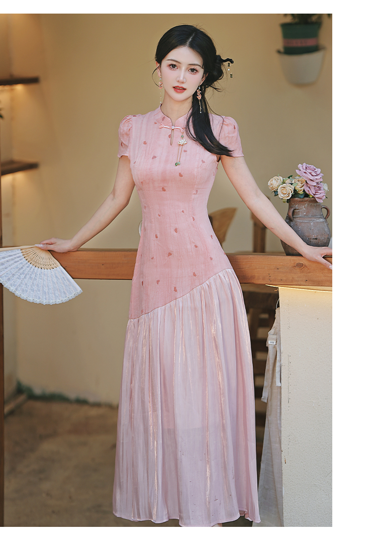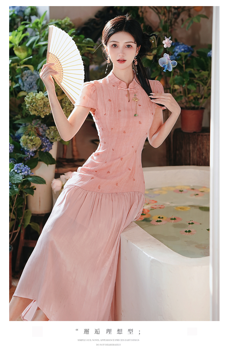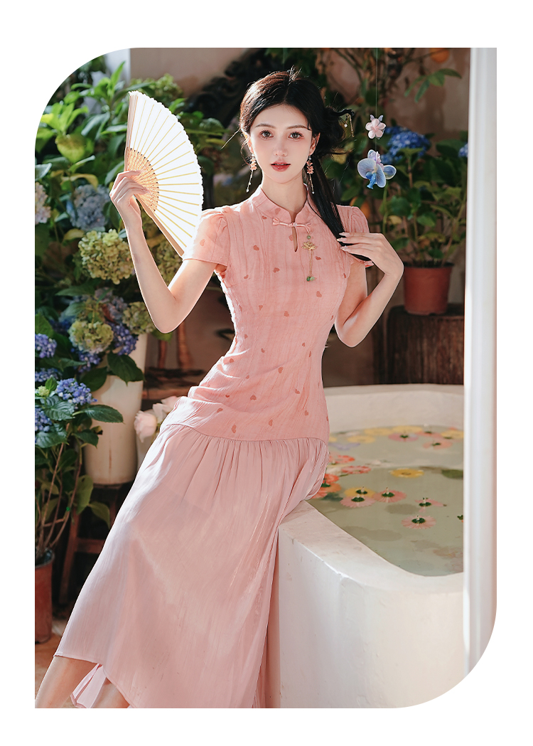 RY2022# 实拍 新中式晕染爱心刺绣旗袍假两件连衣裙