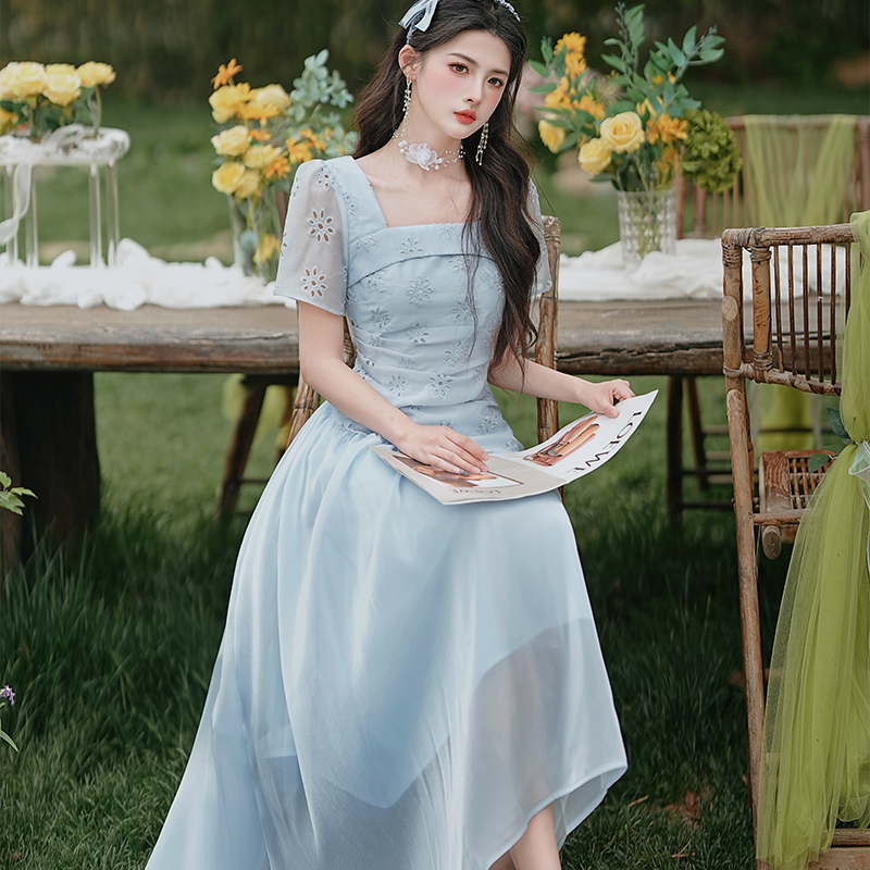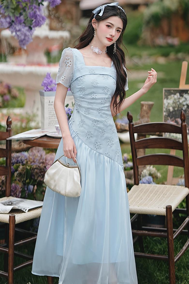 RY2026# 实拍 法式立体镂空刺绣连衣裙