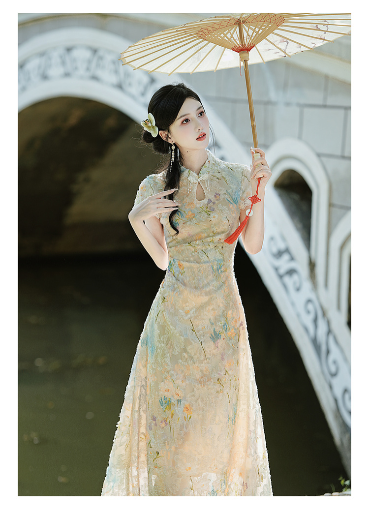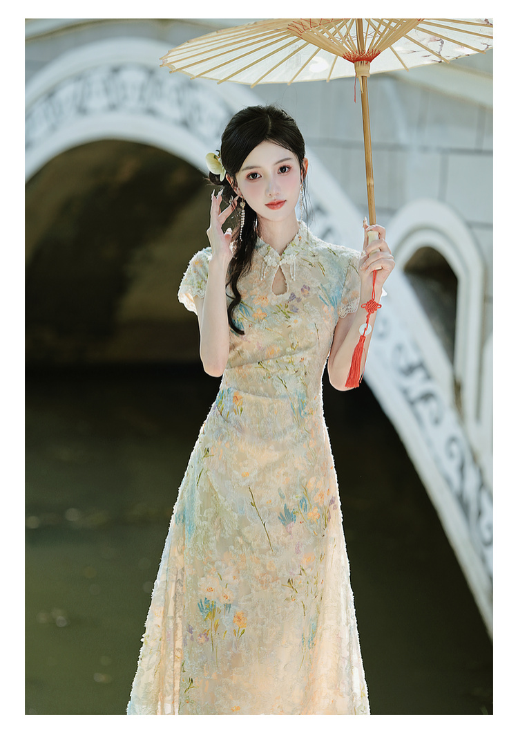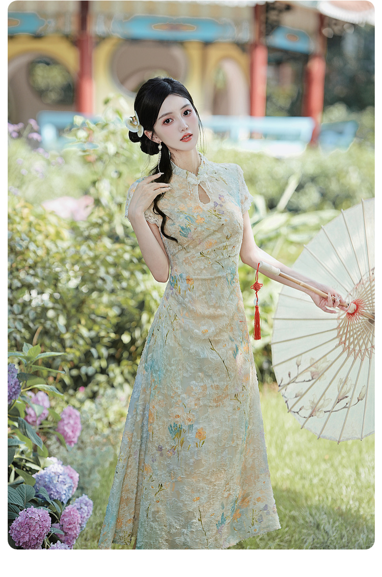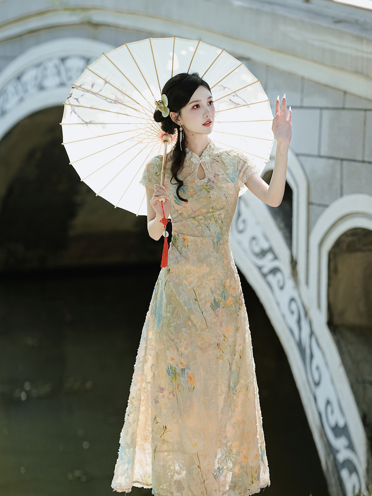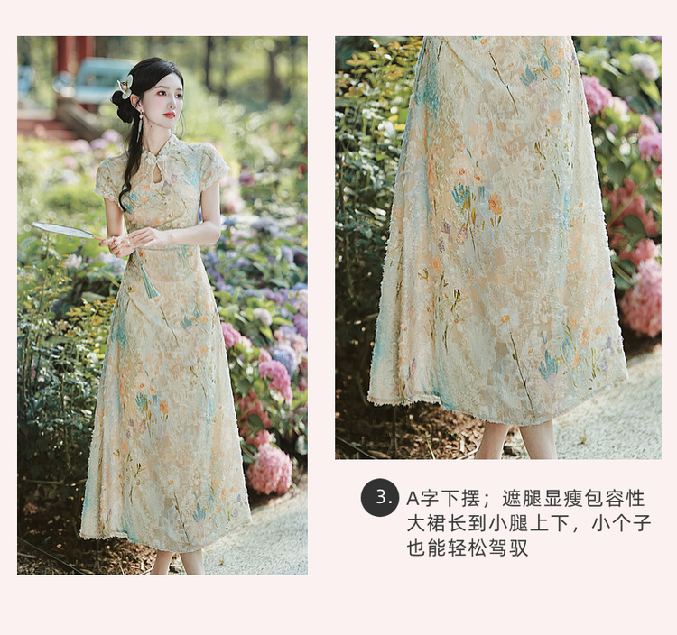 RY2028# 实拍新中式烧花显瘦旗袍连衣裙