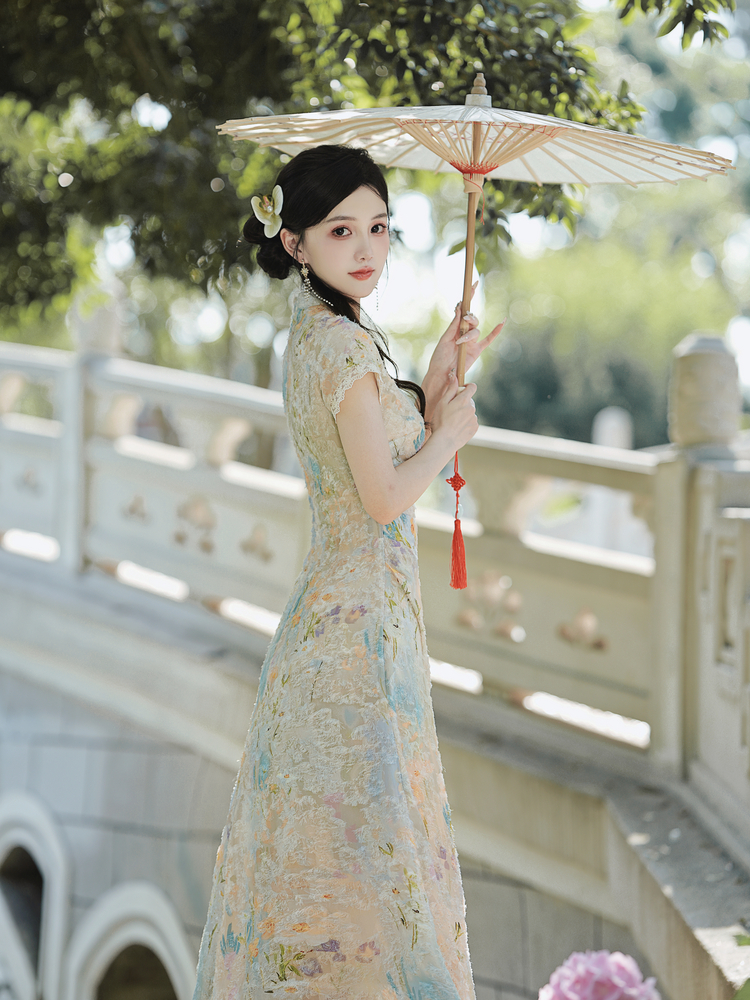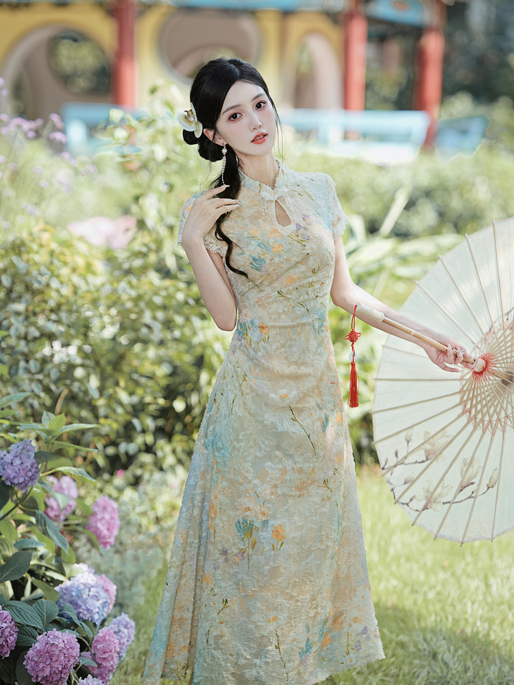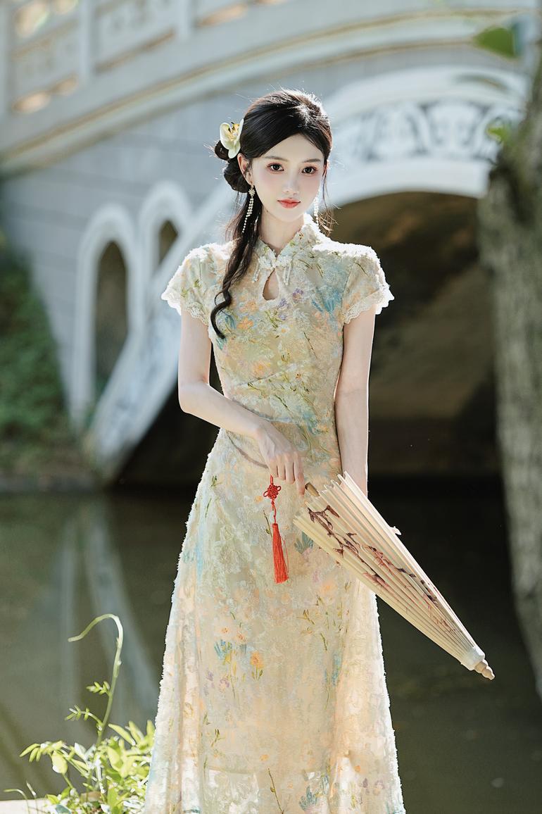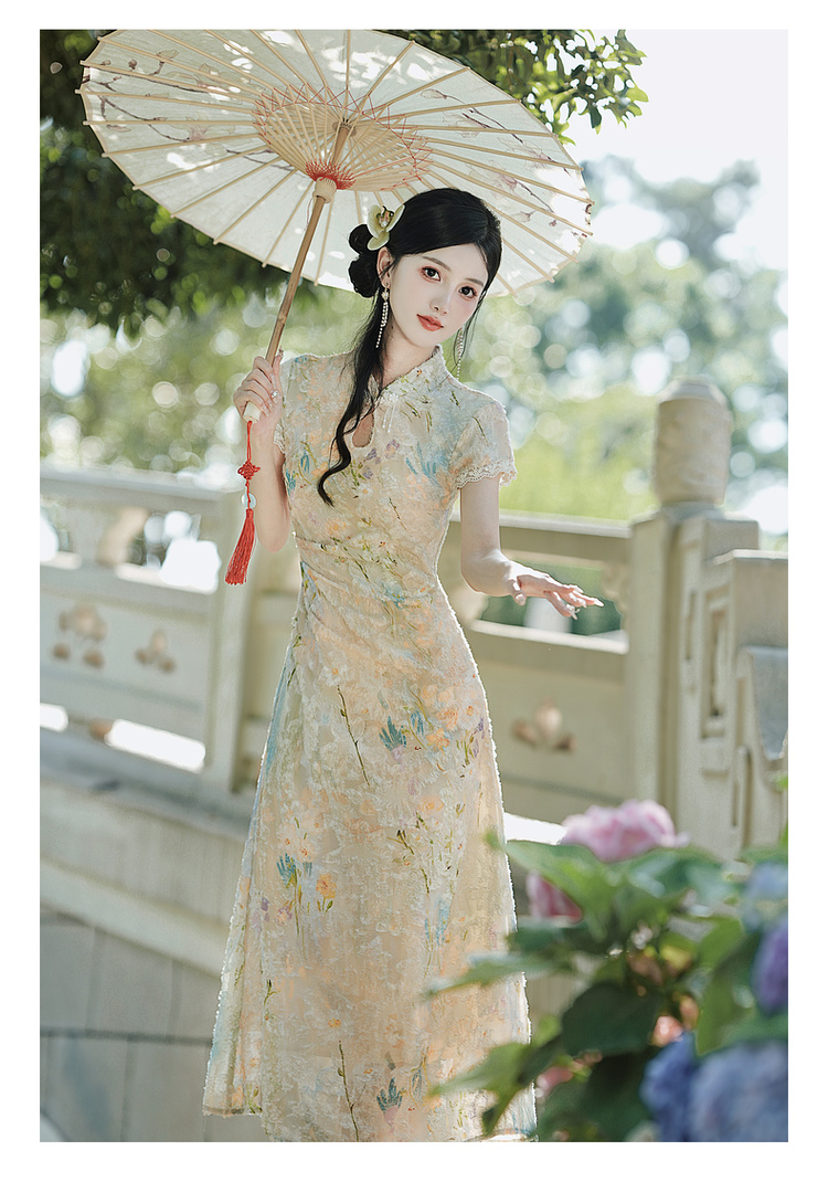 RY2028# 实拍新中式烧花显瘦旗袍连衣裙