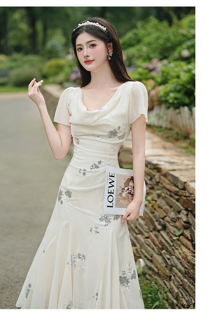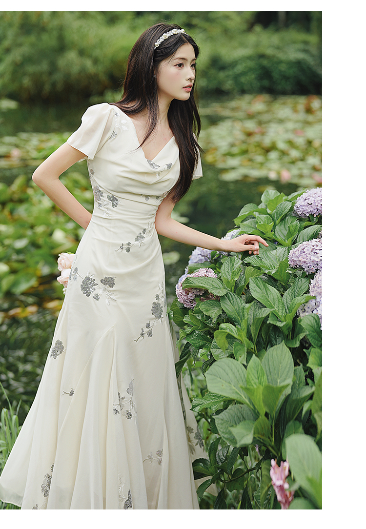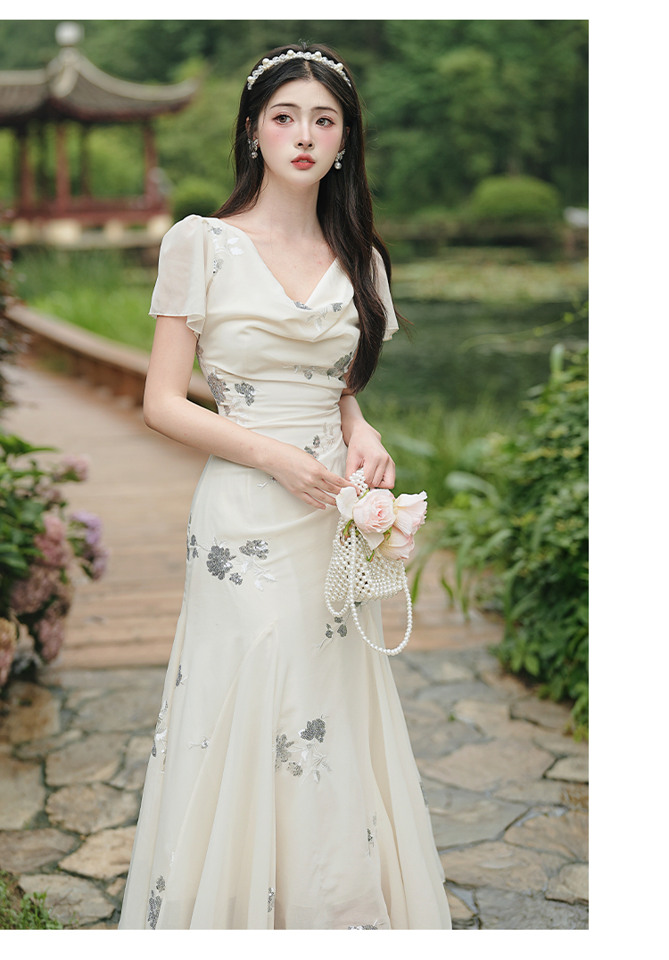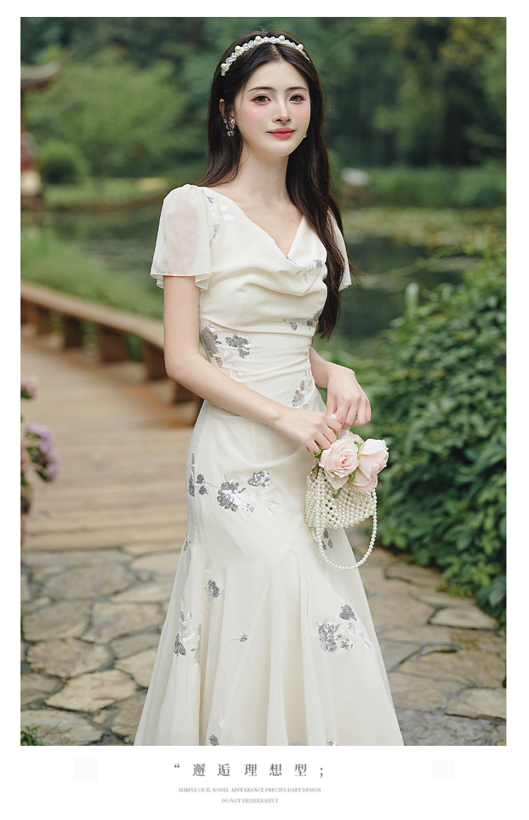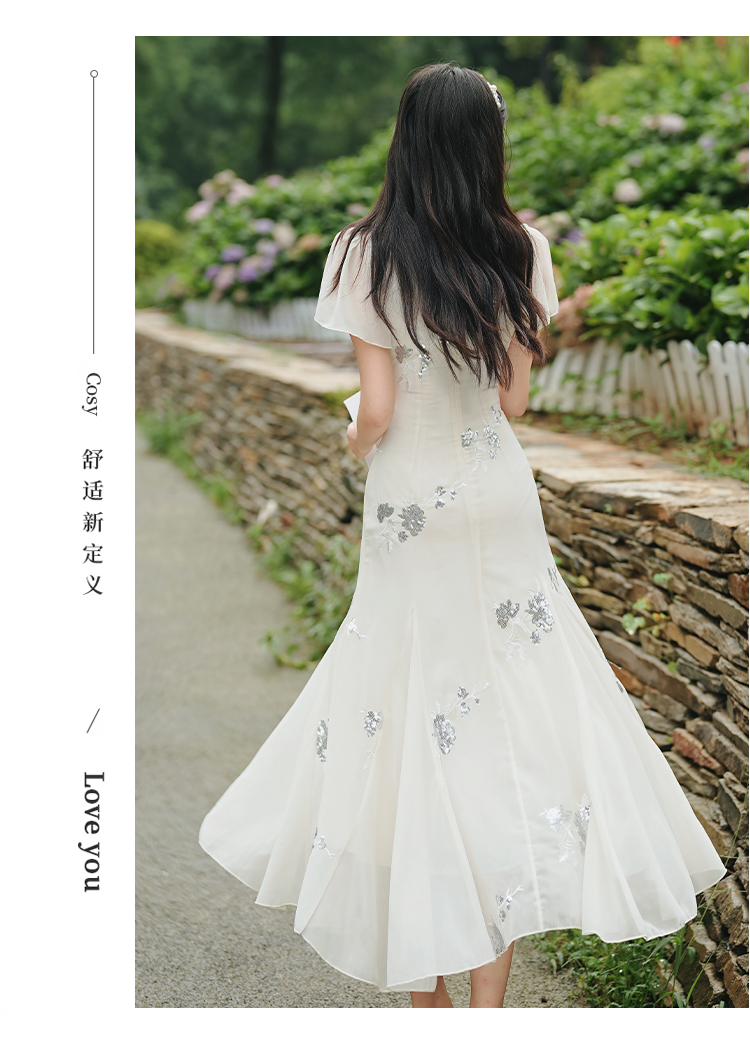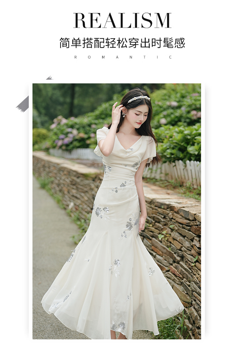 RY2029# 实拍 白月光法式重工刺绣荡领鱼尾连衣裙 上架+40