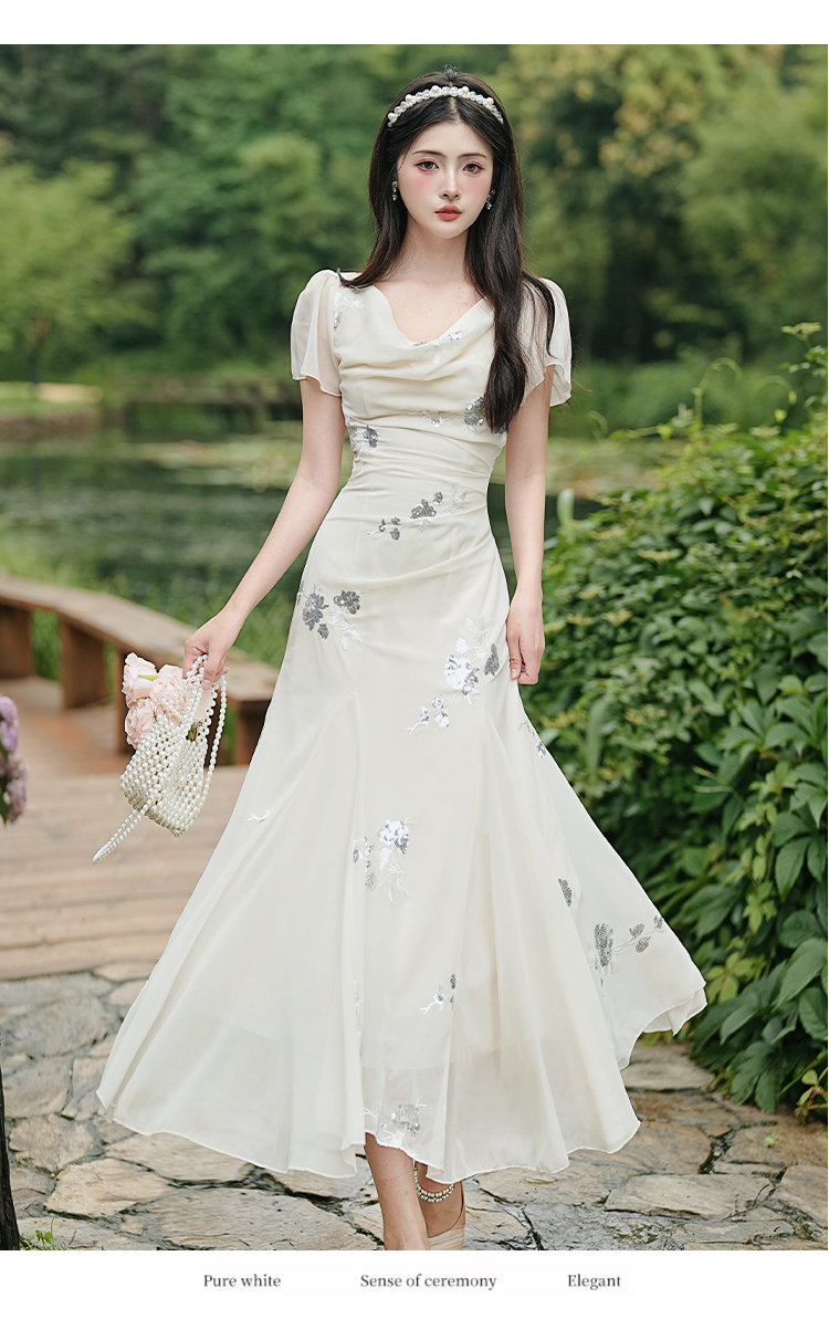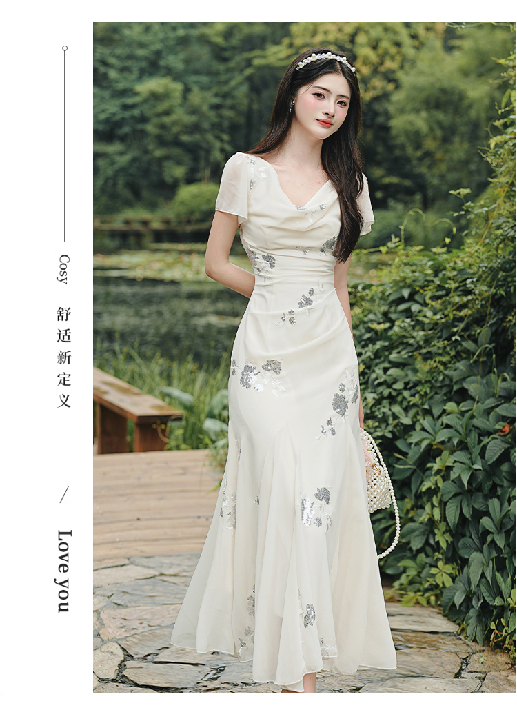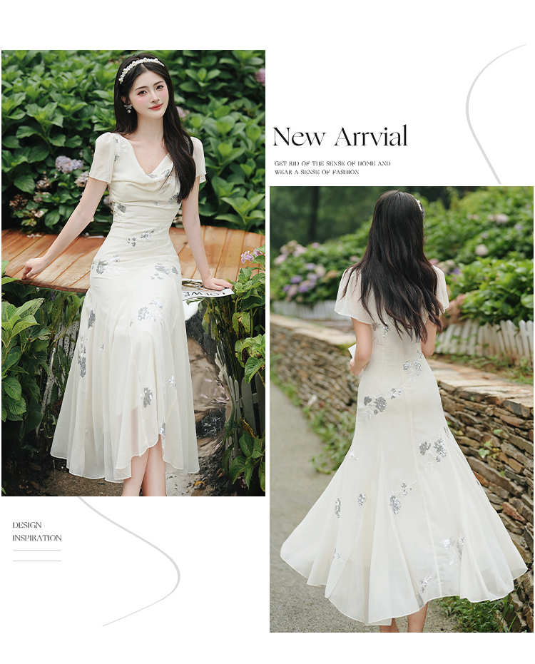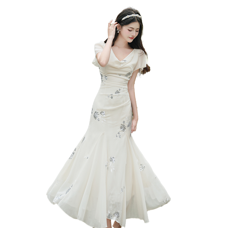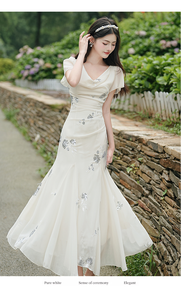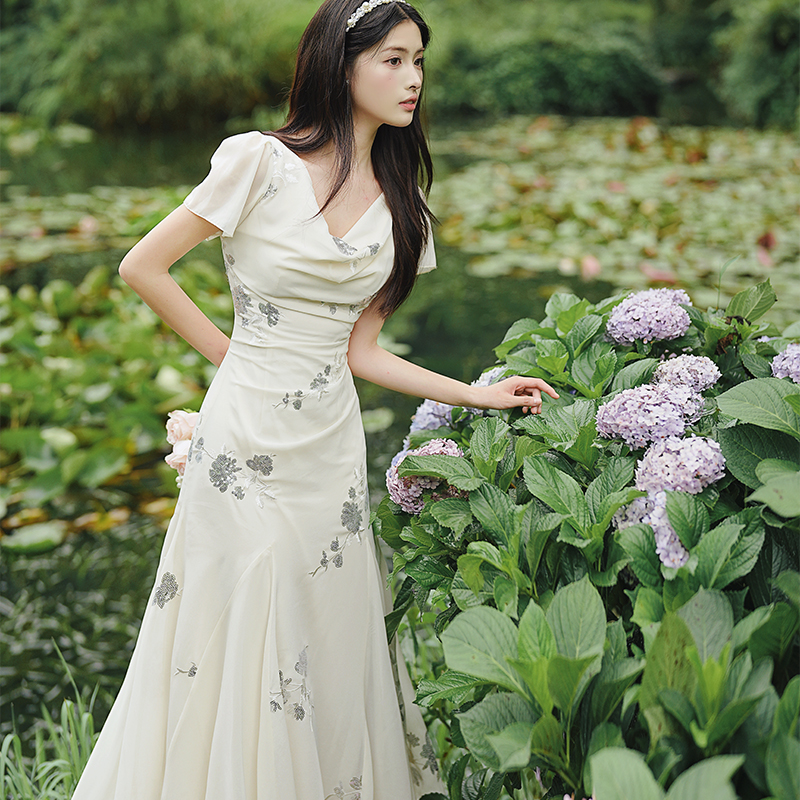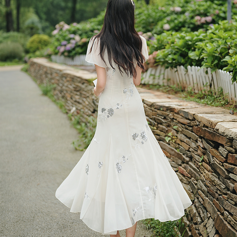 RY2029# 实拍 白月光法式重工刺绣荡领鱼尾连衣裙 上架+40