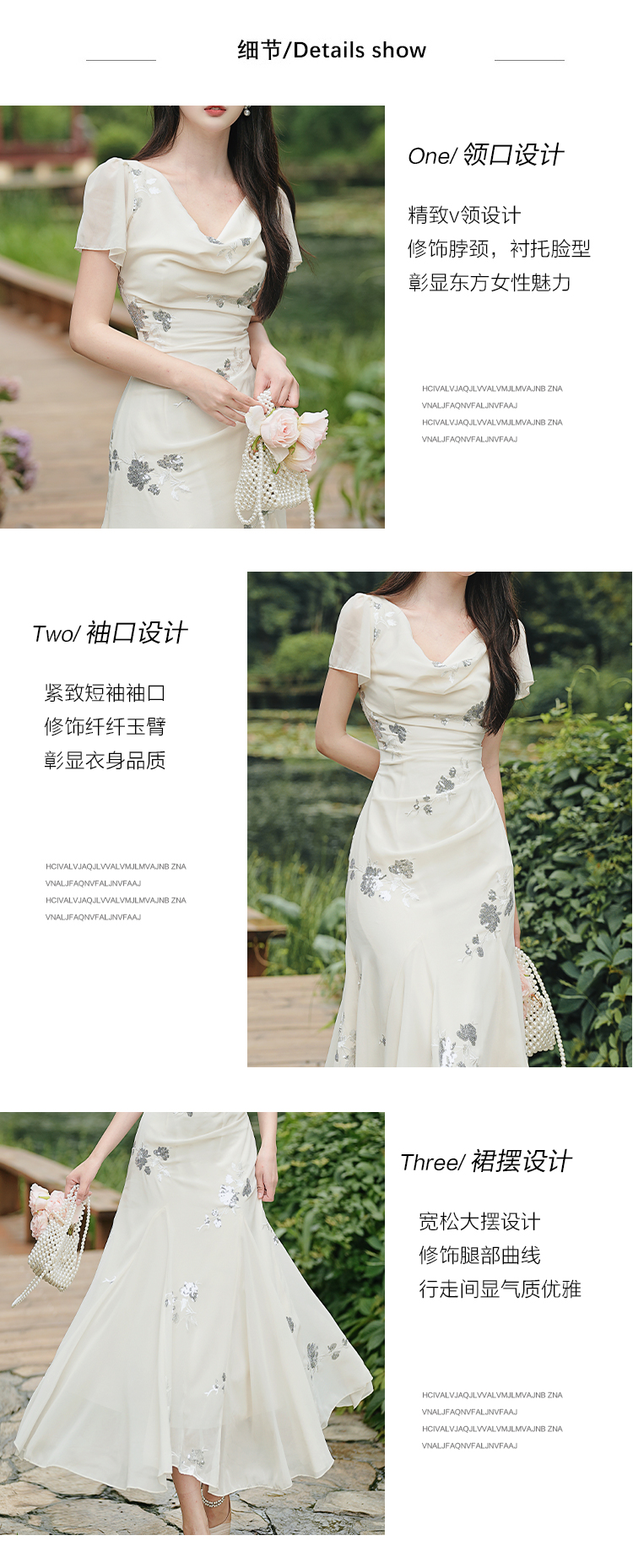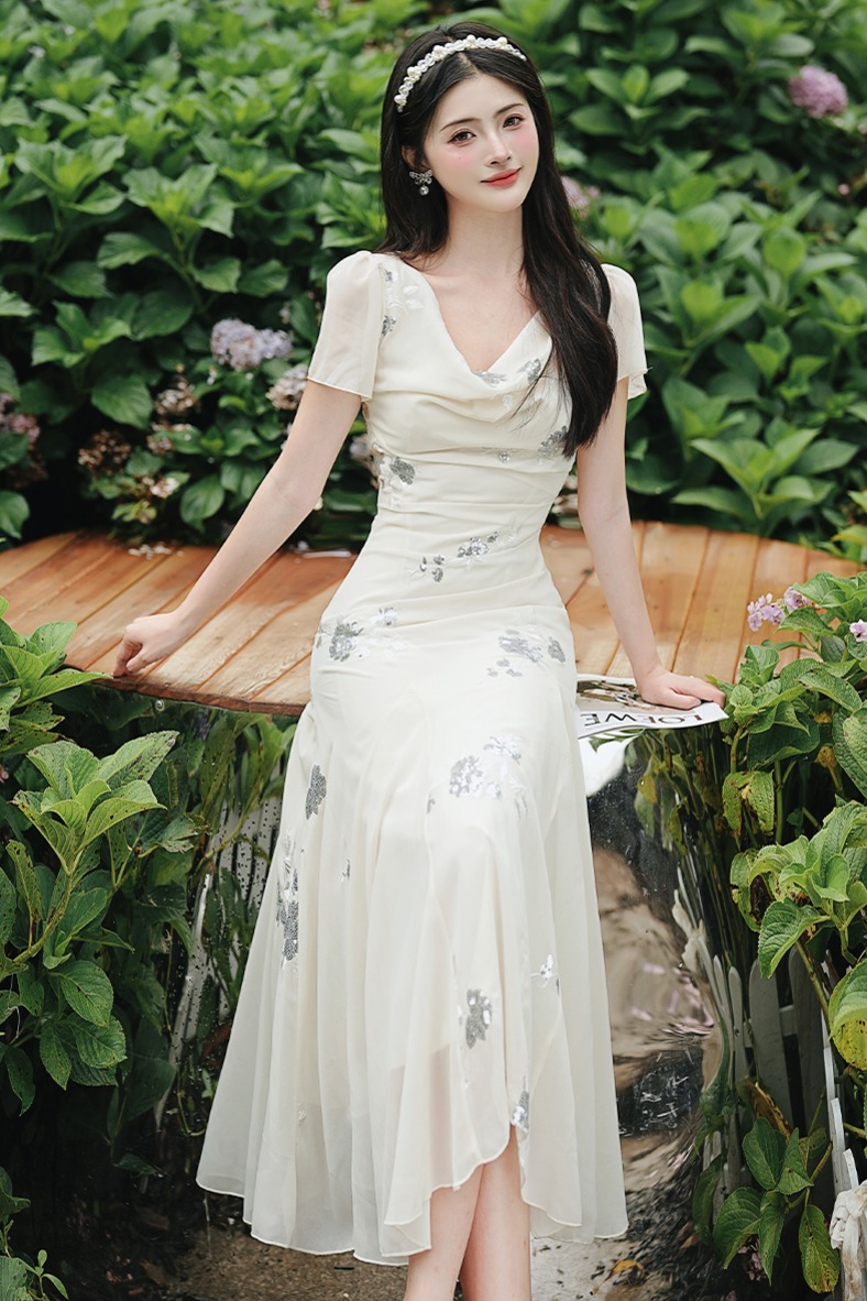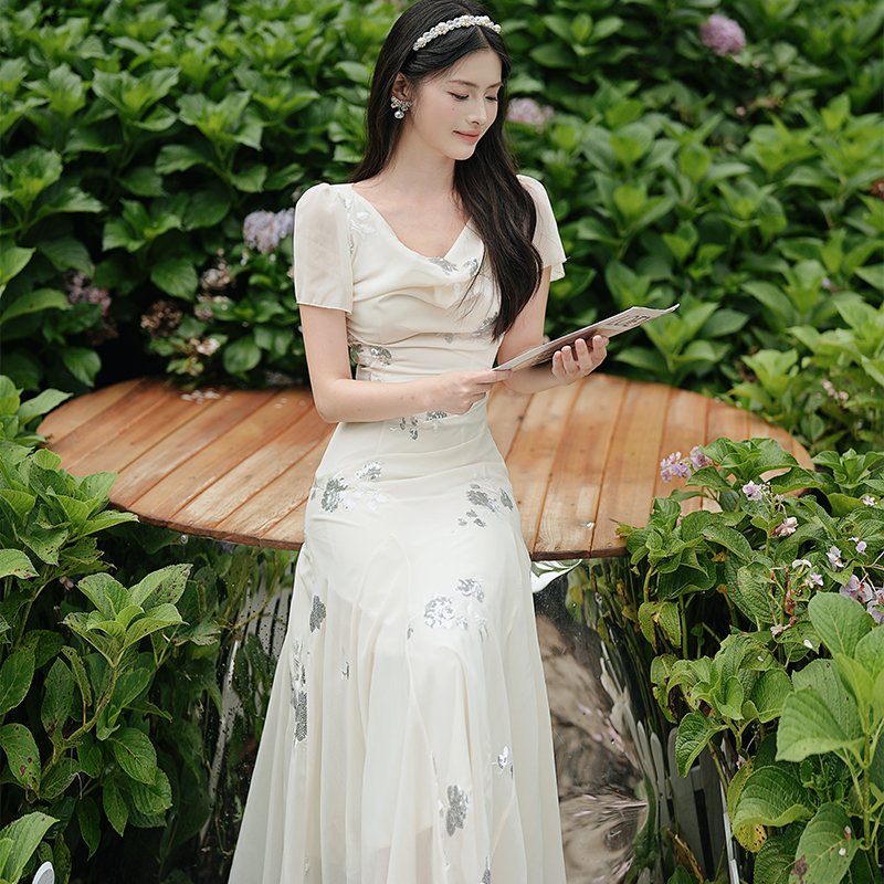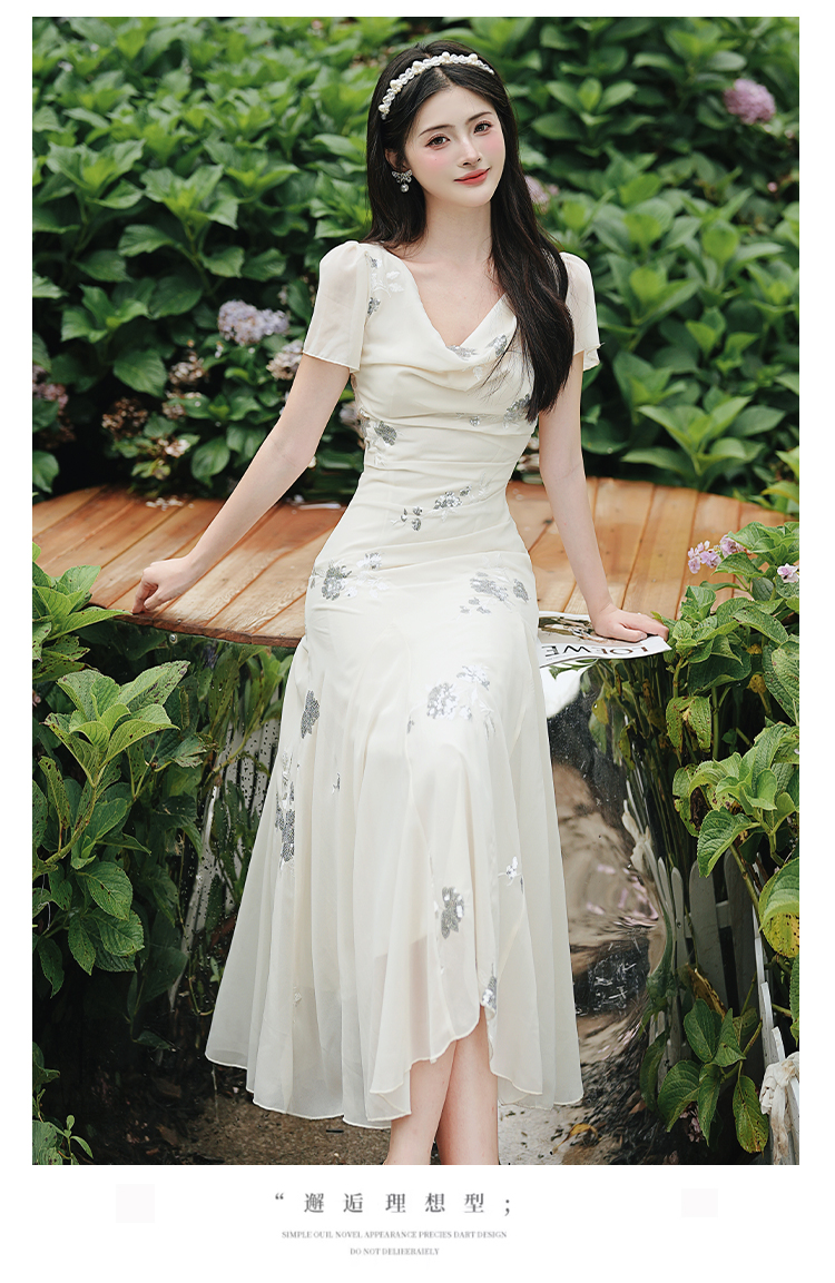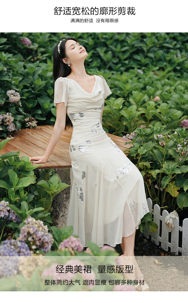RY2029# 实拍 白月光法式重工刺绣荡领鱼尾连衣裙 上架+40