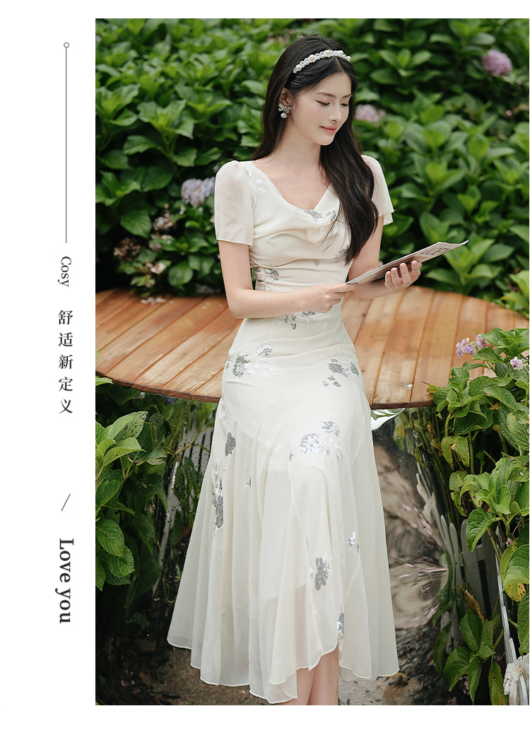 RY2032# 实拍 法式复古刺绣日常飘逸显瘦短袖连衣裙 上架+40