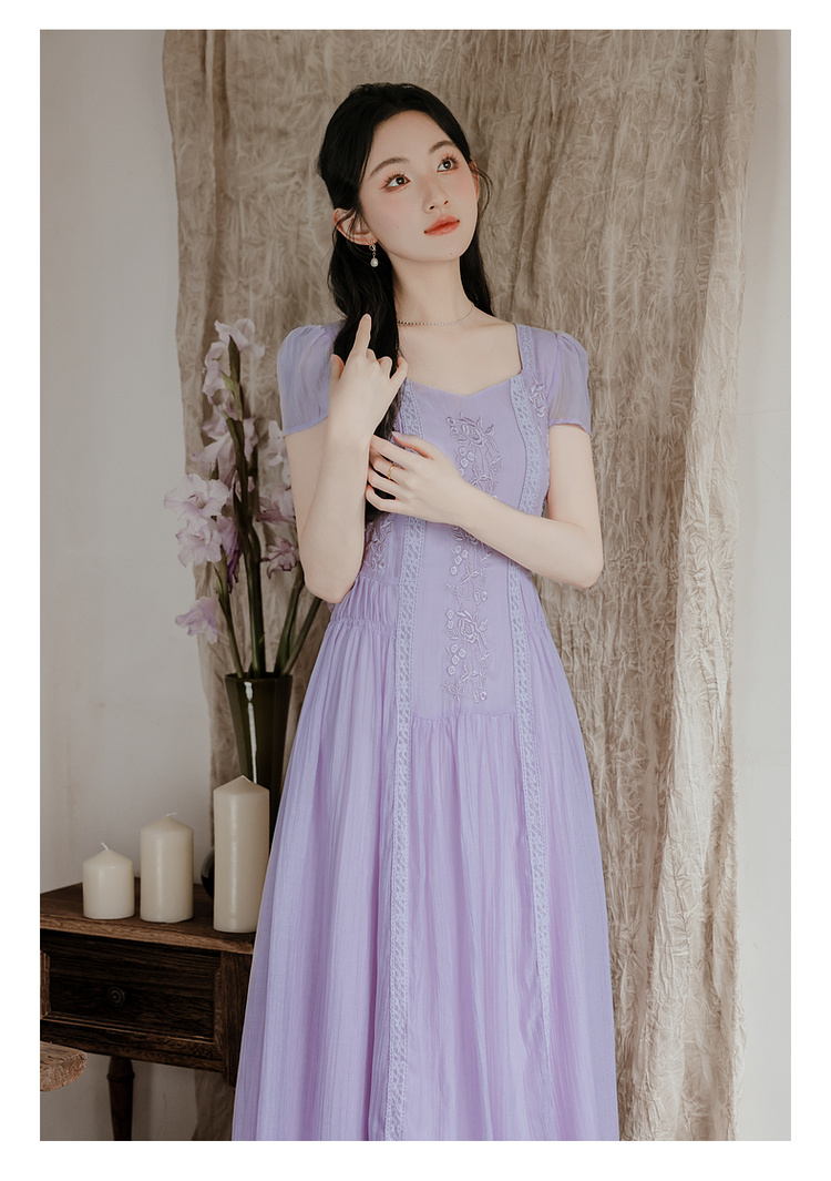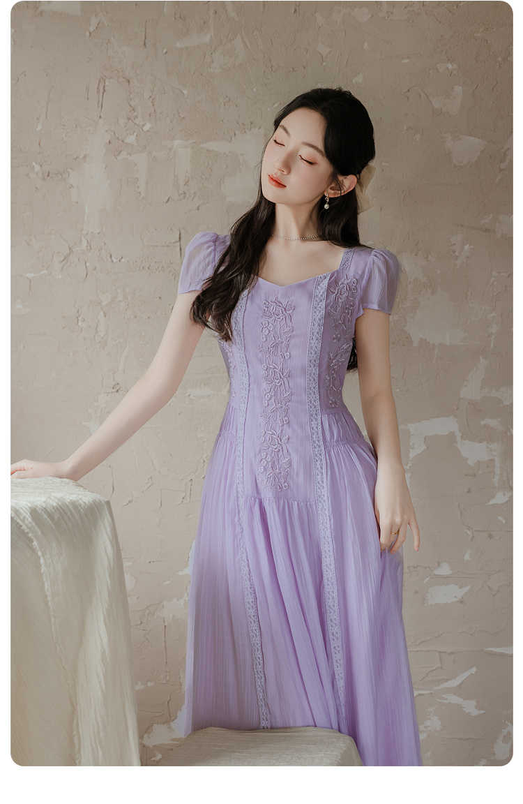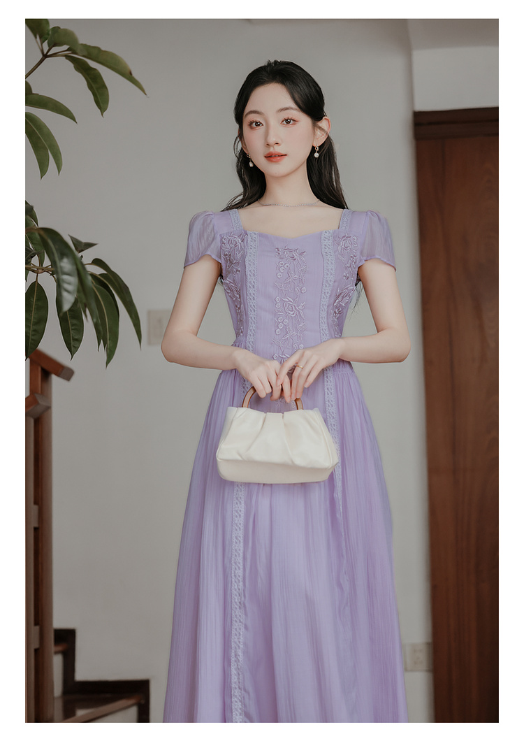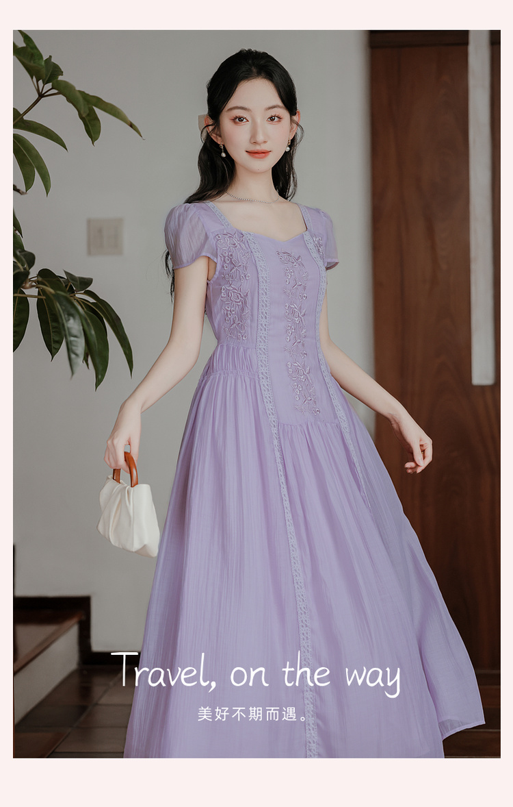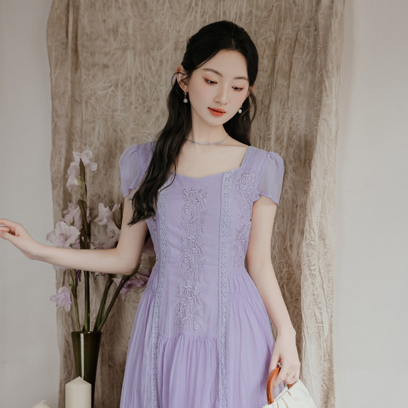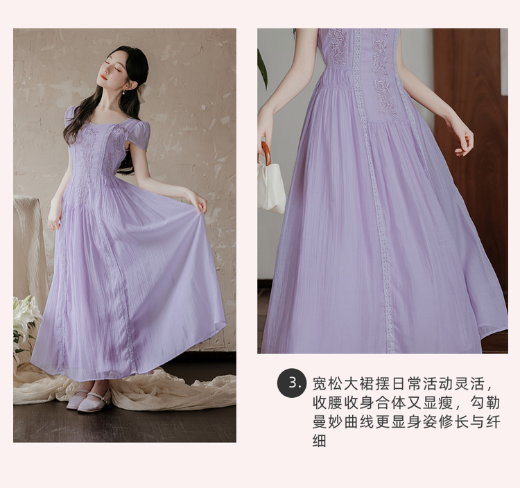 RY2032# 实拍 法式复古刺绣日常飘逸显瘦短袖连衣裙 上架+40