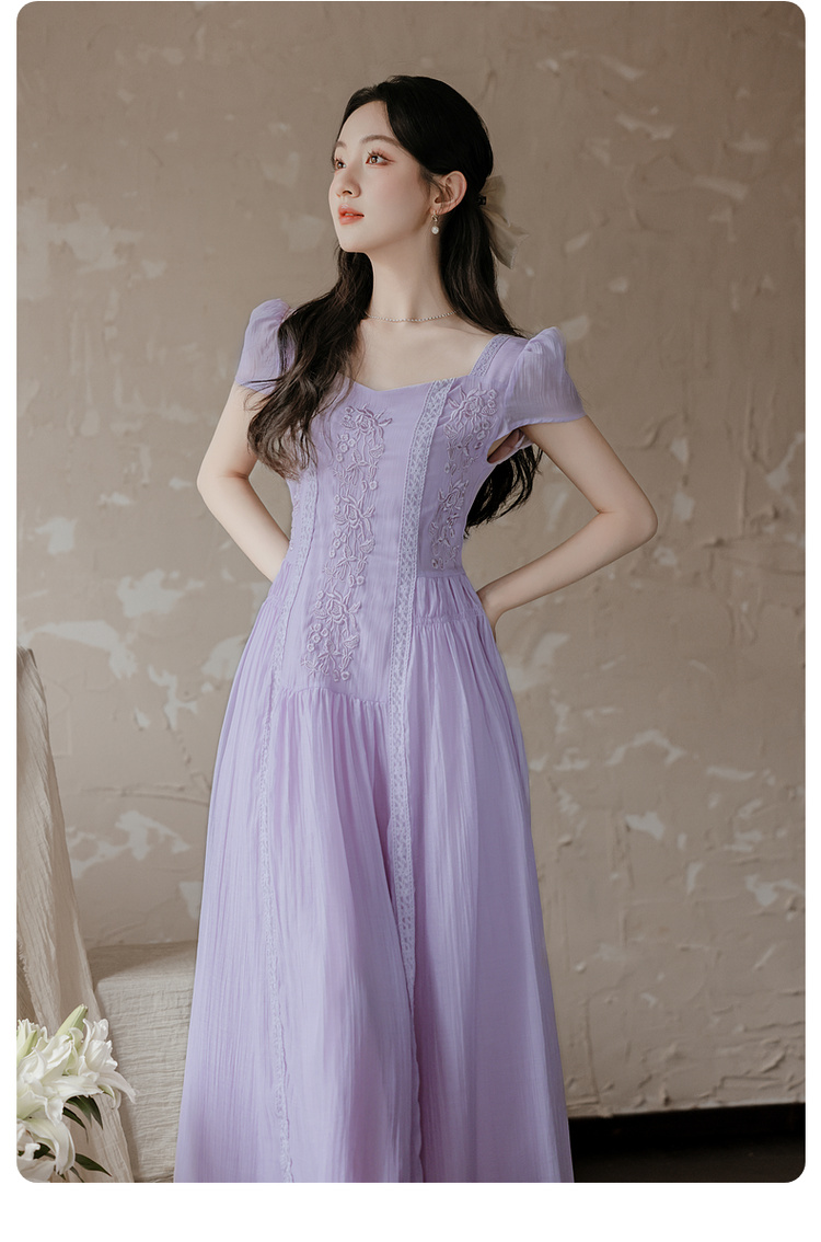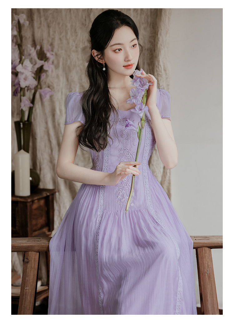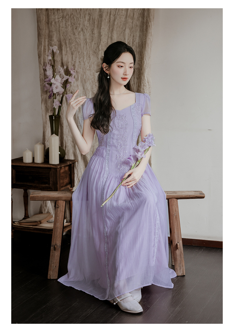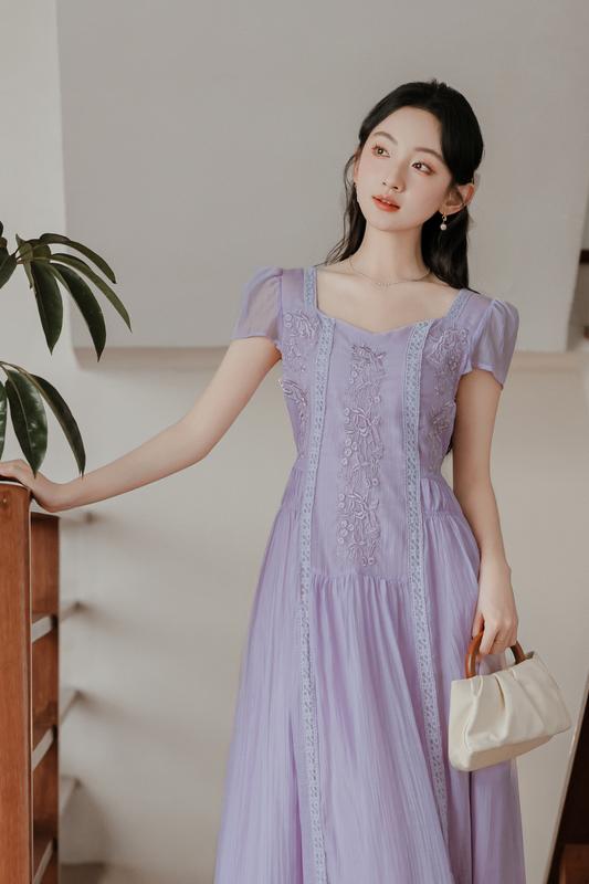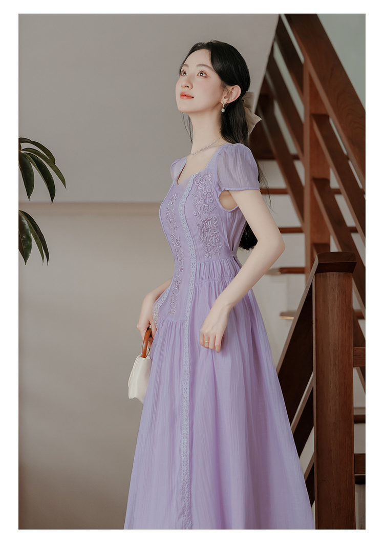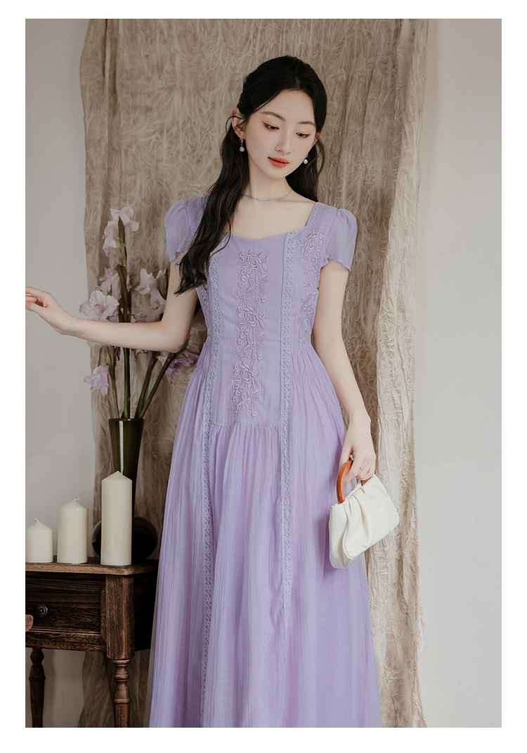 RY2032# 实拍 法式复古刺绣日常飘逸显瘦短袖连衣裙 上架+40