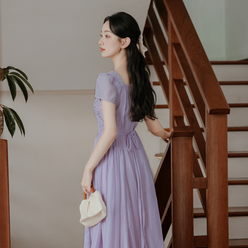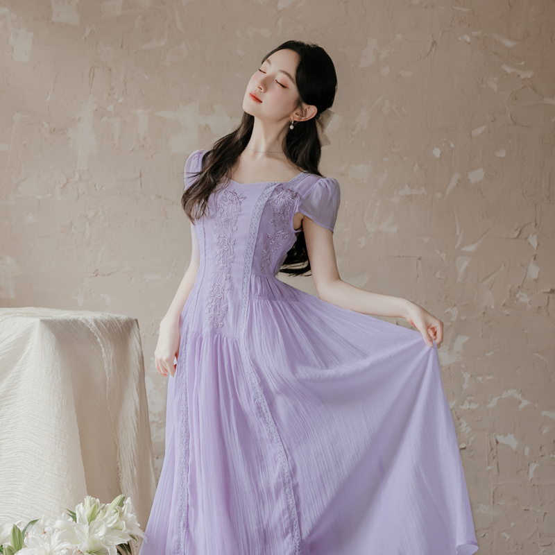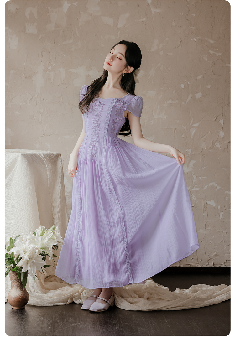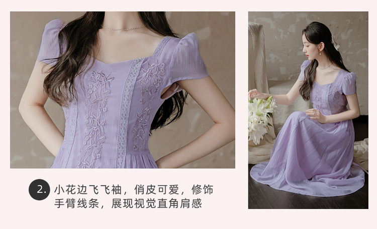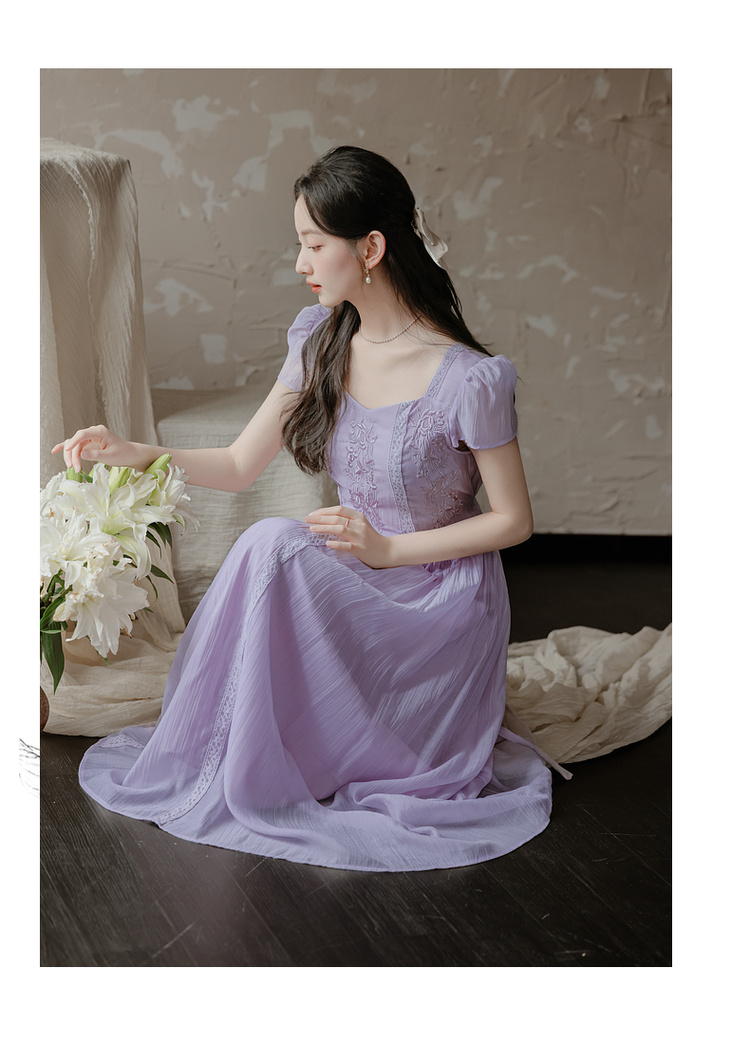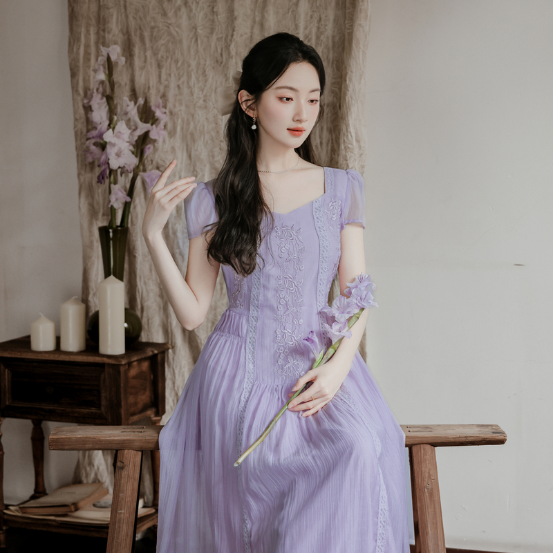 RY2032# 实拍 法式复古刺绣日常飘逸显瘦短袖连衣裙 上架+40