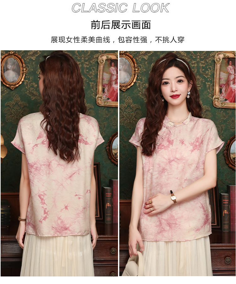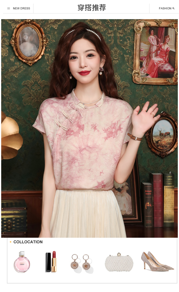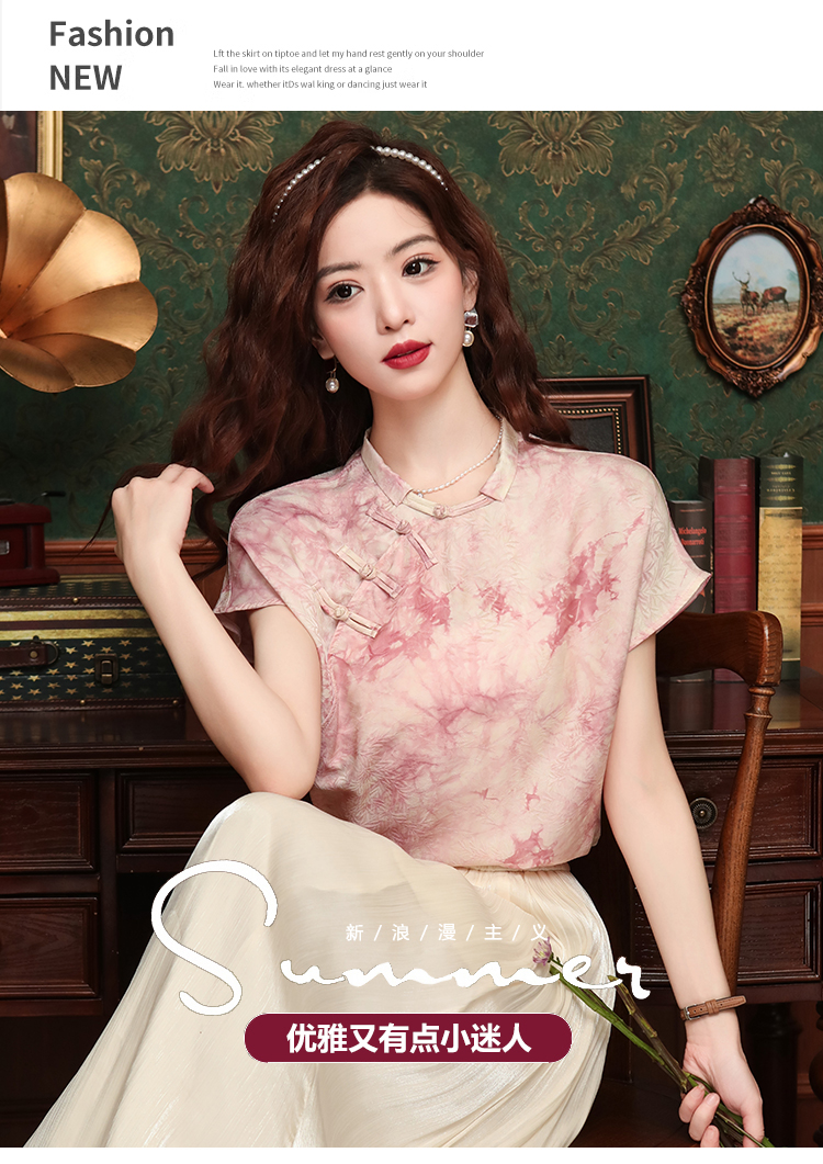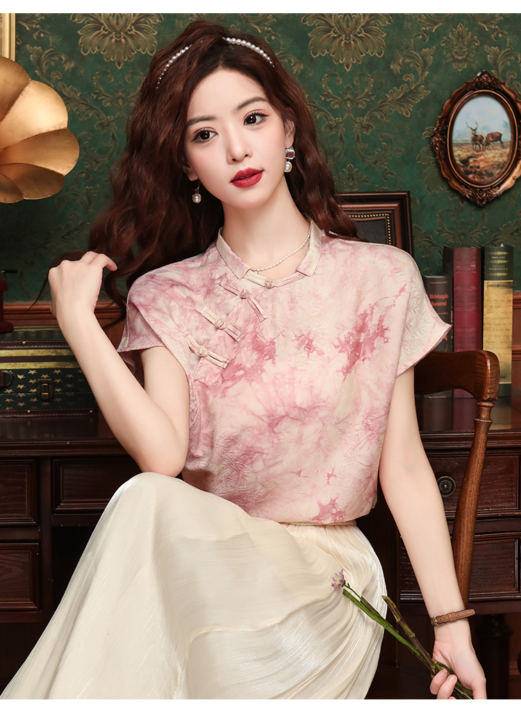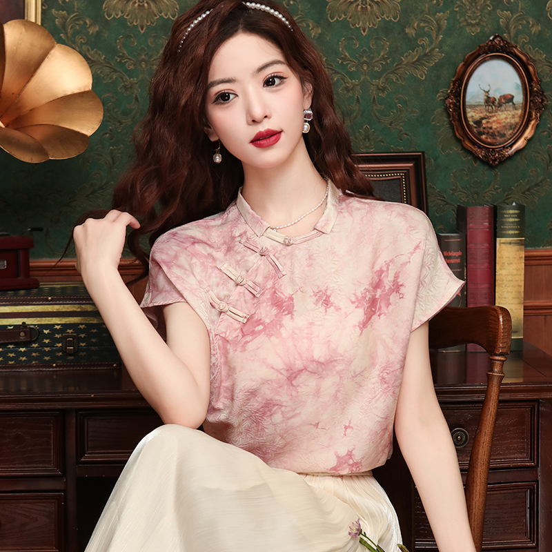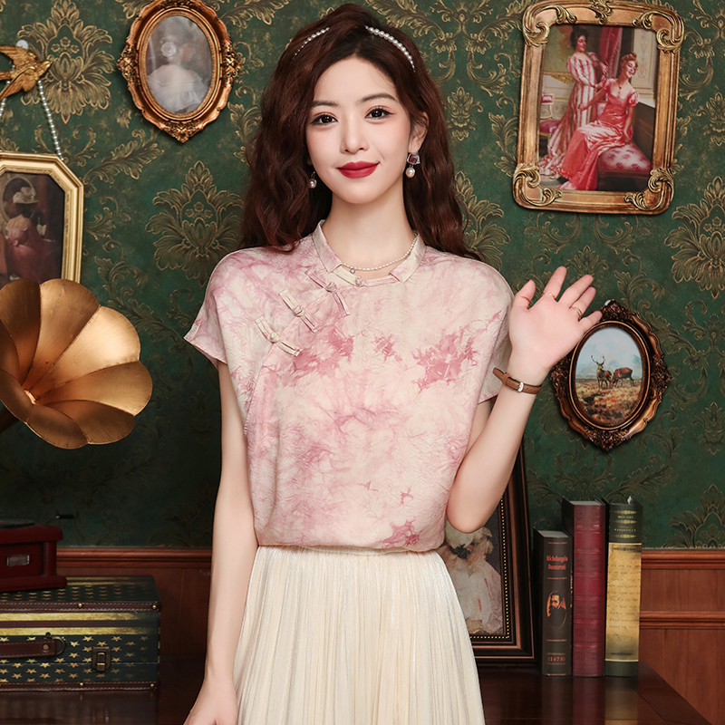 RY2034# 已出货2026实拍新中式 夏季短袖气质小衫斜襟盘扣t恤