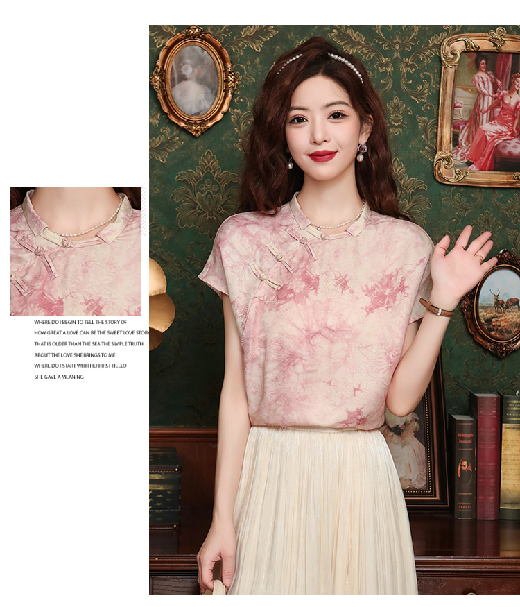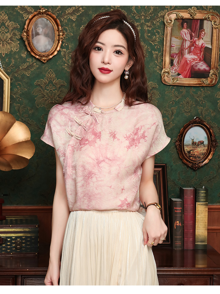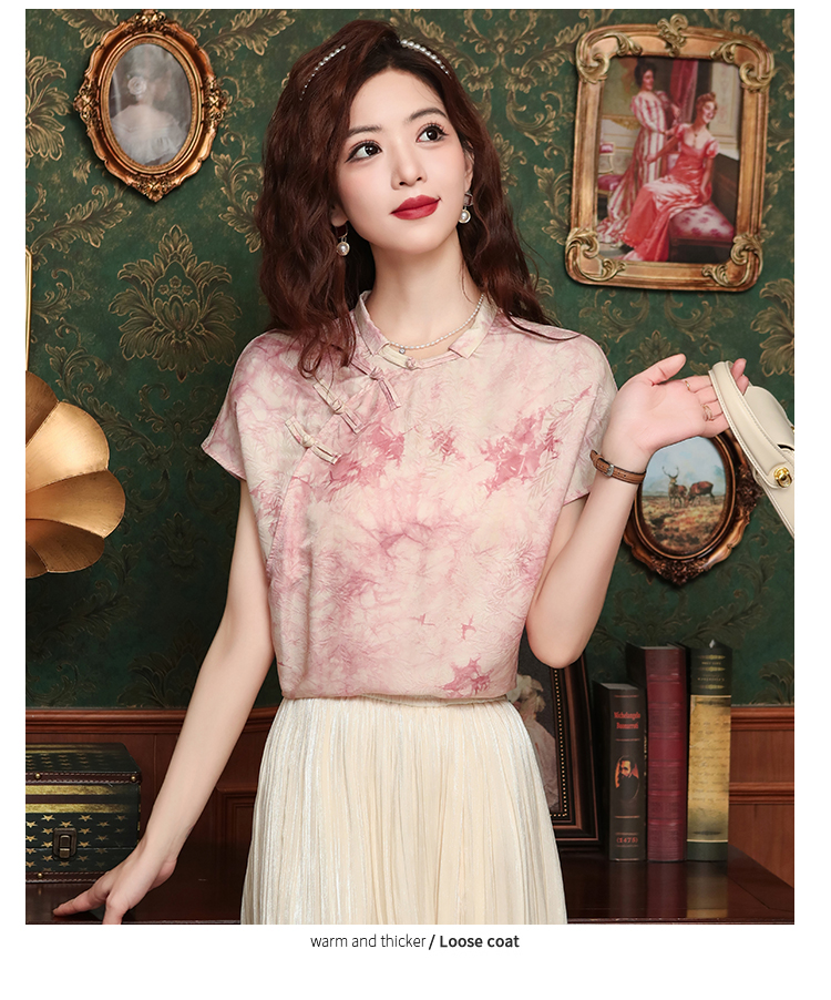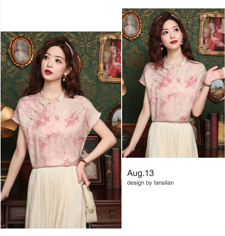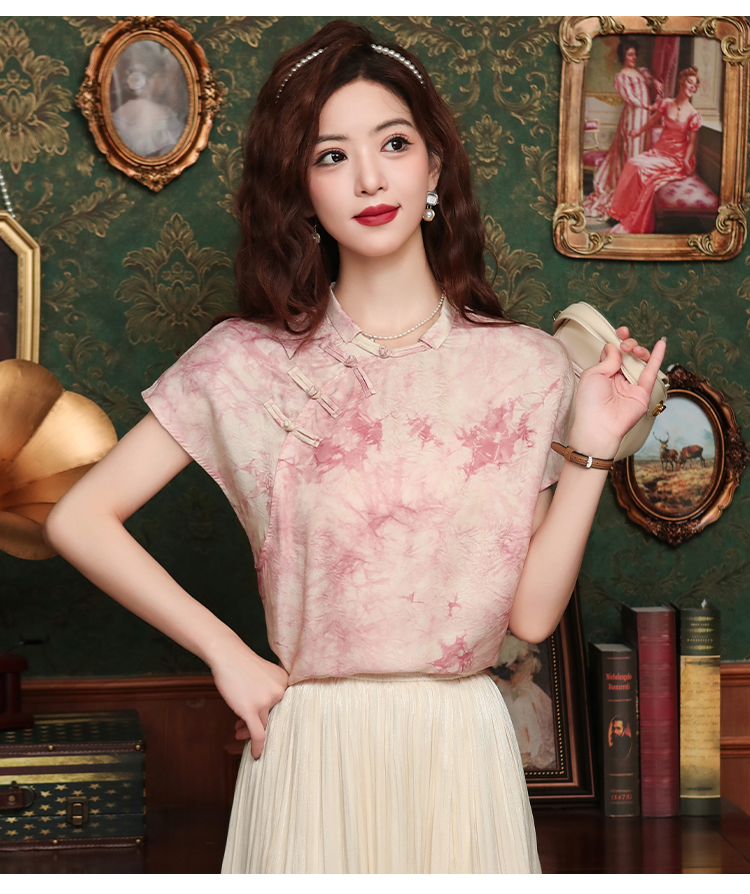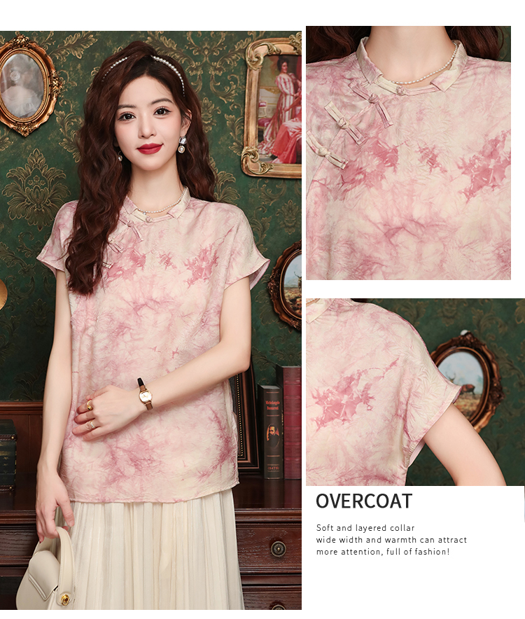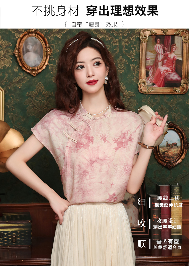 RY2034# 已出货2026实拍新中式 夏季短袖气质小衫斜襟盘扣t恤