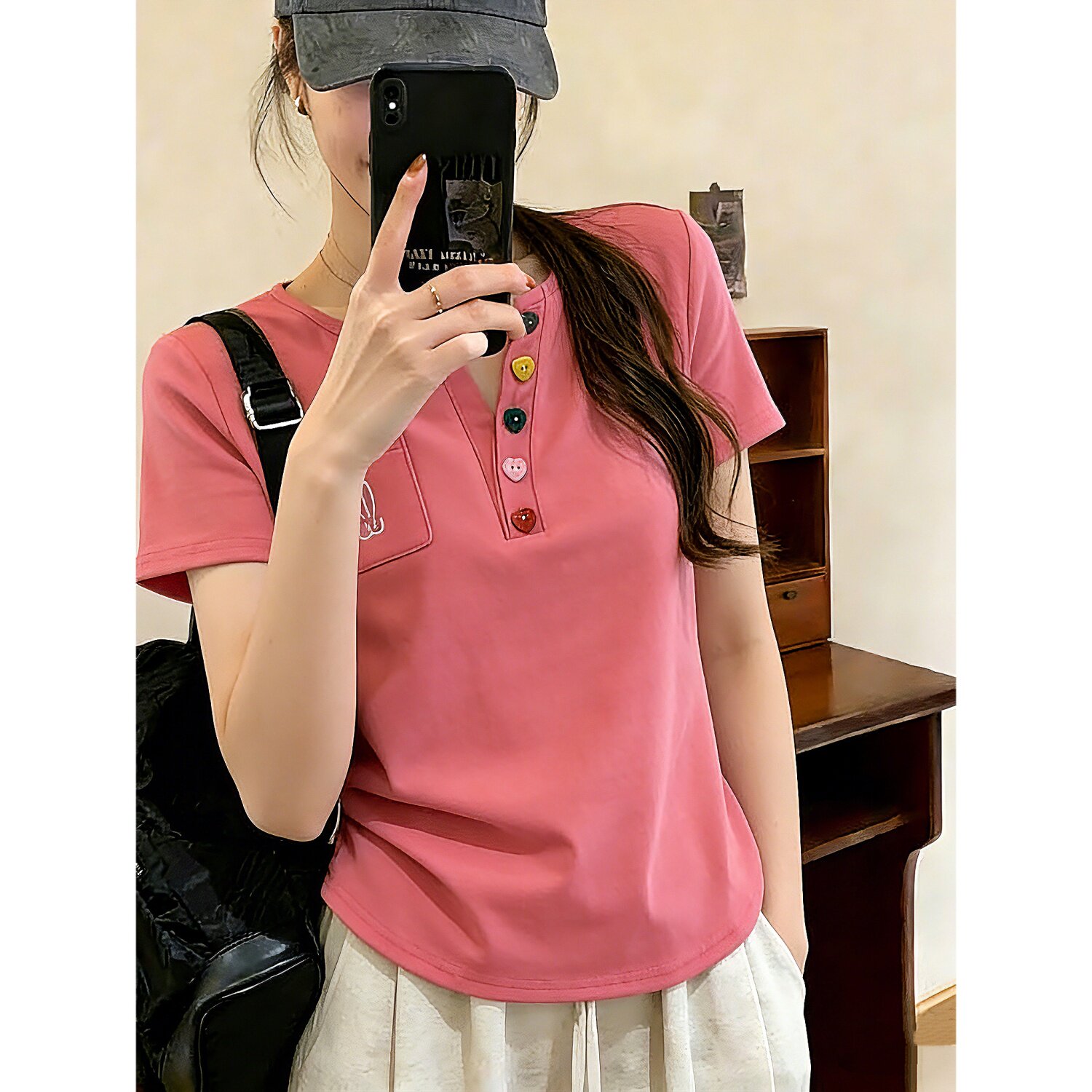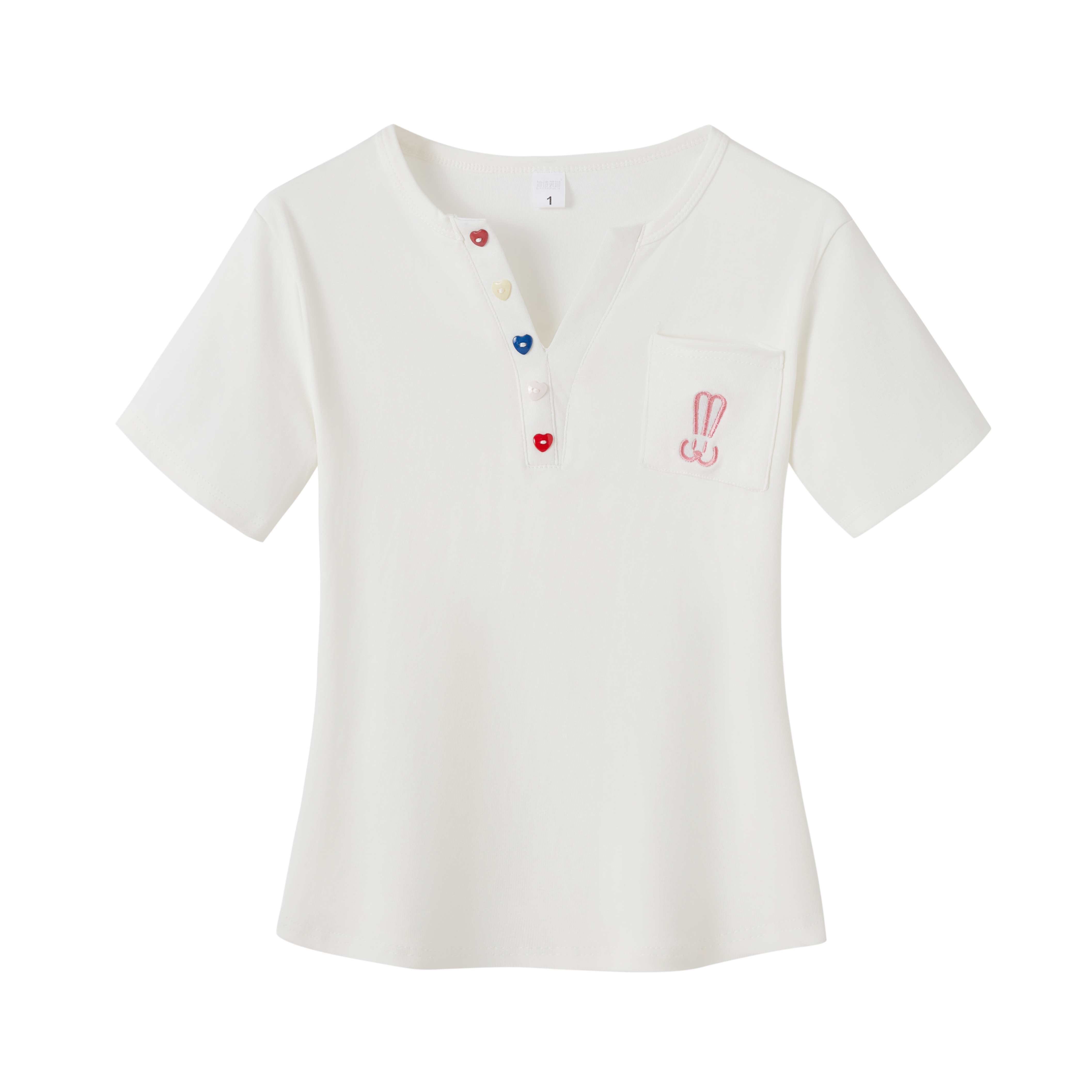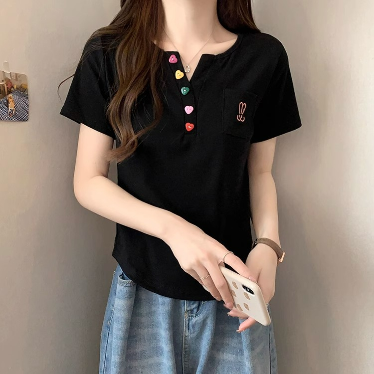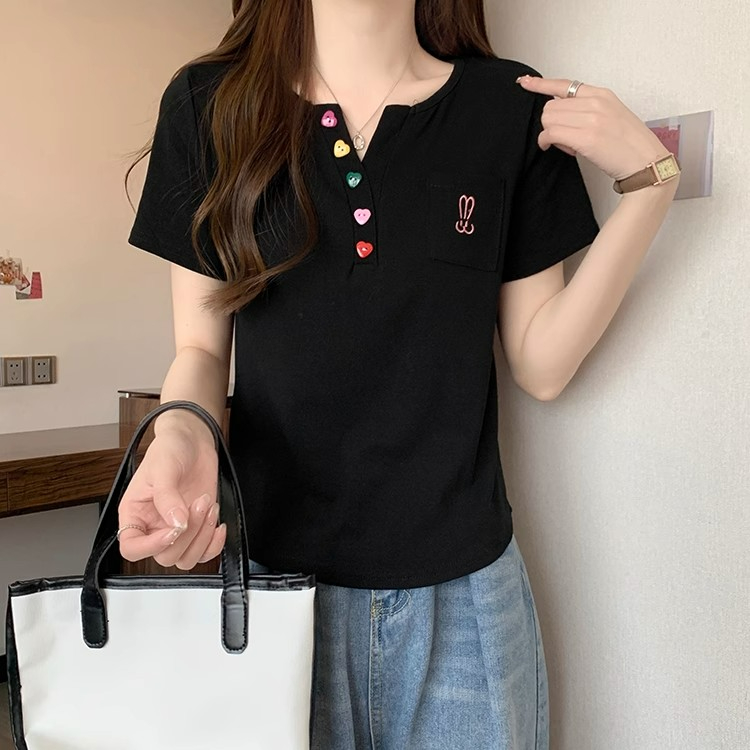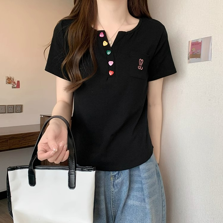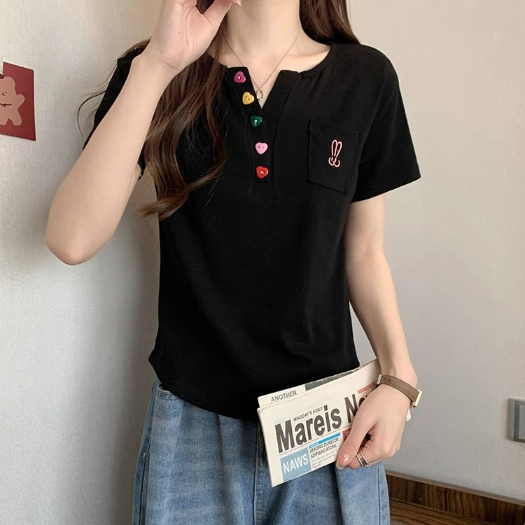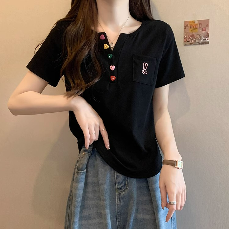 RY2045# 大码女装胖mm弧形下摆V领正肩短袖t恤女