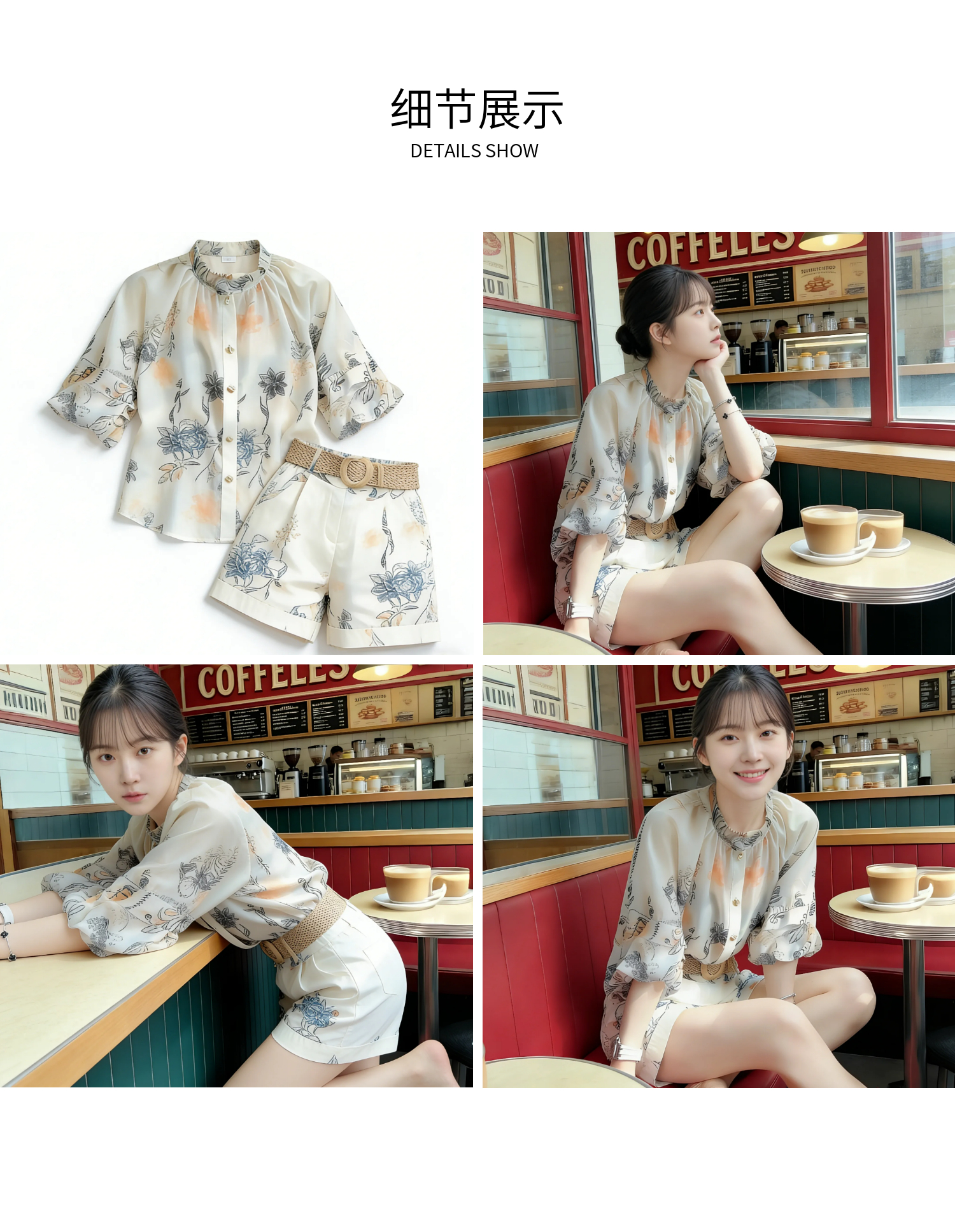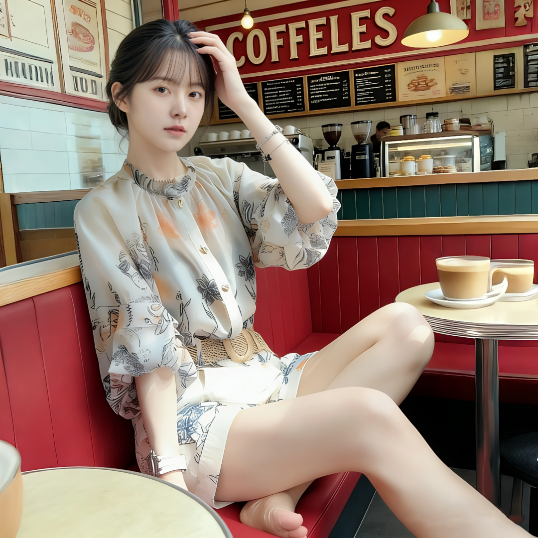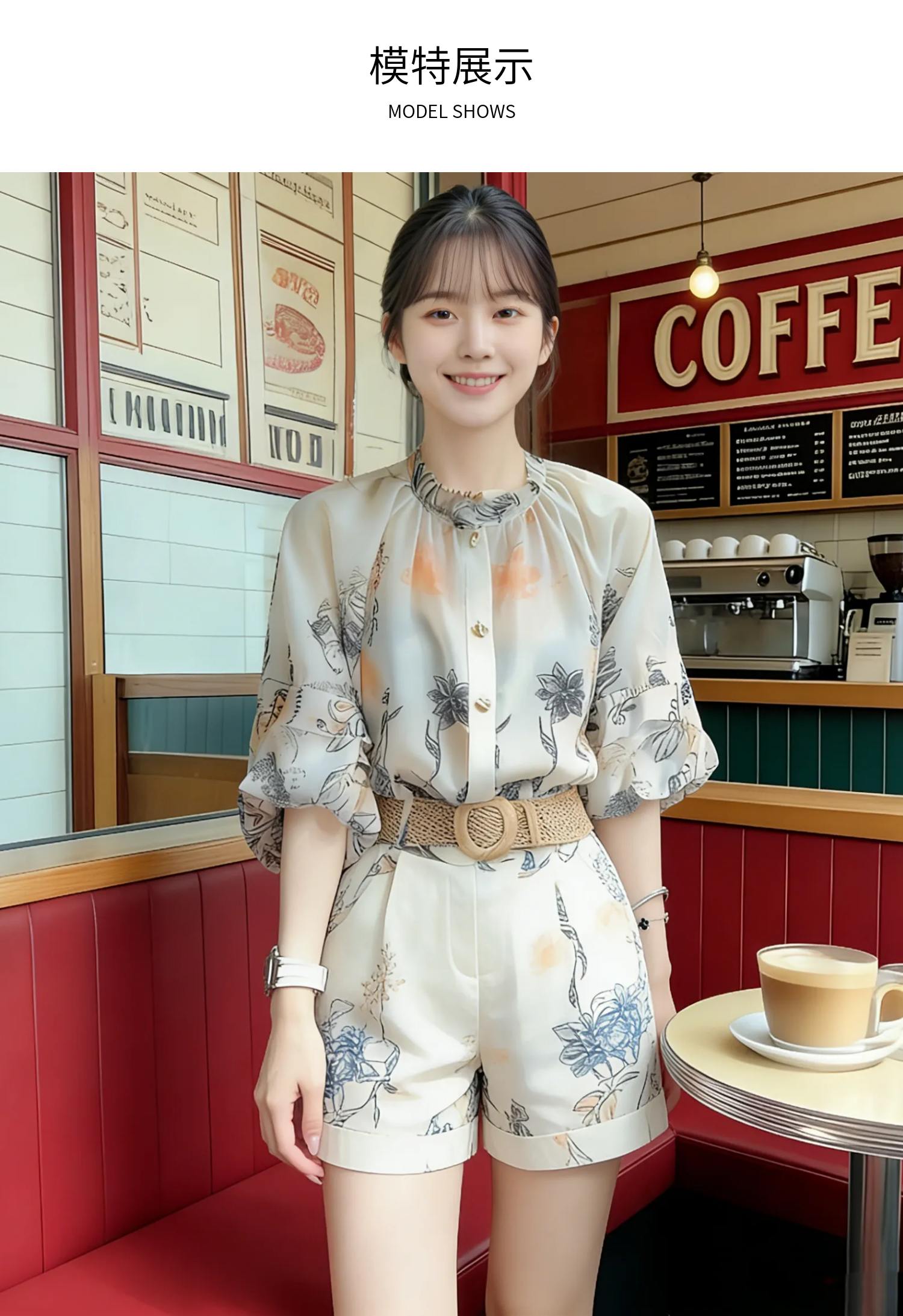 RY2050# 夏装搭配一整套轻奢高级感遮肉显瘦印花防晒雪纺衬衫短裤两件套装
