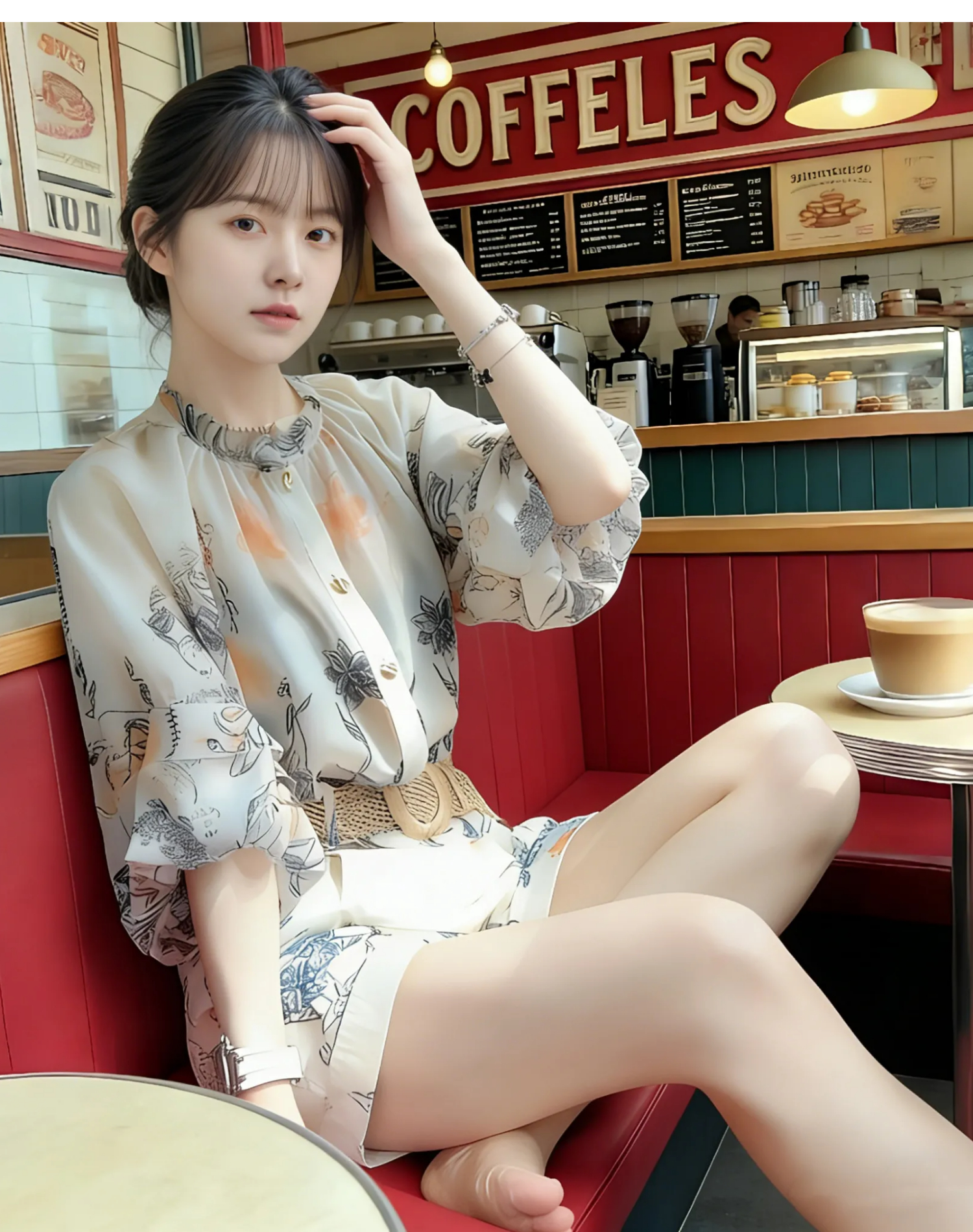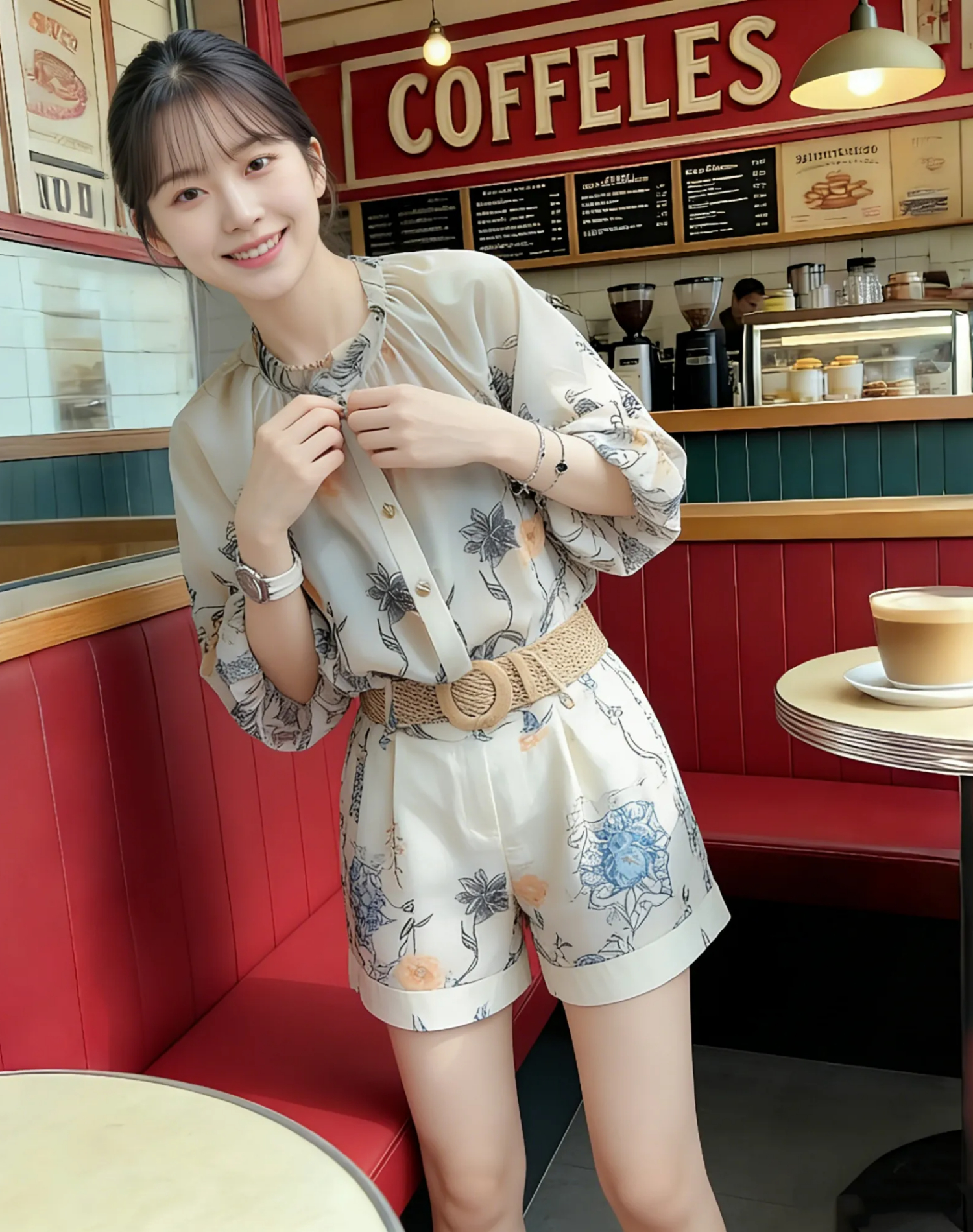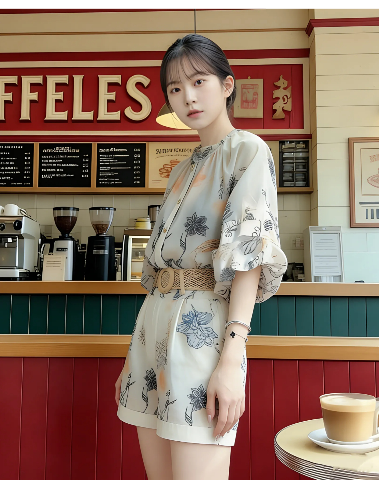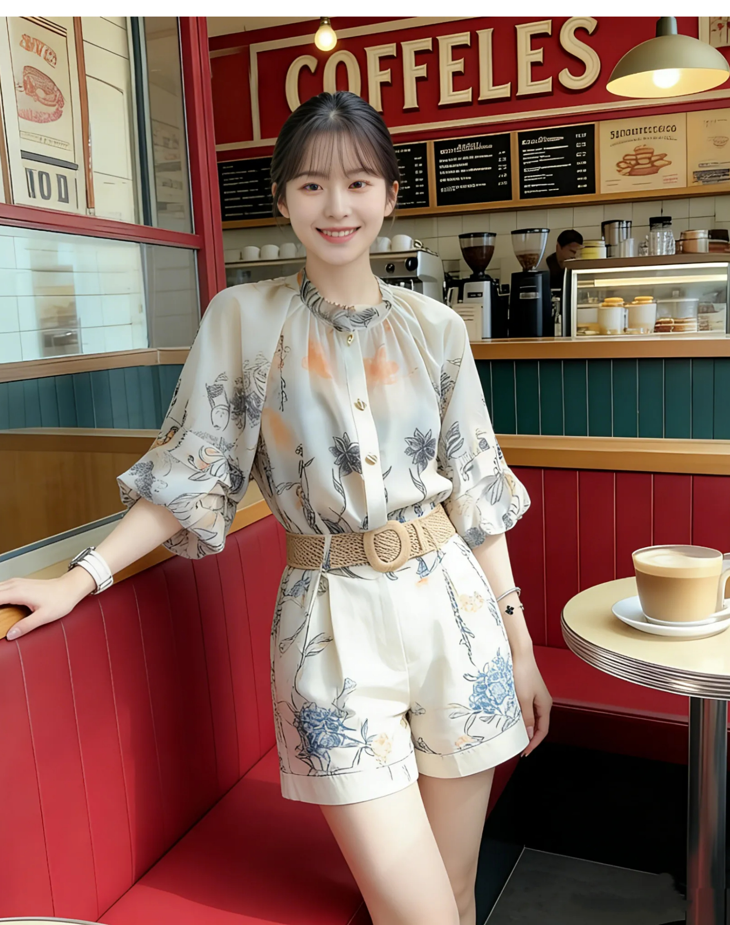RY2050# 夏装搭配一整套轻奢高级感遮肉显瘦印花防晒雪纺衬衫短裤两件套装