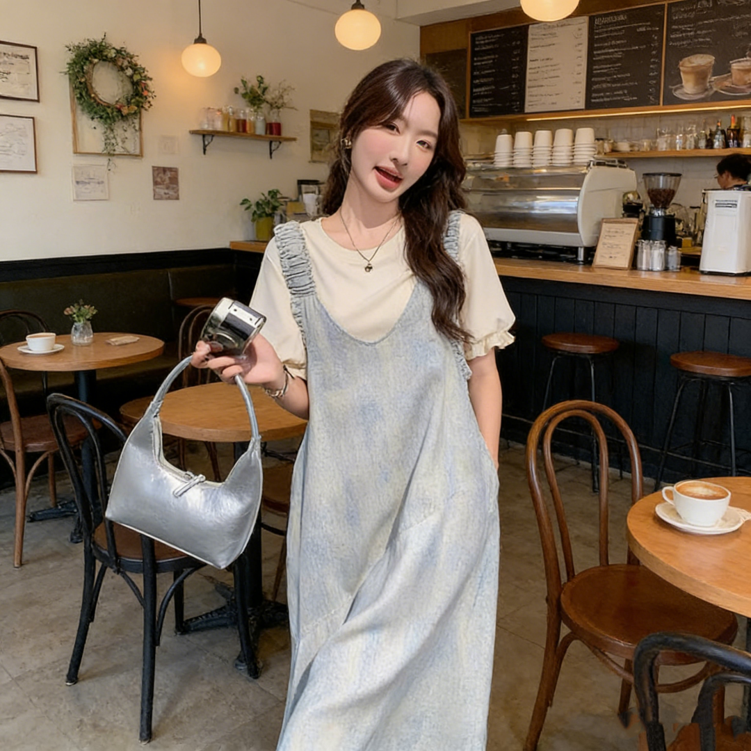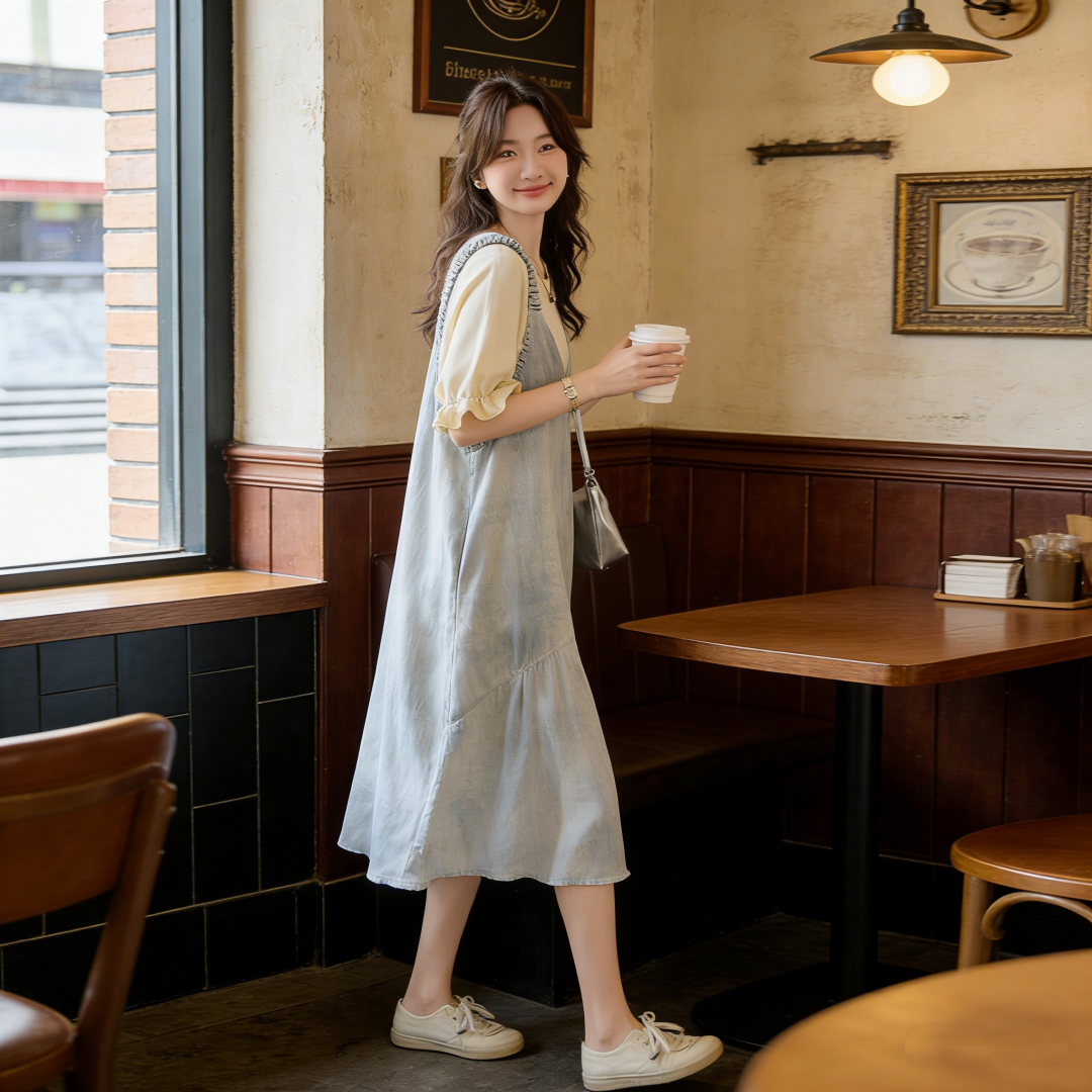RY2051# 渐变色背带裙女2026新款夏季学生遮肉显瘦洋气减龄连衣裙两件套装