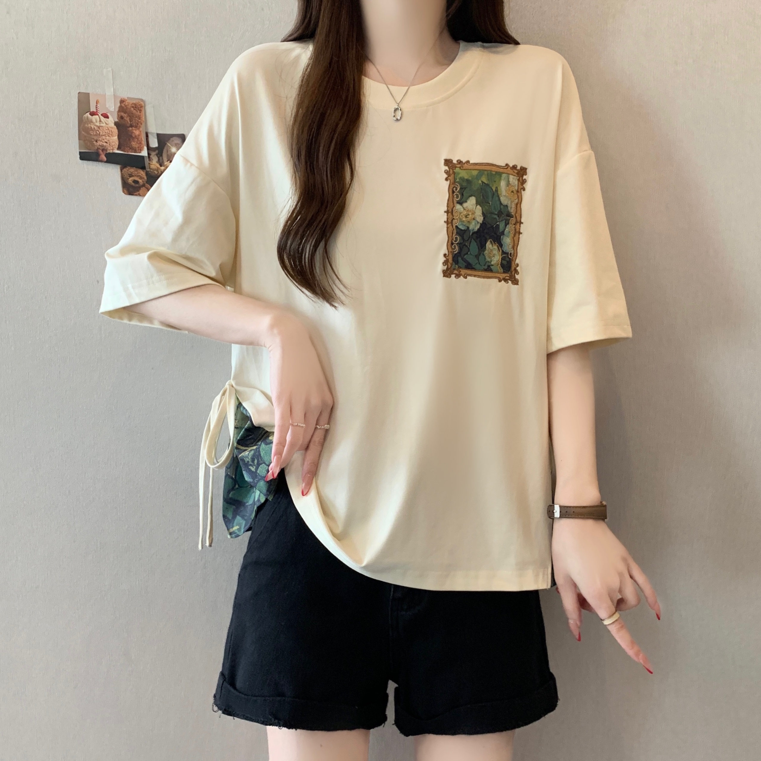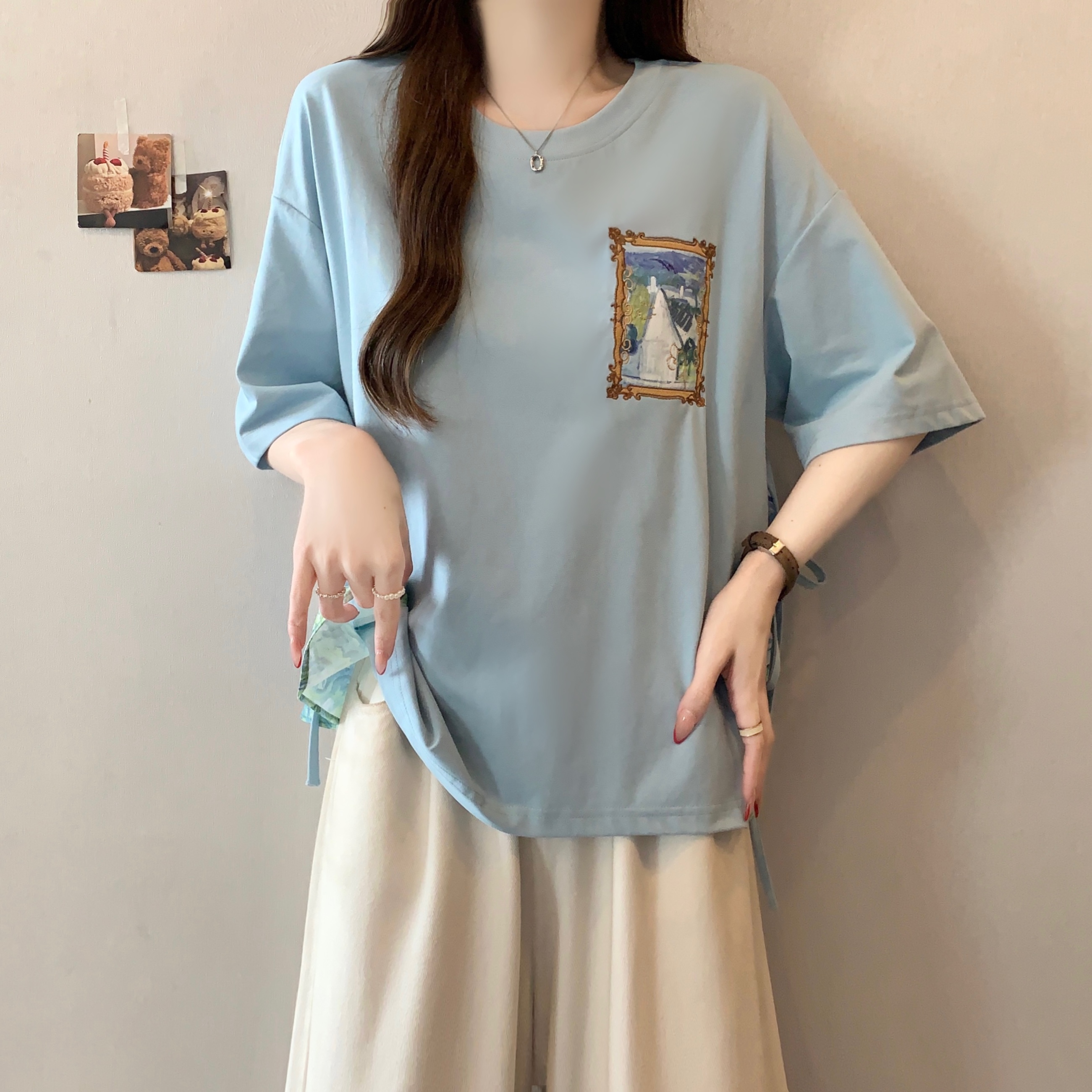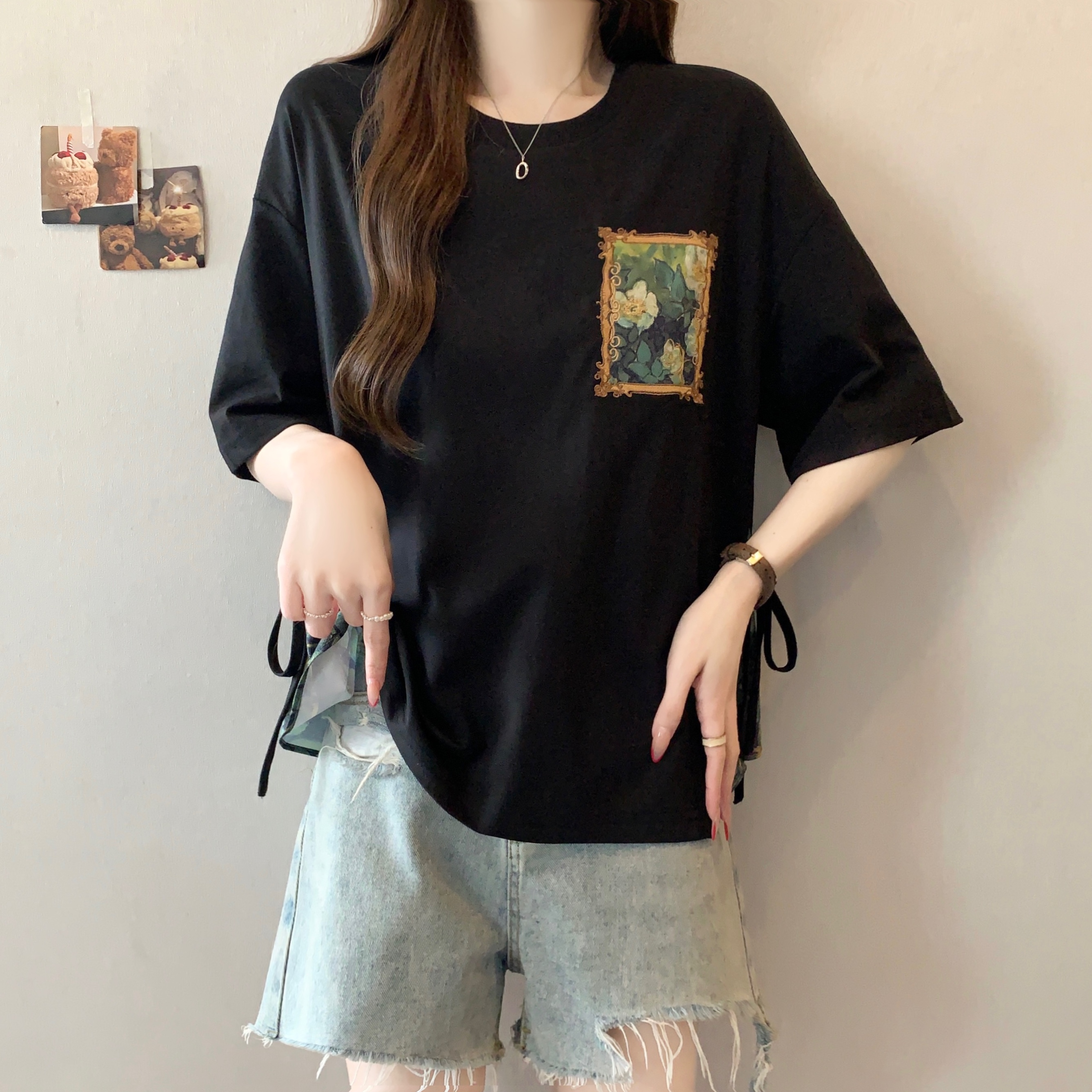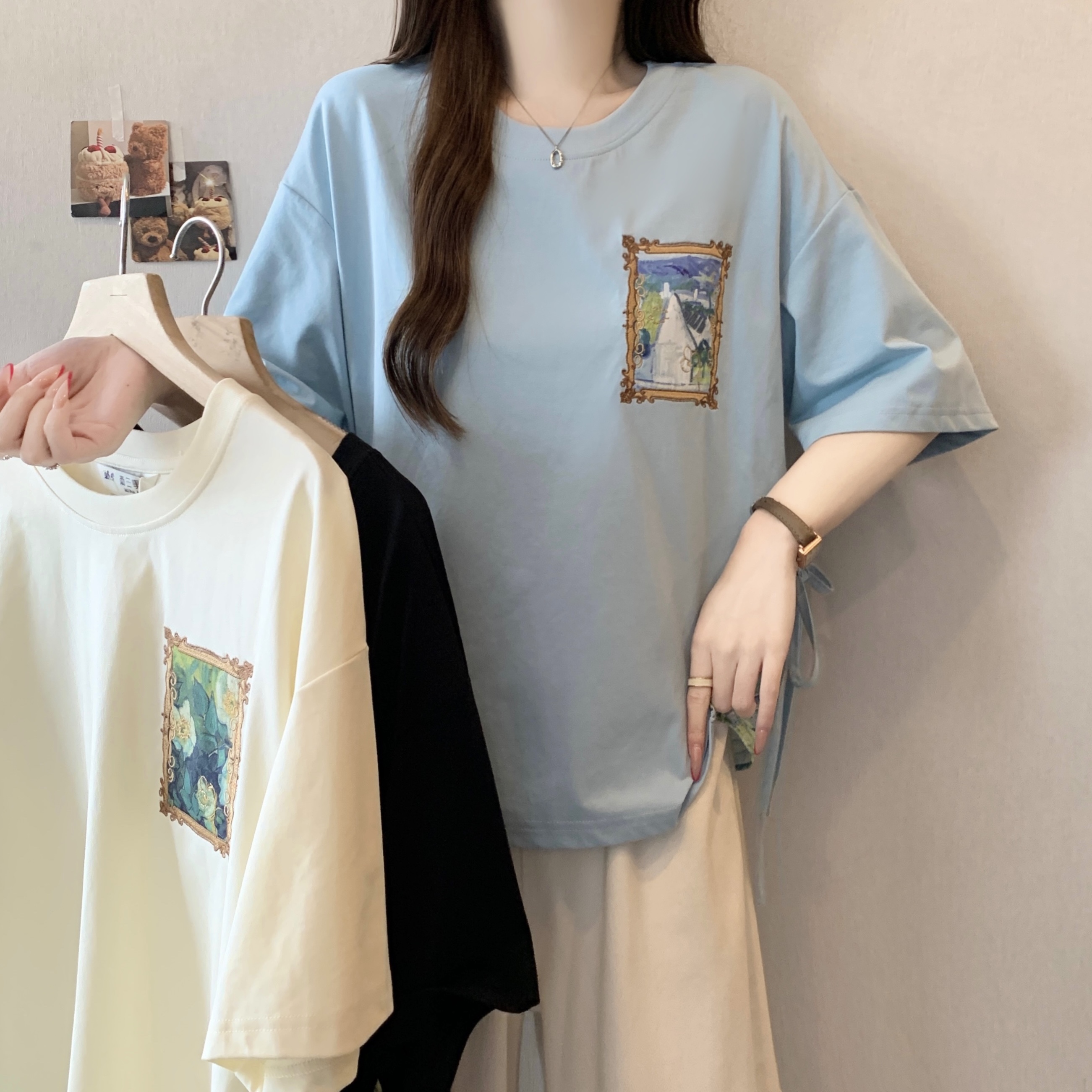 RY2094# 胖MM2026夏季新款假两件圆领短袖宽松设计感t恤女上衣