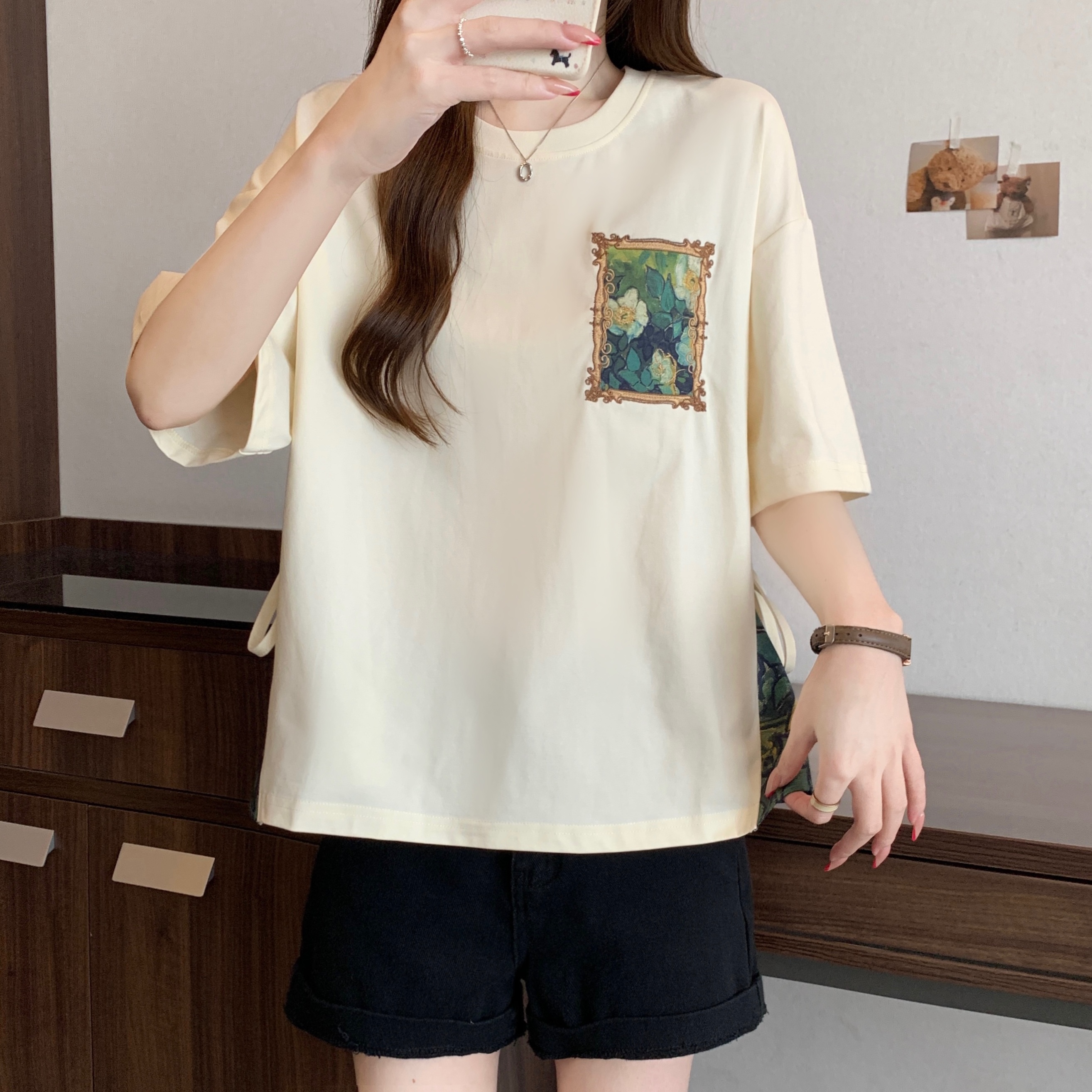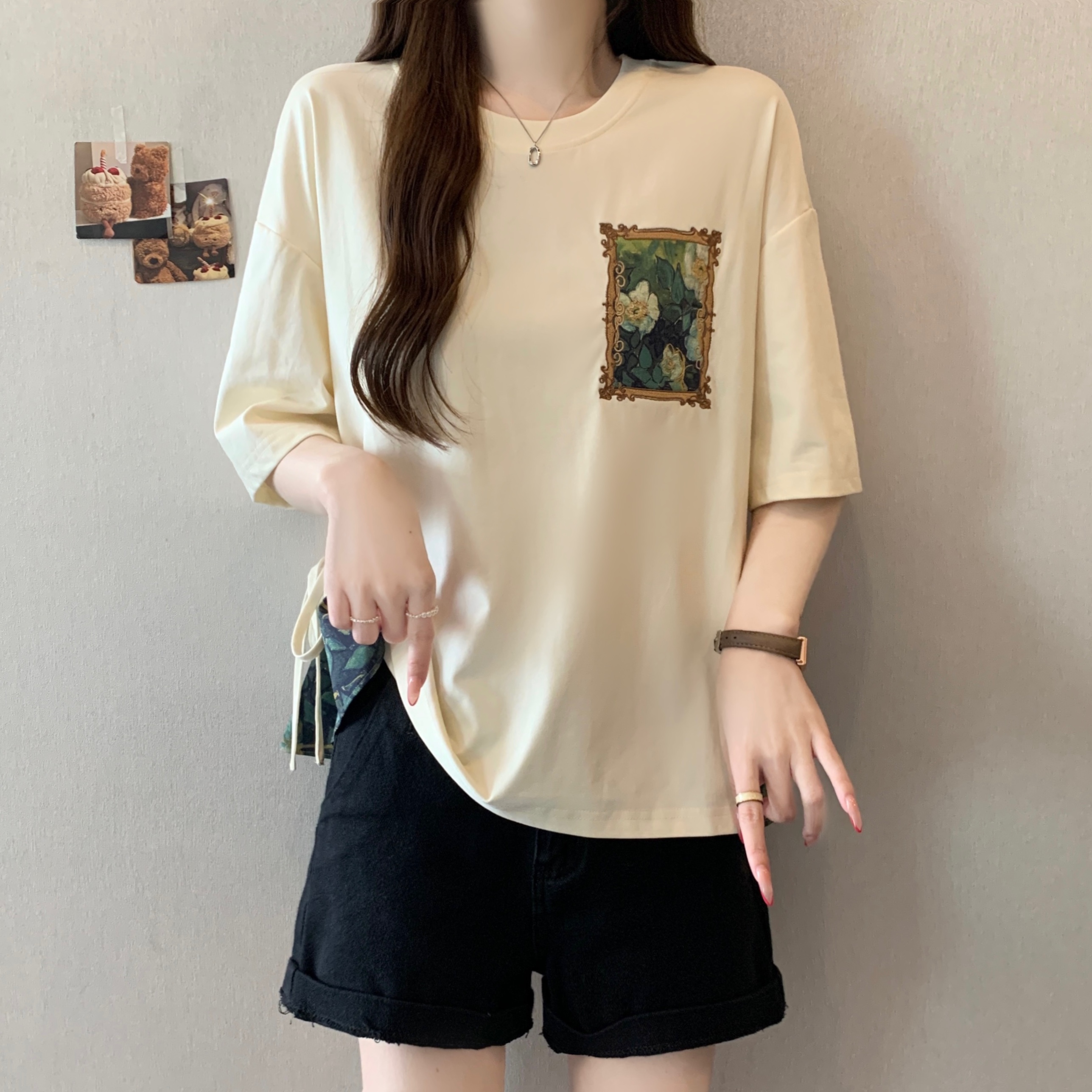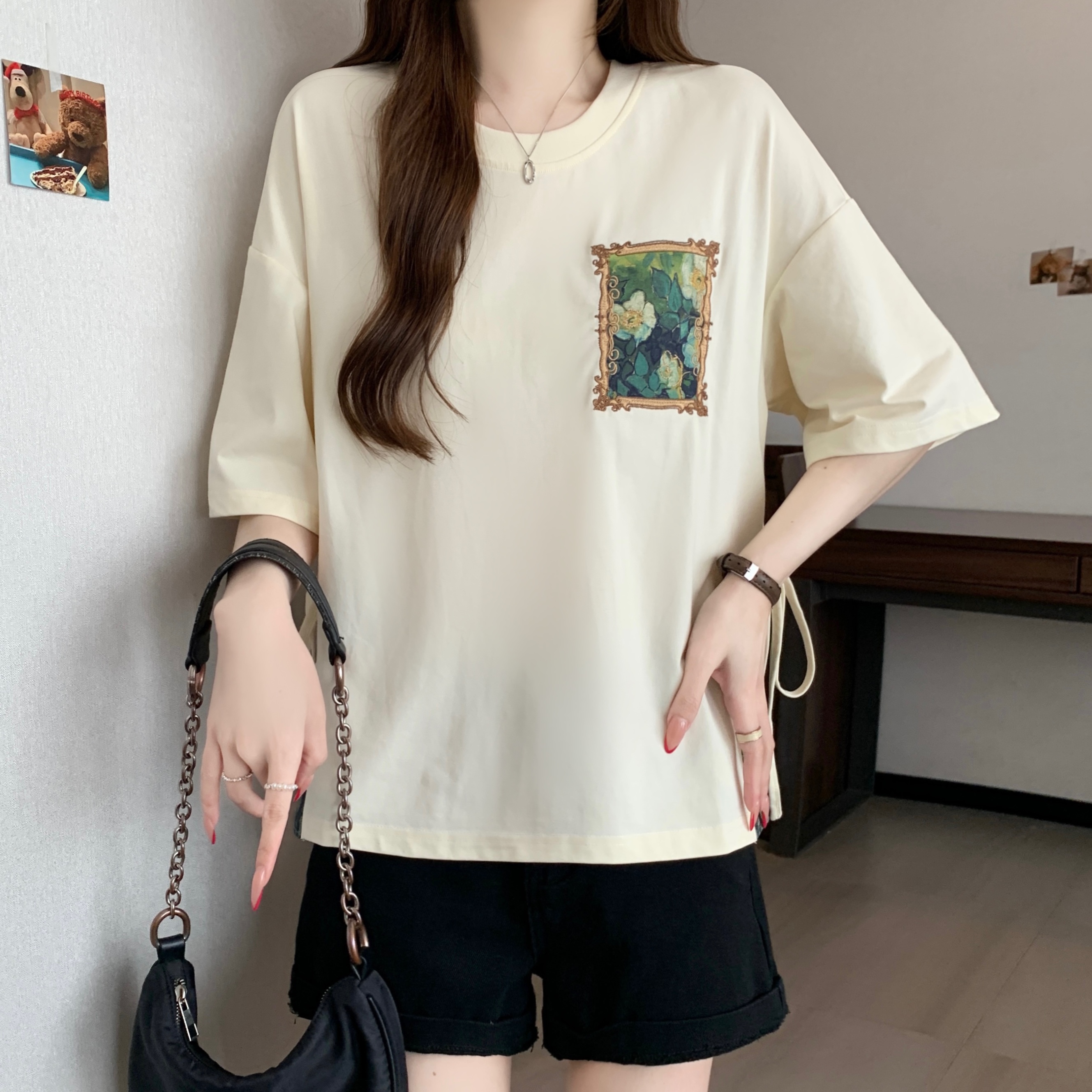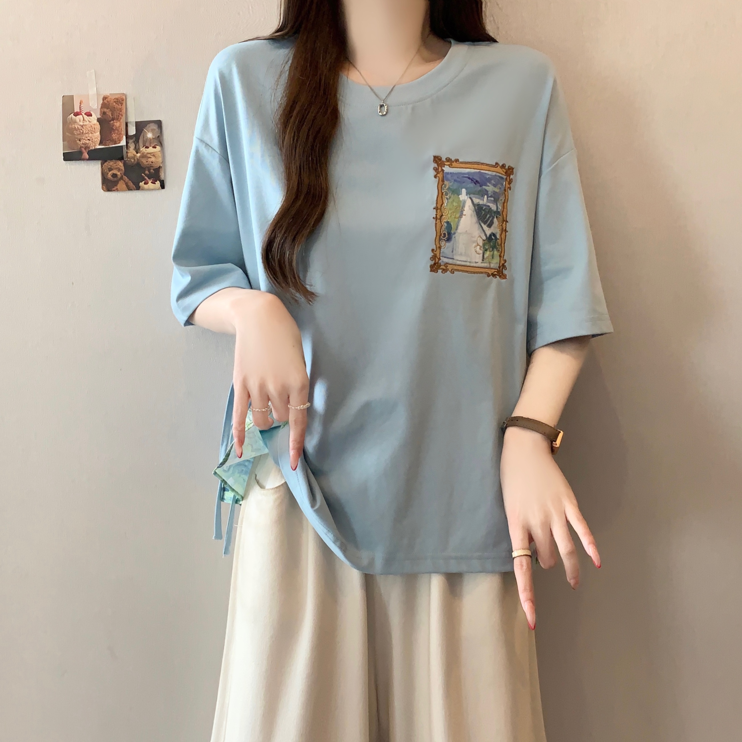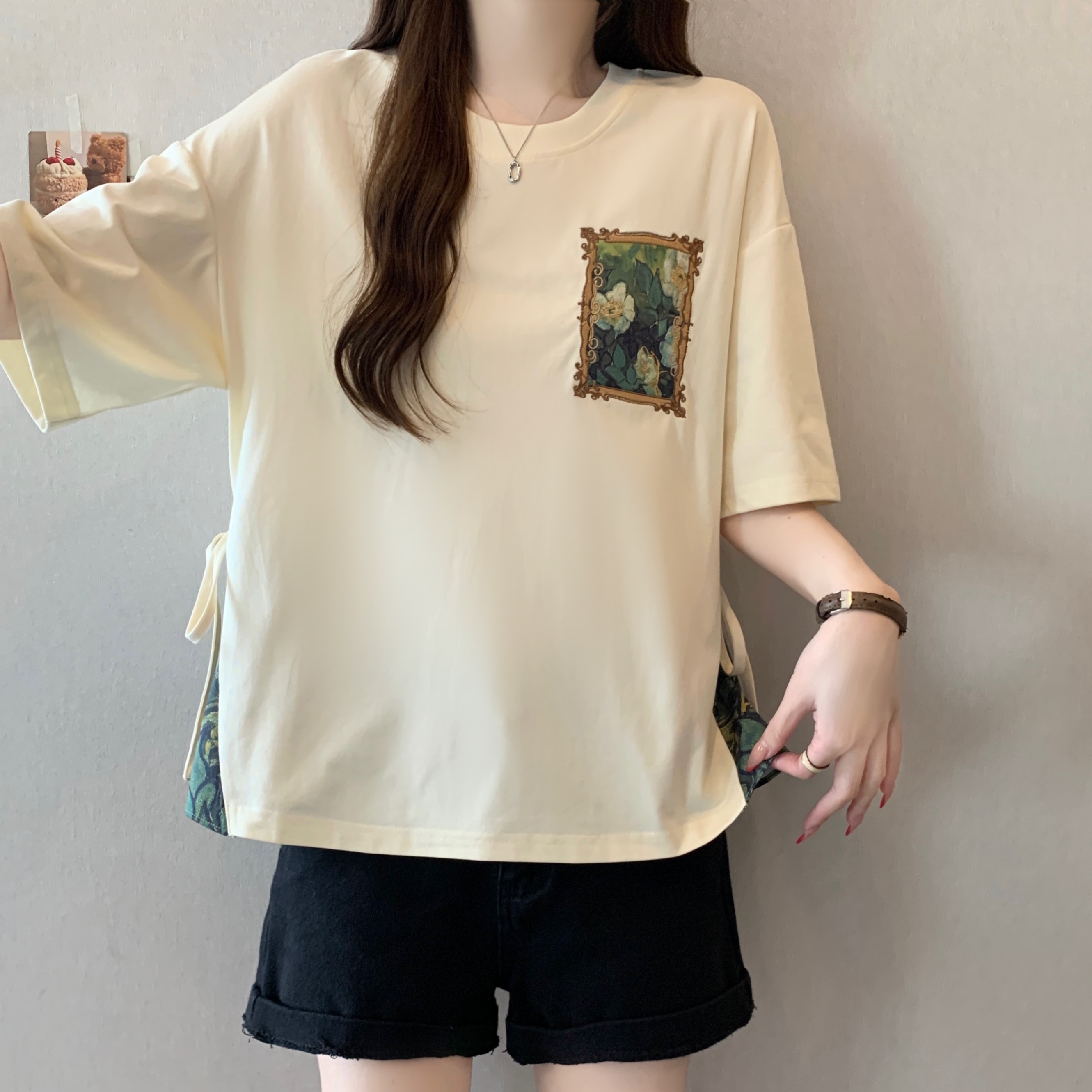 RY2094# 胖MM2026夏季新款假两件圆领短袖宽松设计感t恤女上衣