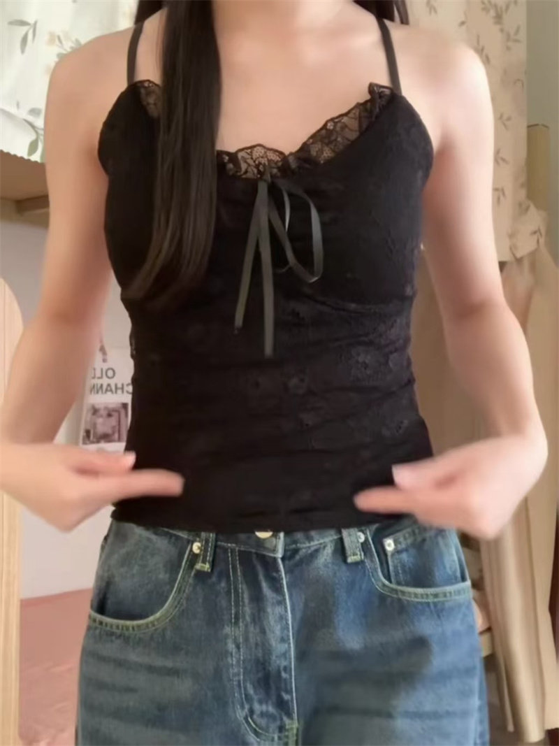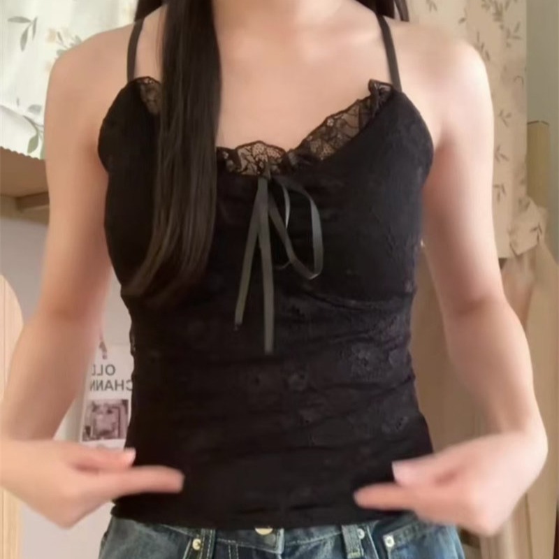 RY2132# 独特精致蕾丝纯欲风带胸垫吊带背心新款内搭打底小上衣