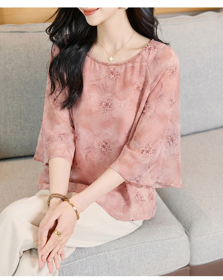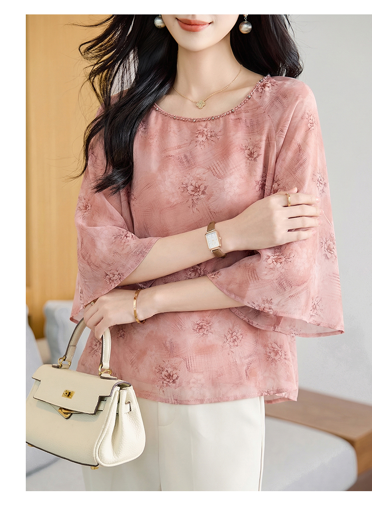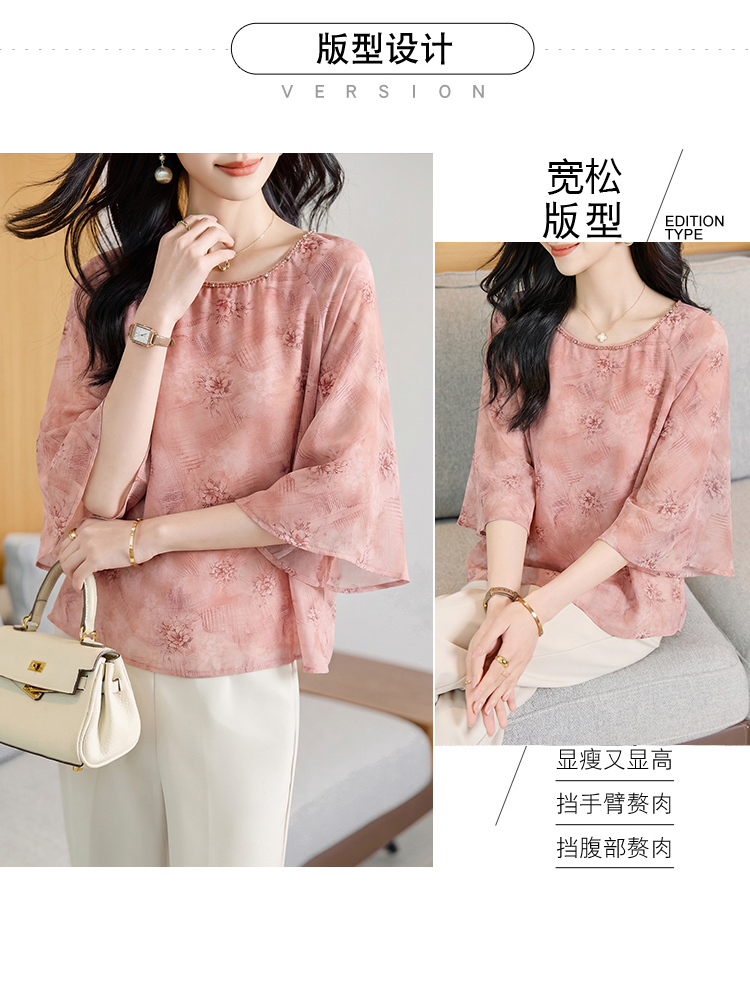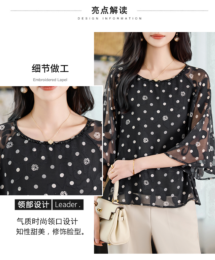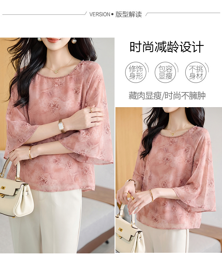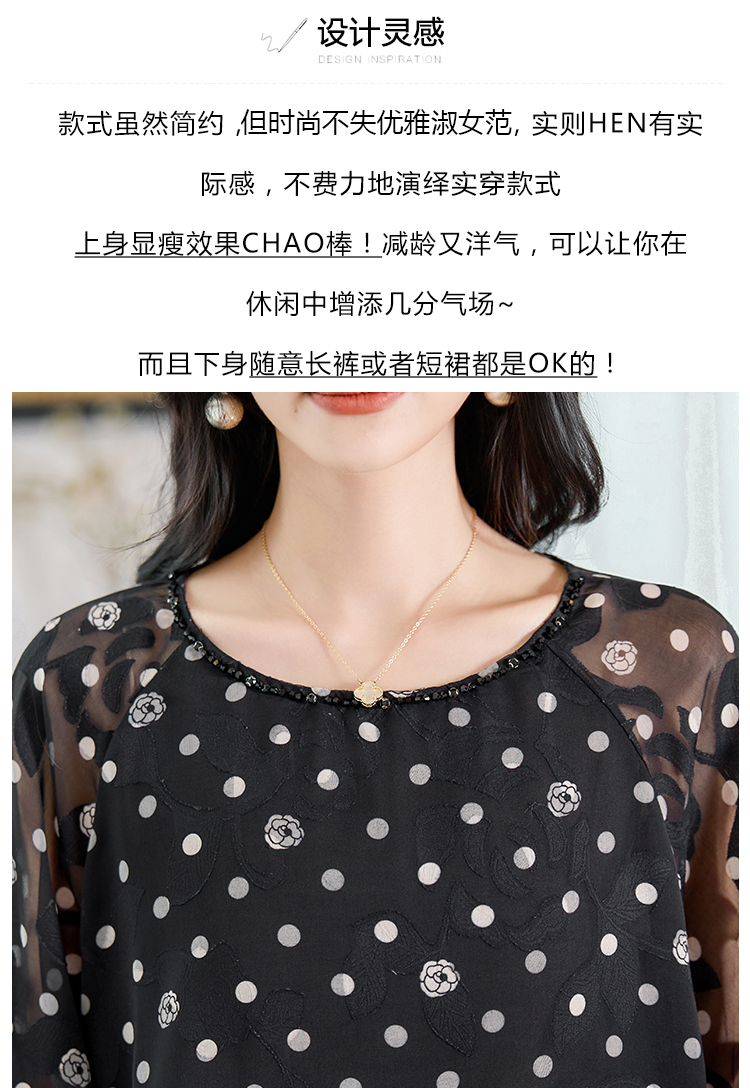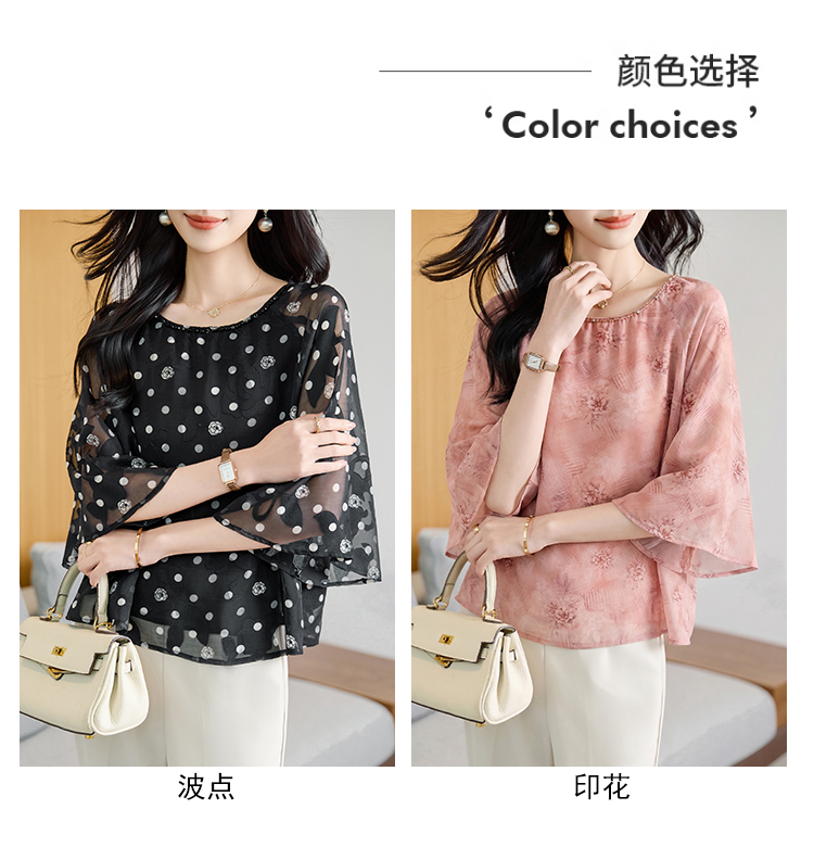 RY2138# 圆领重工中袖雪纺女2026春夏季新款简约百搭宽松显瘦休闲减龄上衣