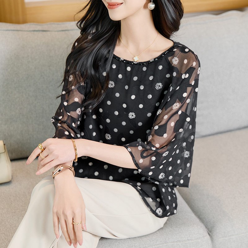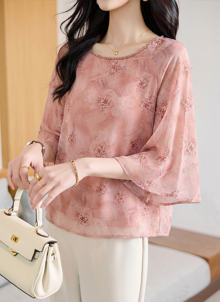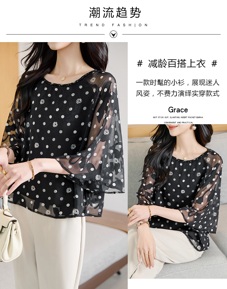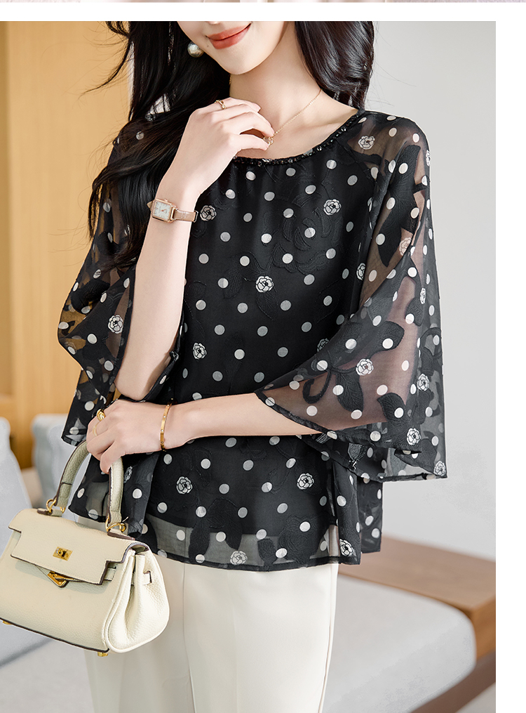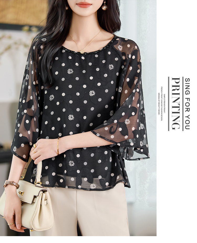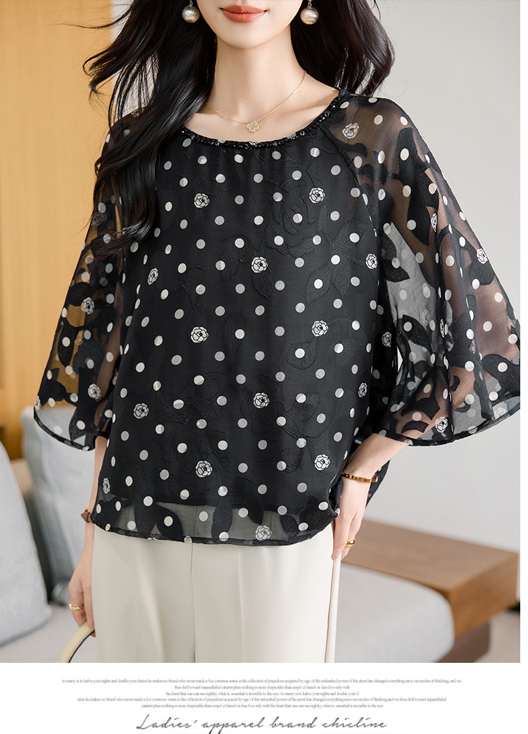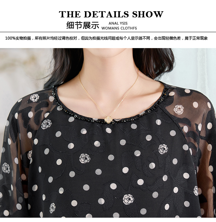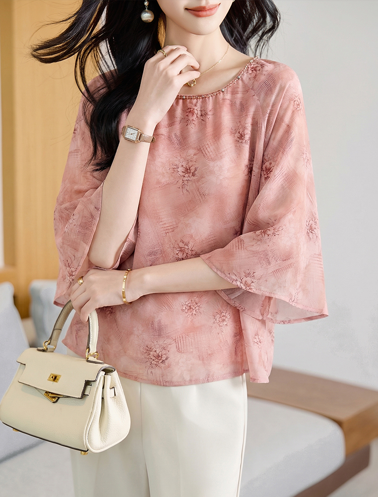 RY2138# 圆领重工中袖雪纺女2026春夏季新款简约百搭宽松显瘦休闲减龄上衣