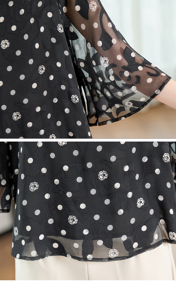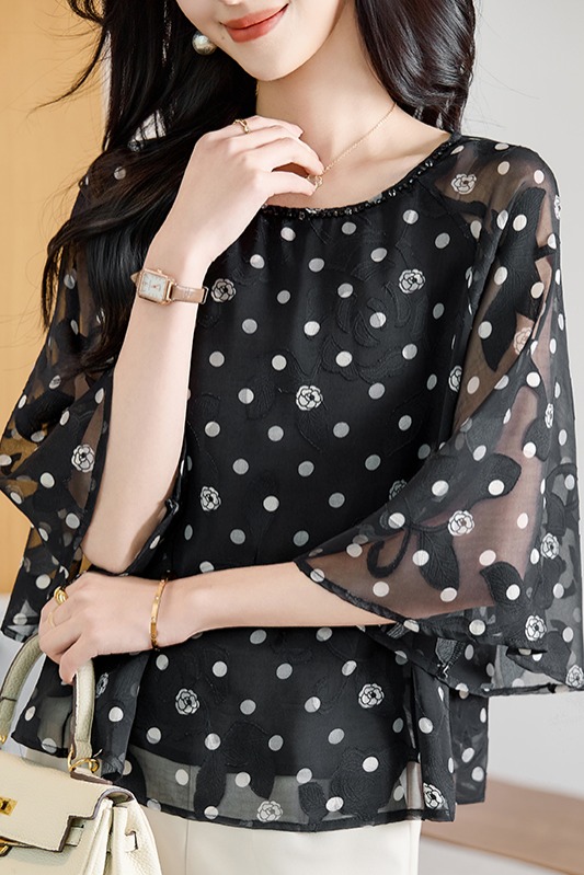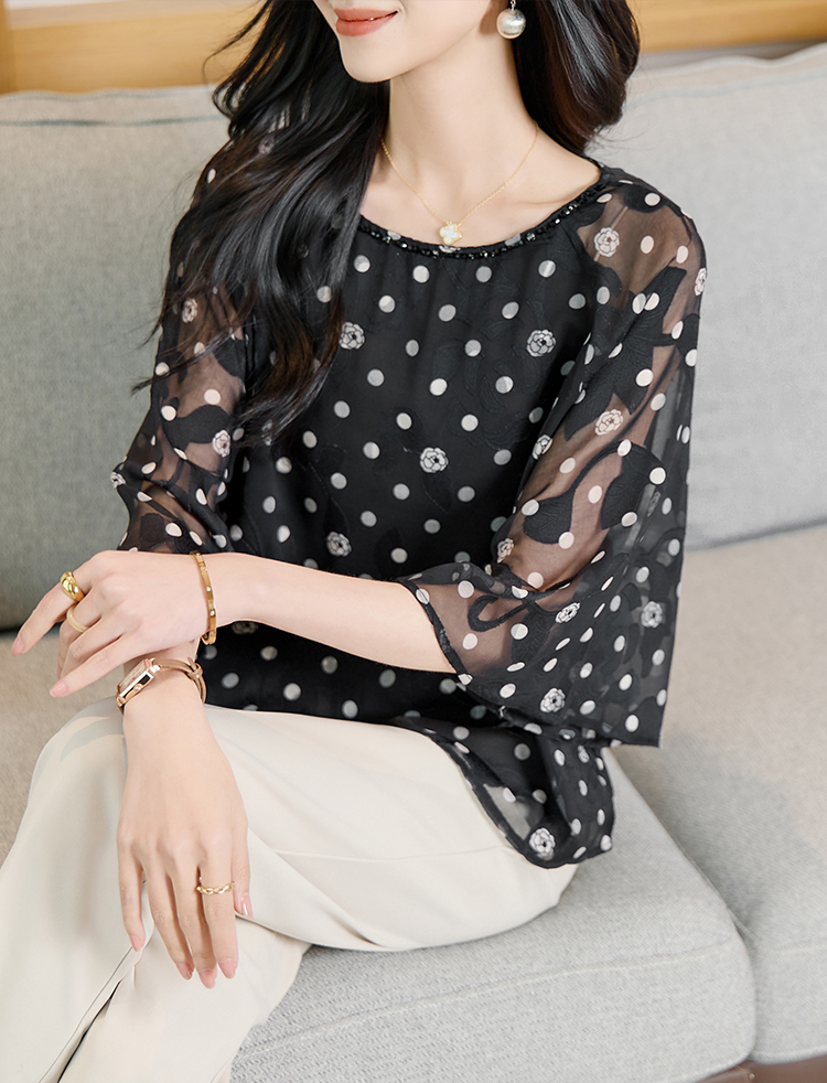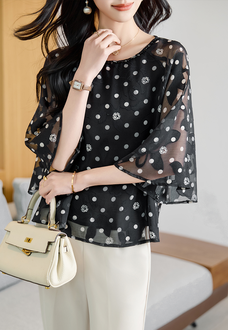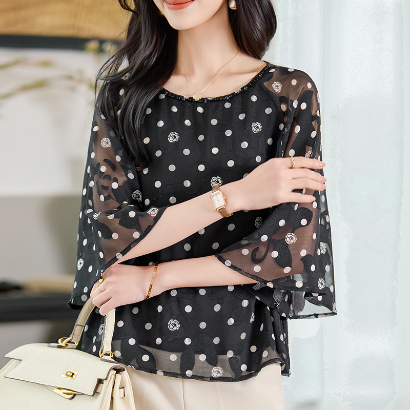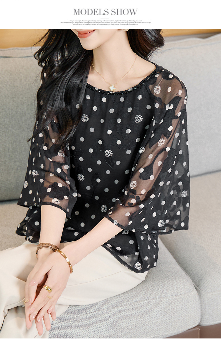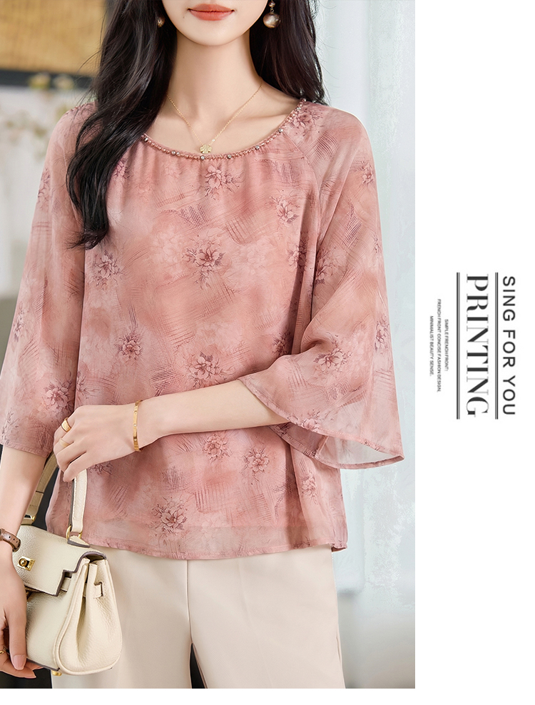 RY2138# 圆领重工中袖雪纺女2026春夏季新款简约百搭宽松显瘦休闲减龄上衣