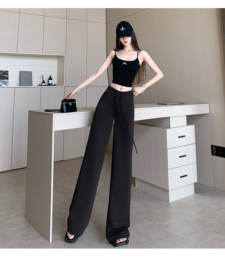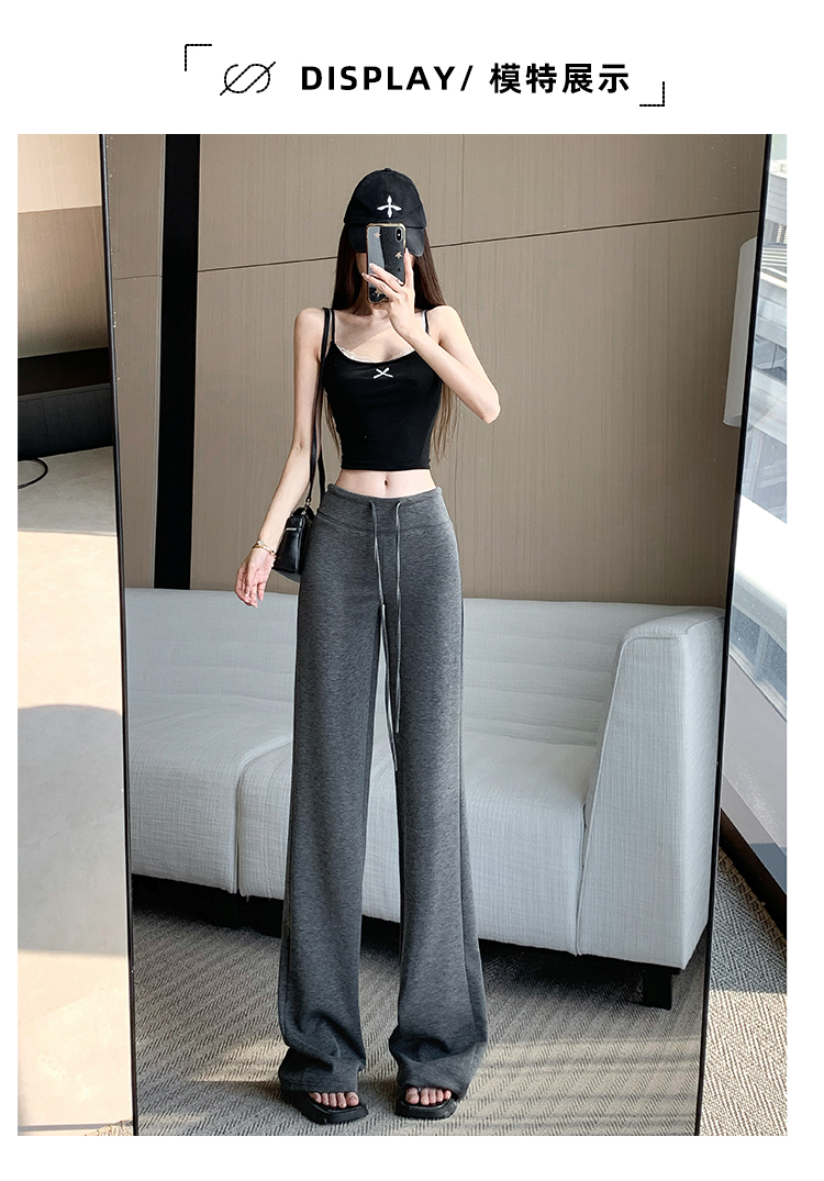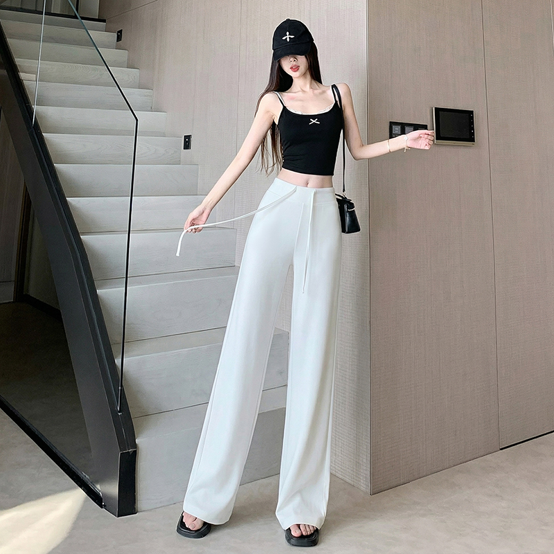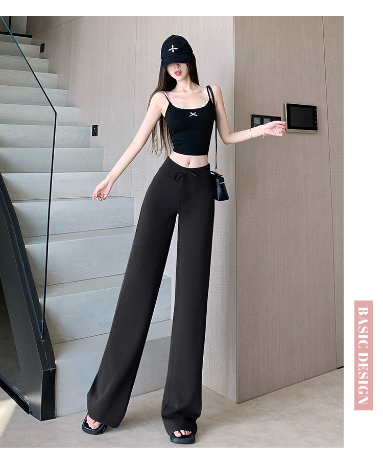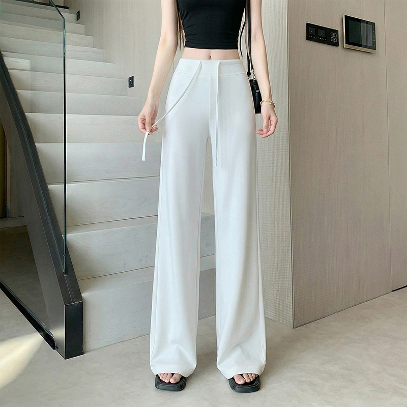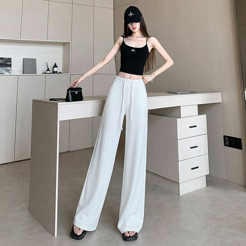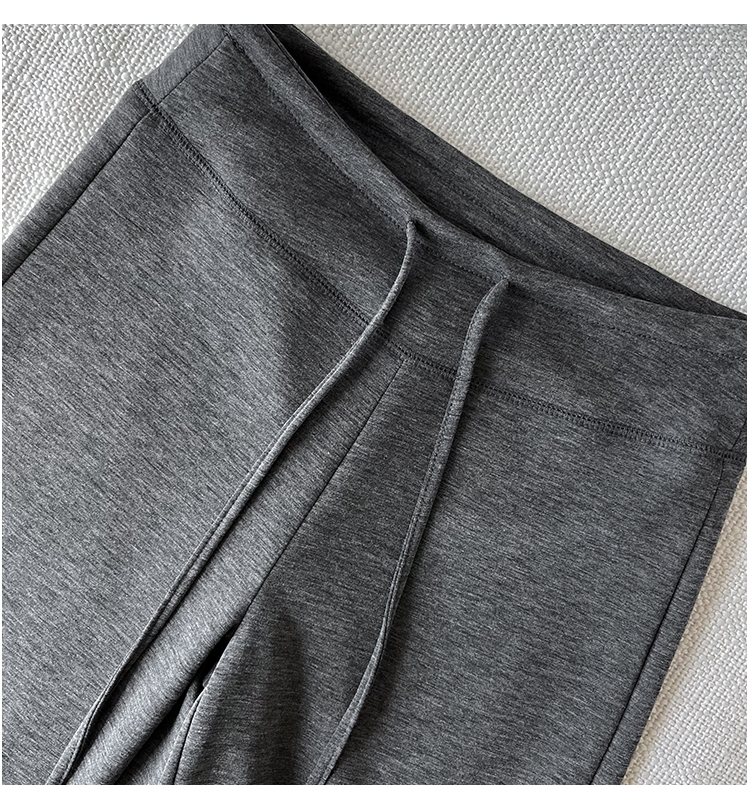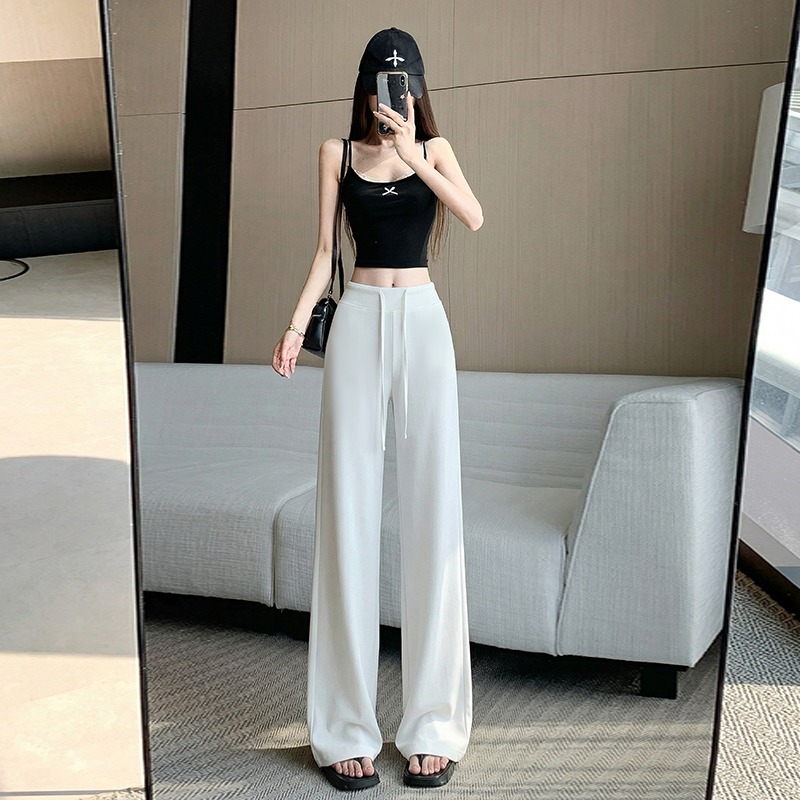 RY2841# 凉凉裤冰丝显高显瘦拼接微喇阔腿裤薄款高腰垂感休闲直筒拖地裤
