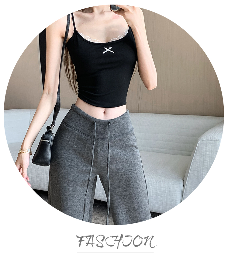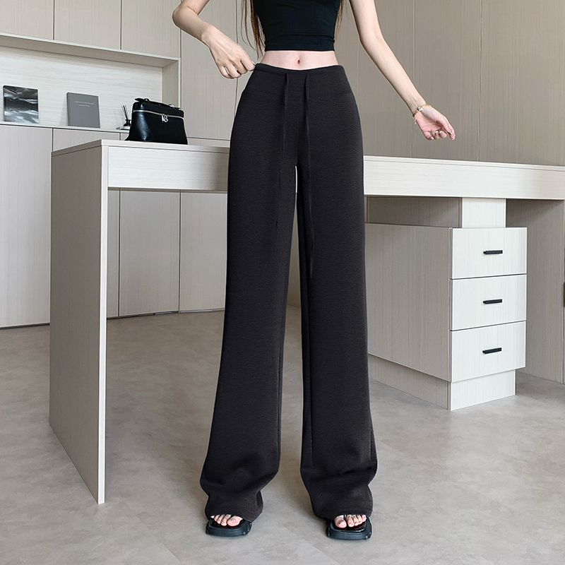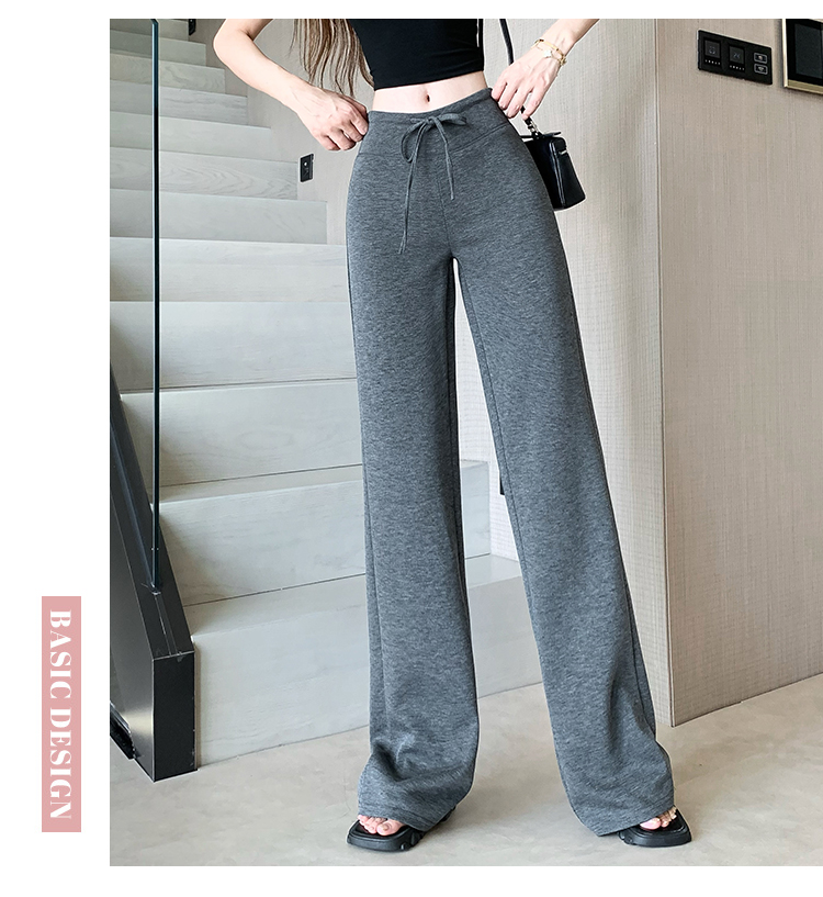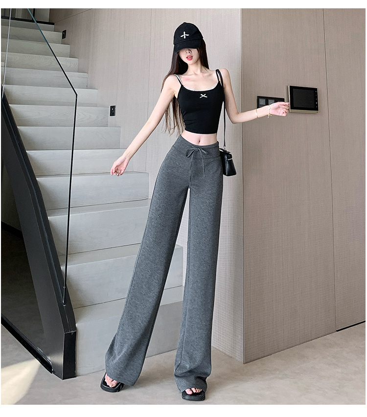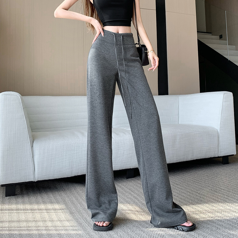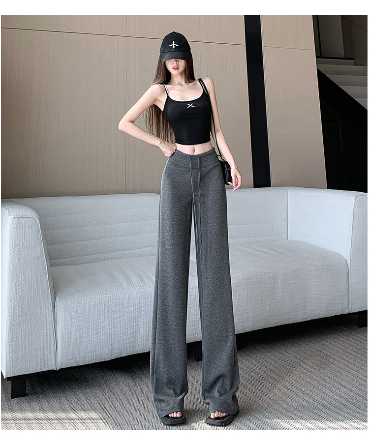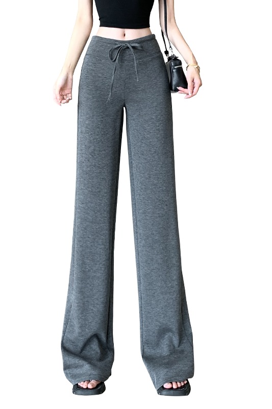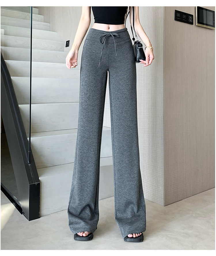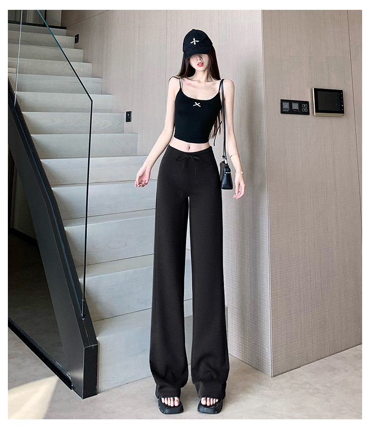 RY2841# 凉凉裤冰丝显高显瘦拼接微喇阔腿裤薄款高腰垂感休闲直筒拖地裤