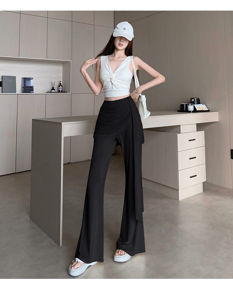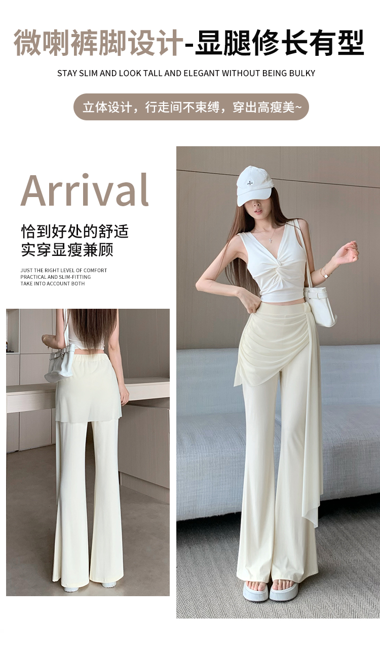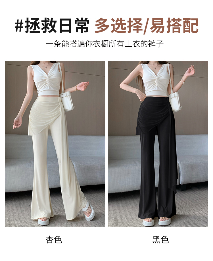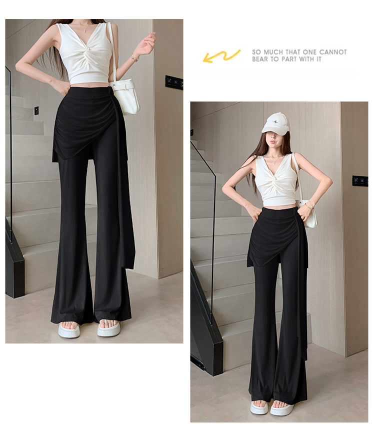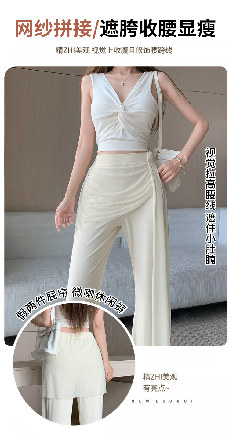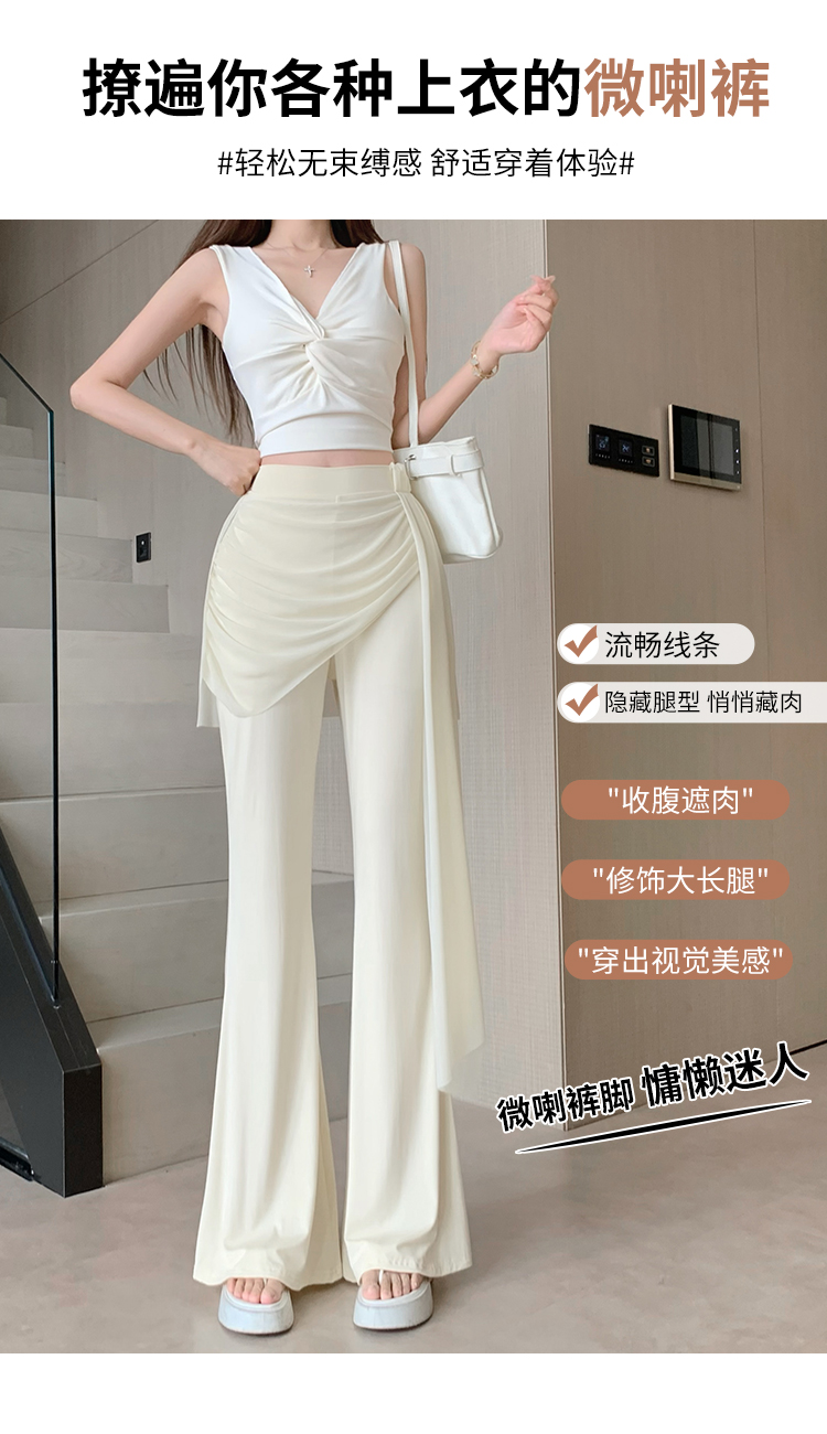 RY2842# 赵露思同款假两件系带微喇裤女春夏高腰修身显瘦休闲屁帘喇叭裤