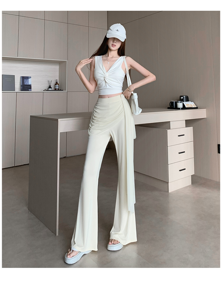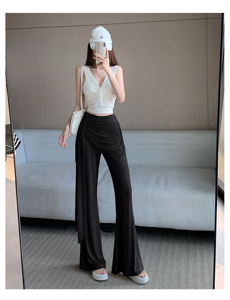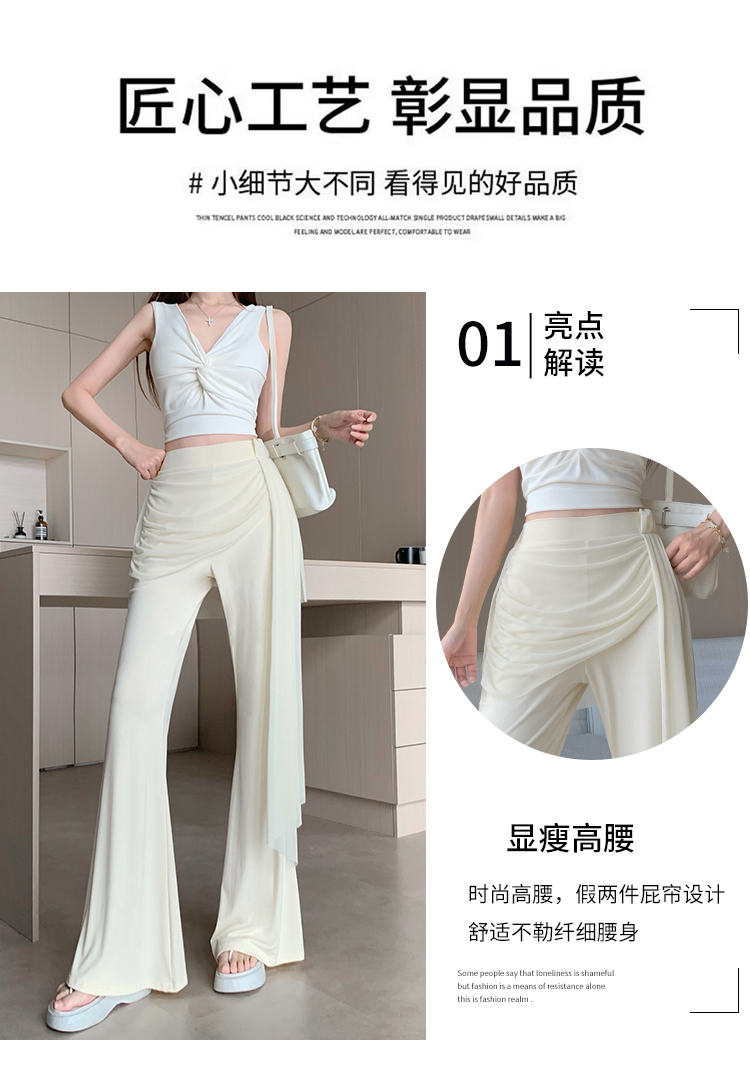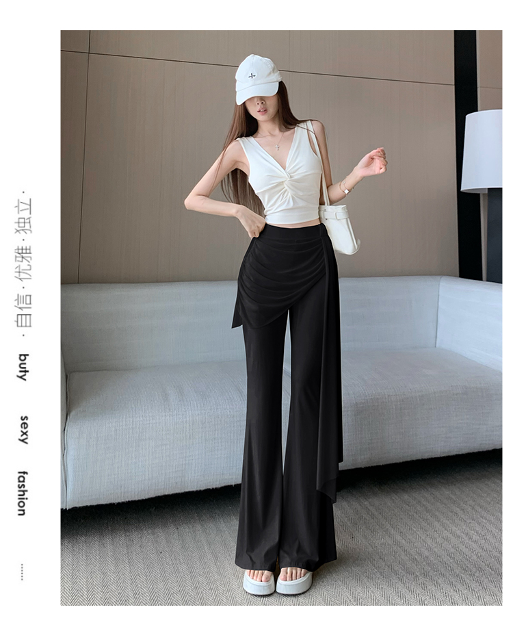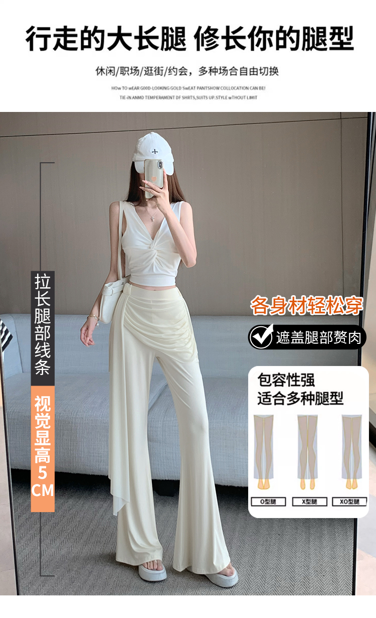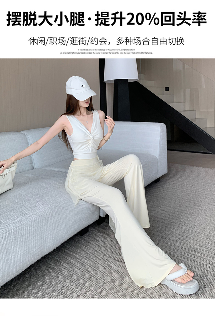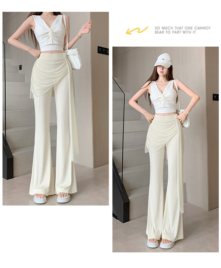 RY2842# 赵露思同款假两件系带微喇裤女春夏高腰修身显瘦休闲屁帘喇叭裤