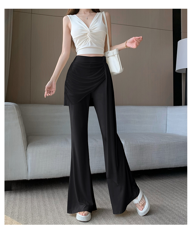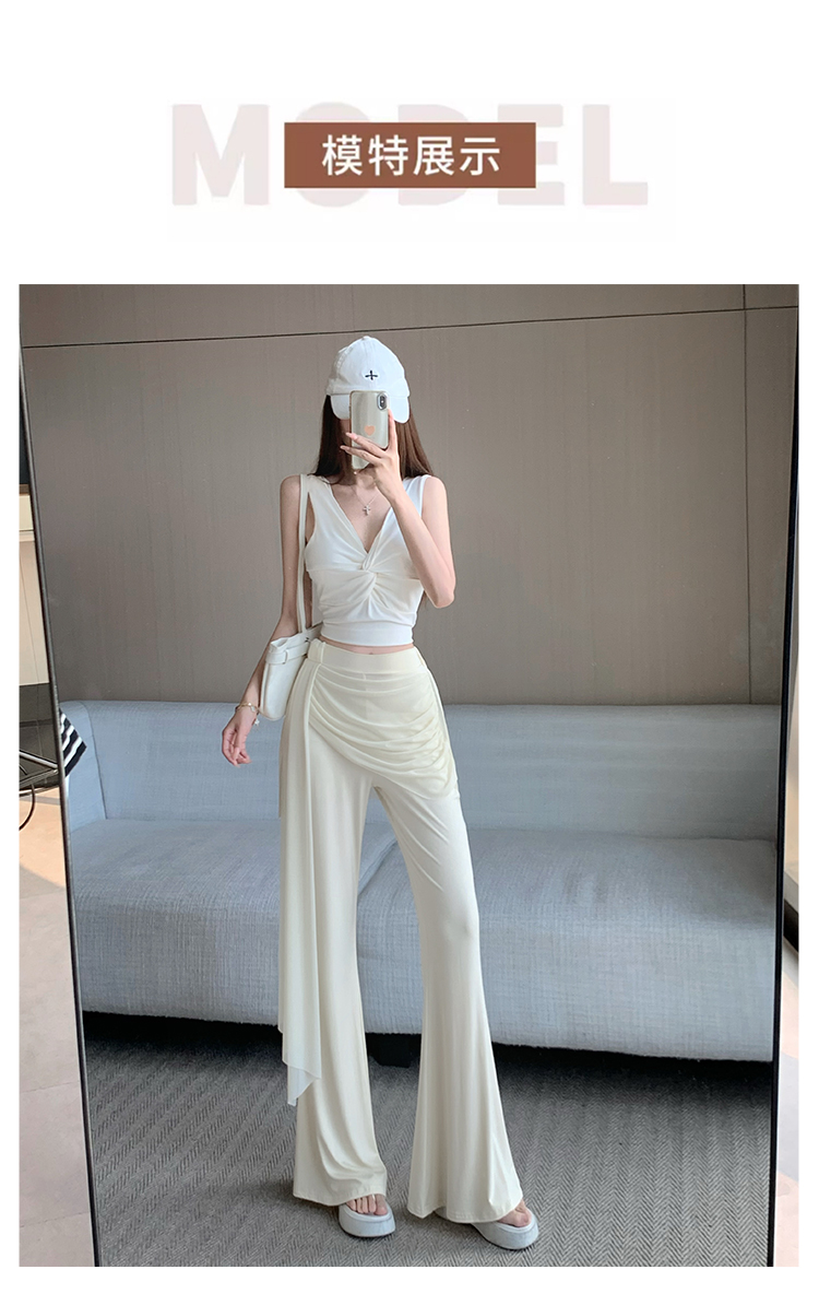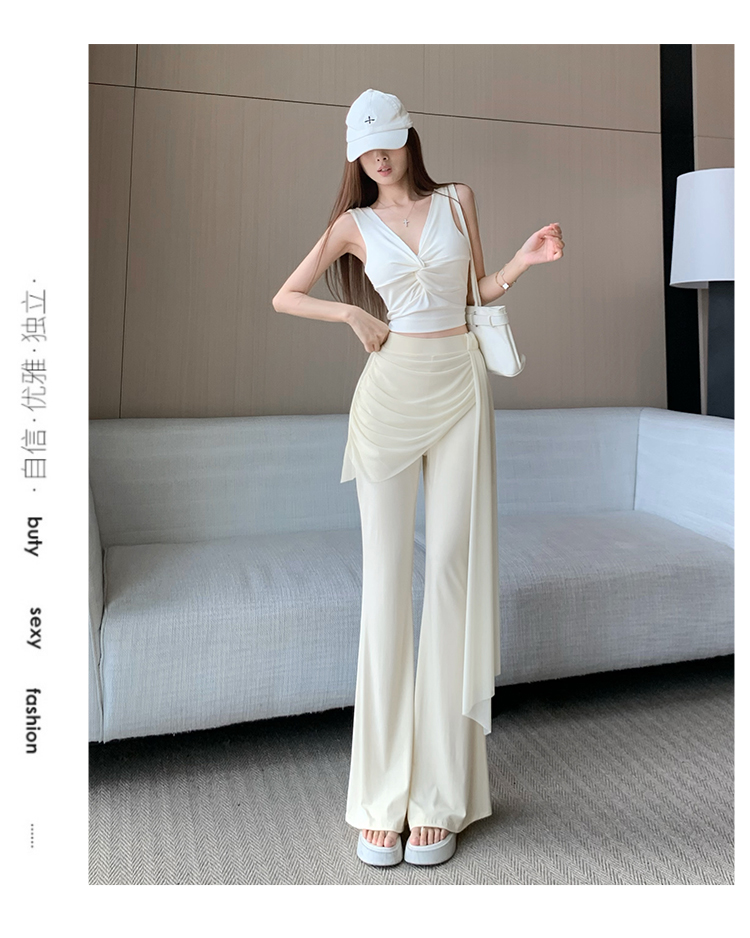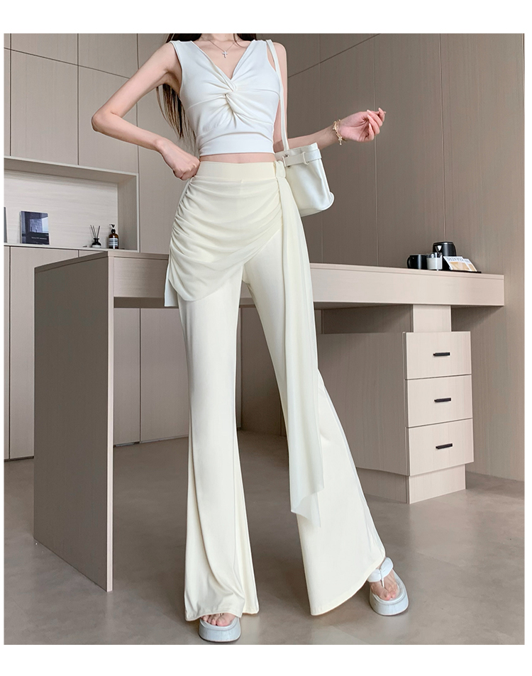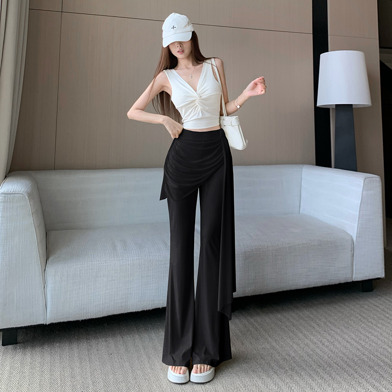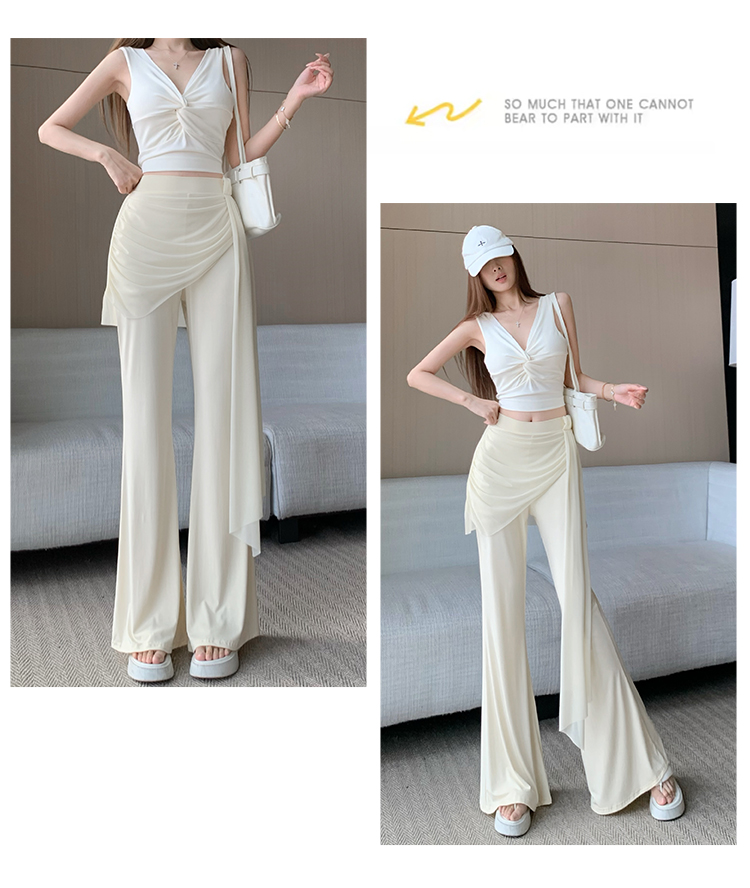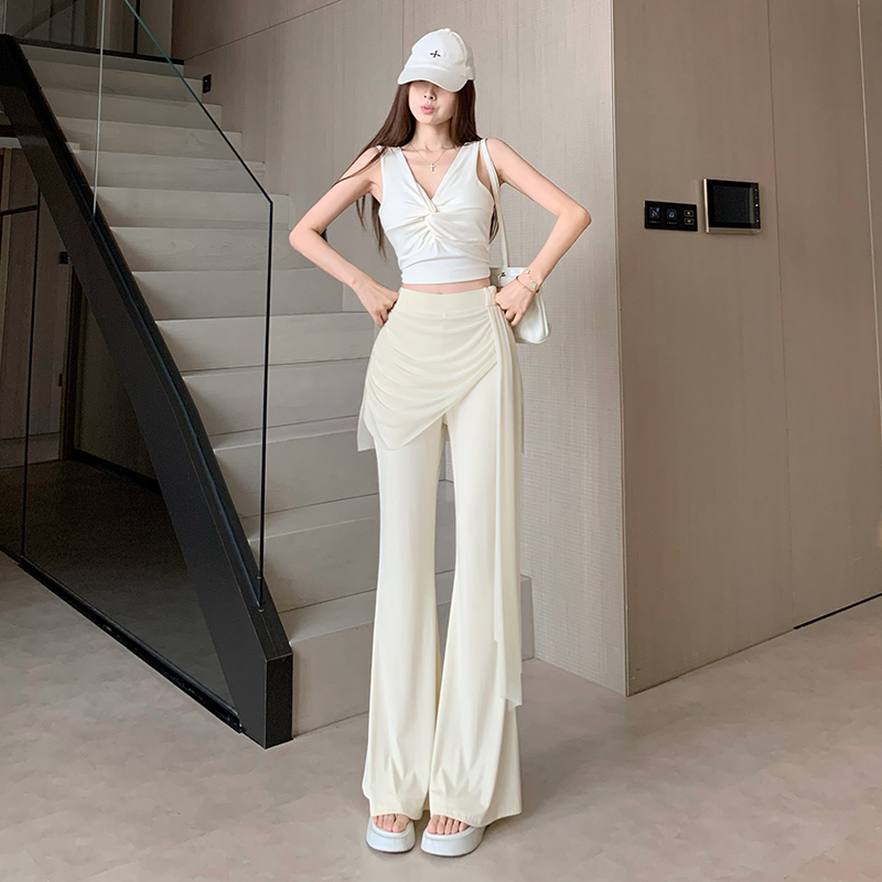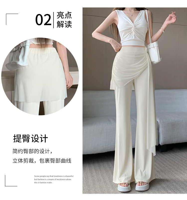 RY2842# 赵露思同款假两件系带微喇裤女春夏高腰修身显瘦休闲屁帘喇叭裤