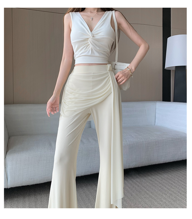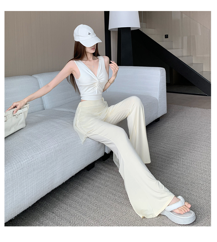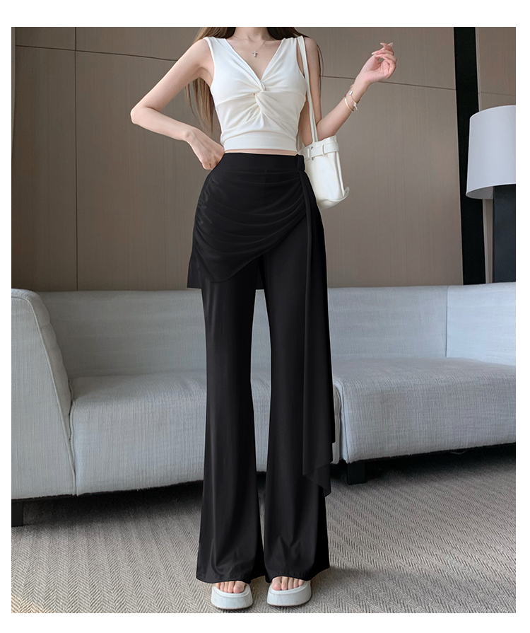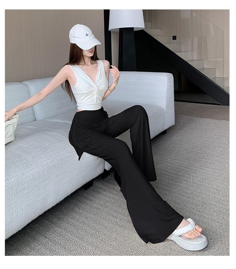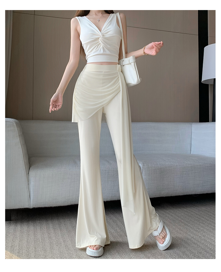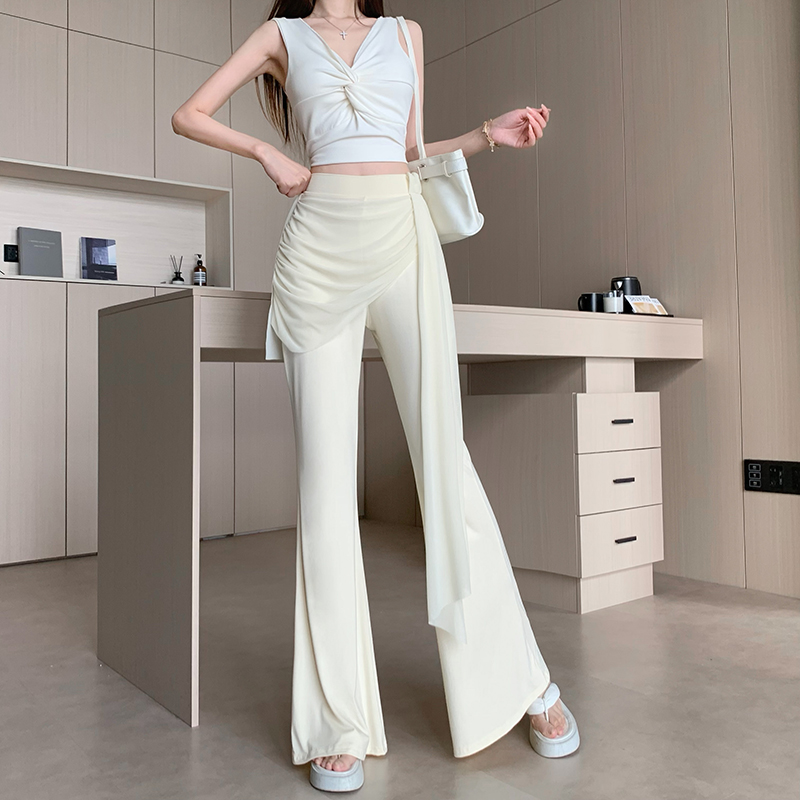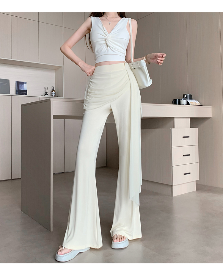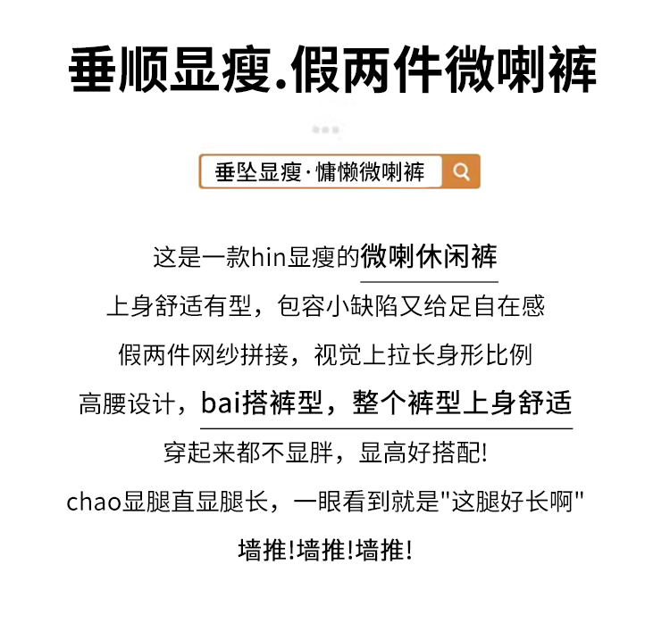 RY2842# 赵露思同款假两件系带微喇裤女春夏高腰修身显瘦休闲屁帘喇叭裤