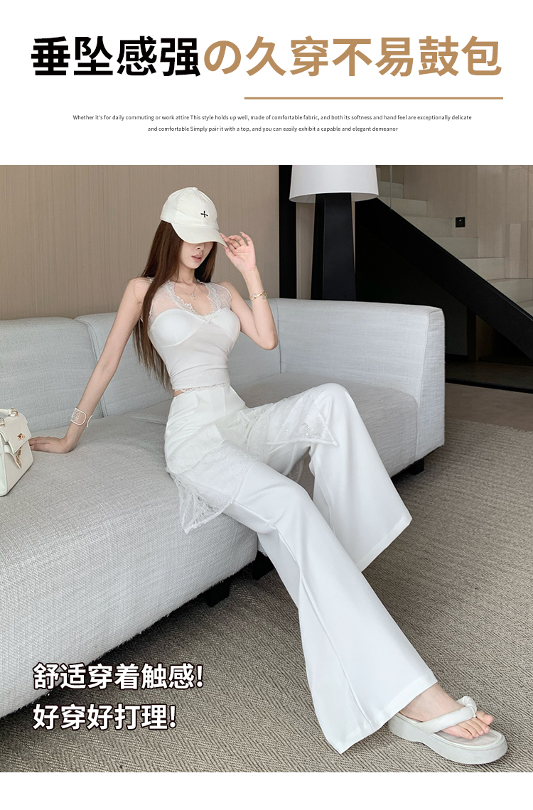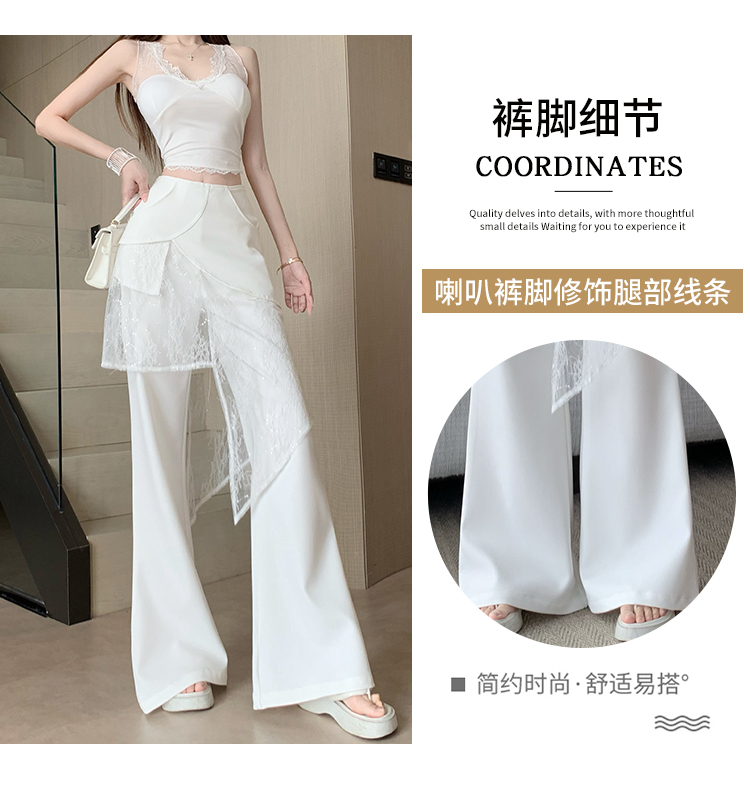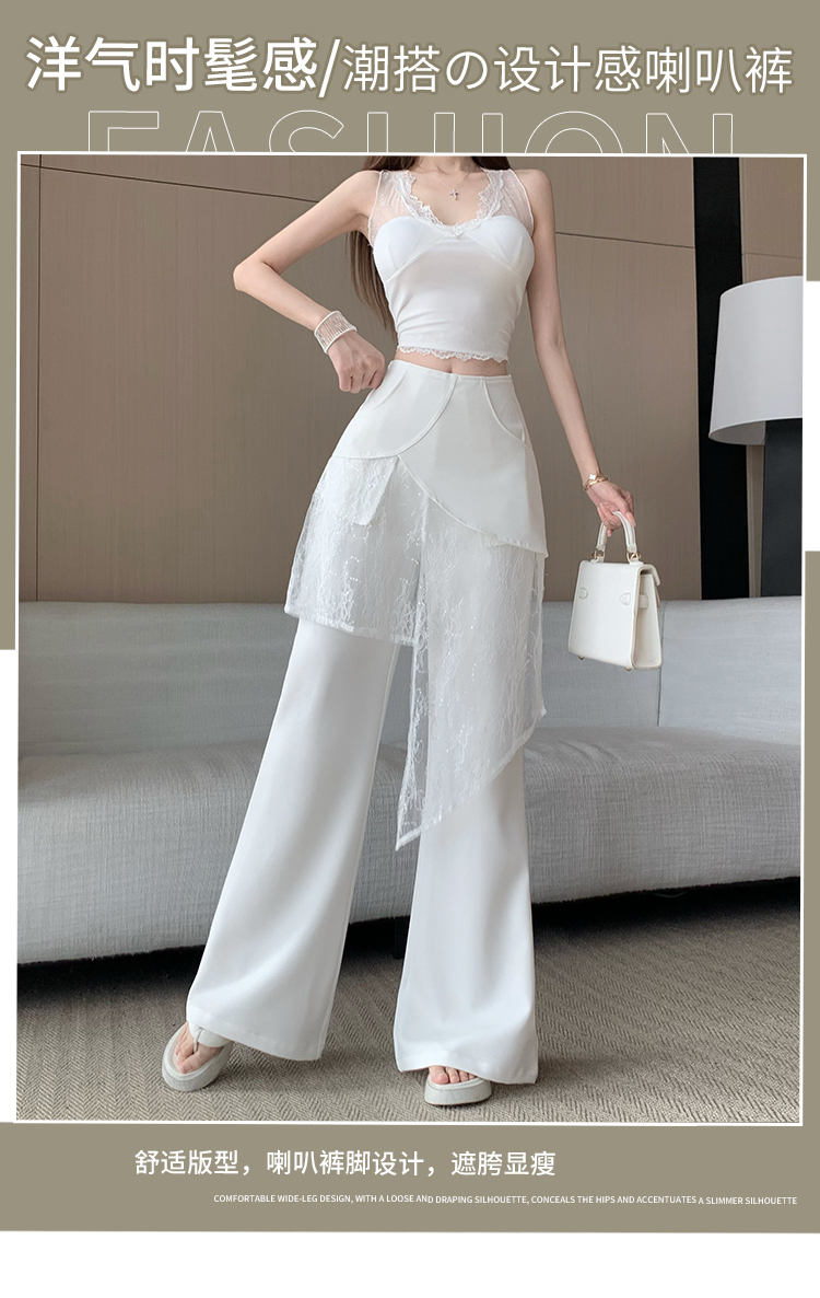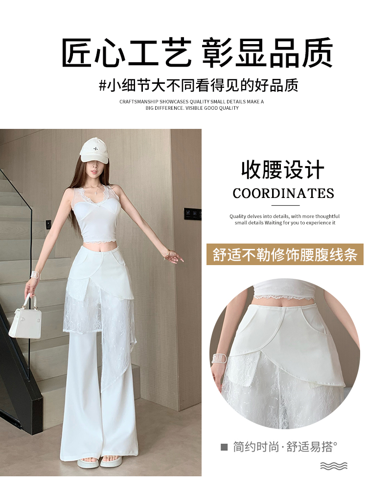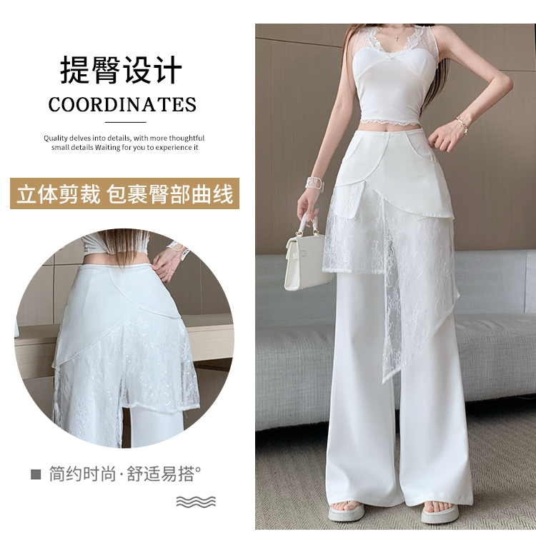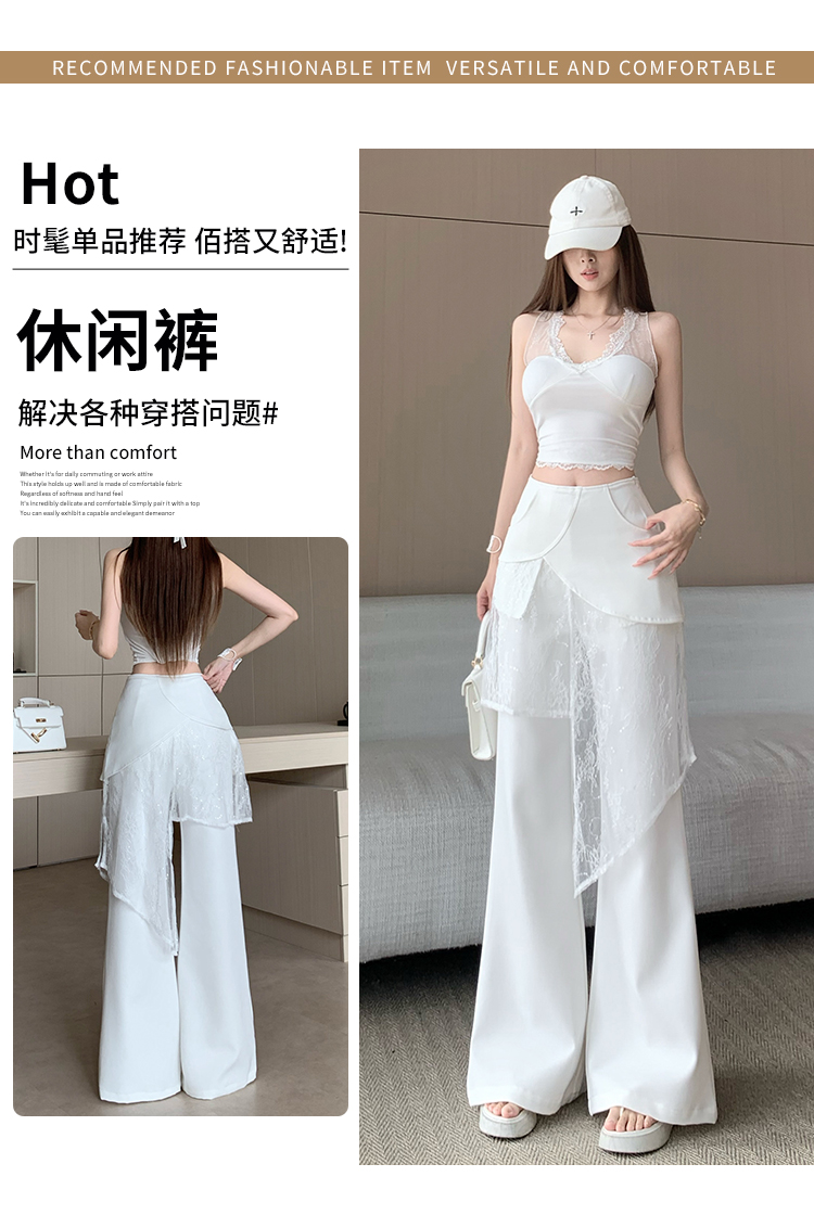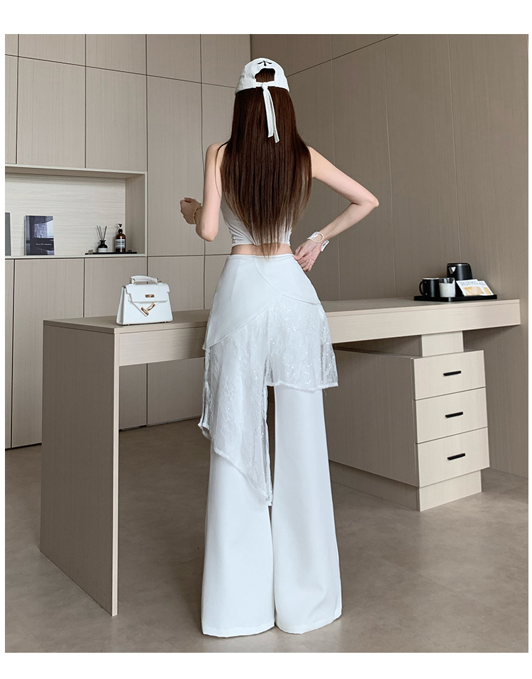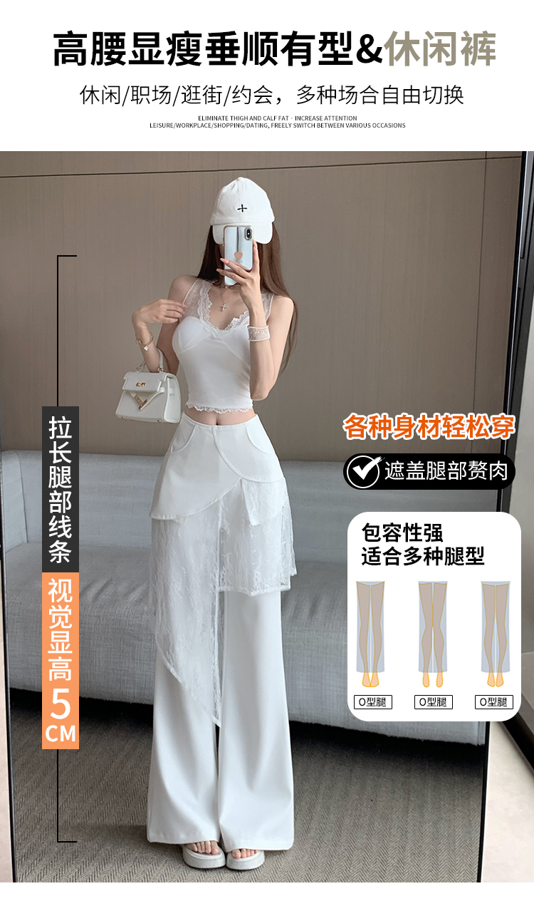 RY2847# 白色叠穿屁帘阔腿裤女夏季薄款假两件拼接高腰垂感直筒拖地休闲裤