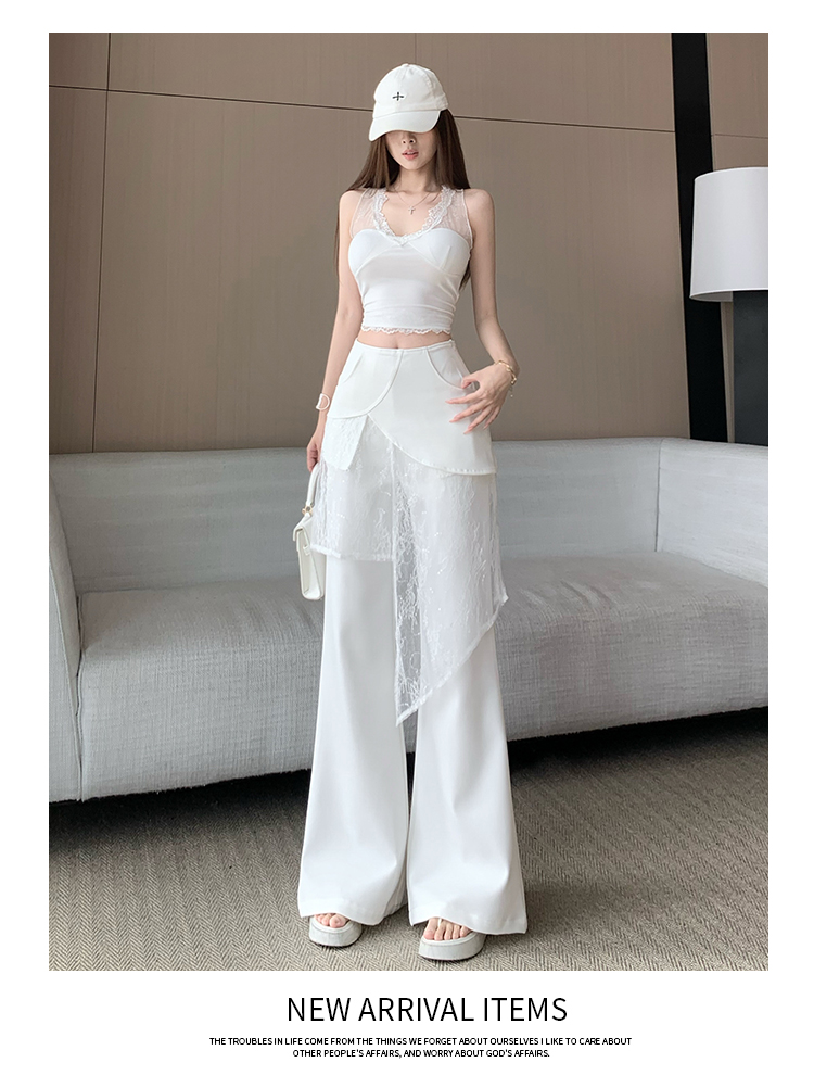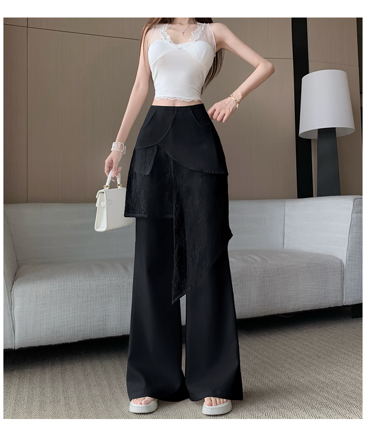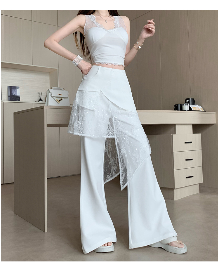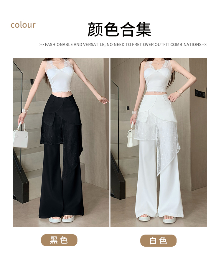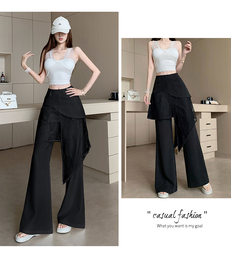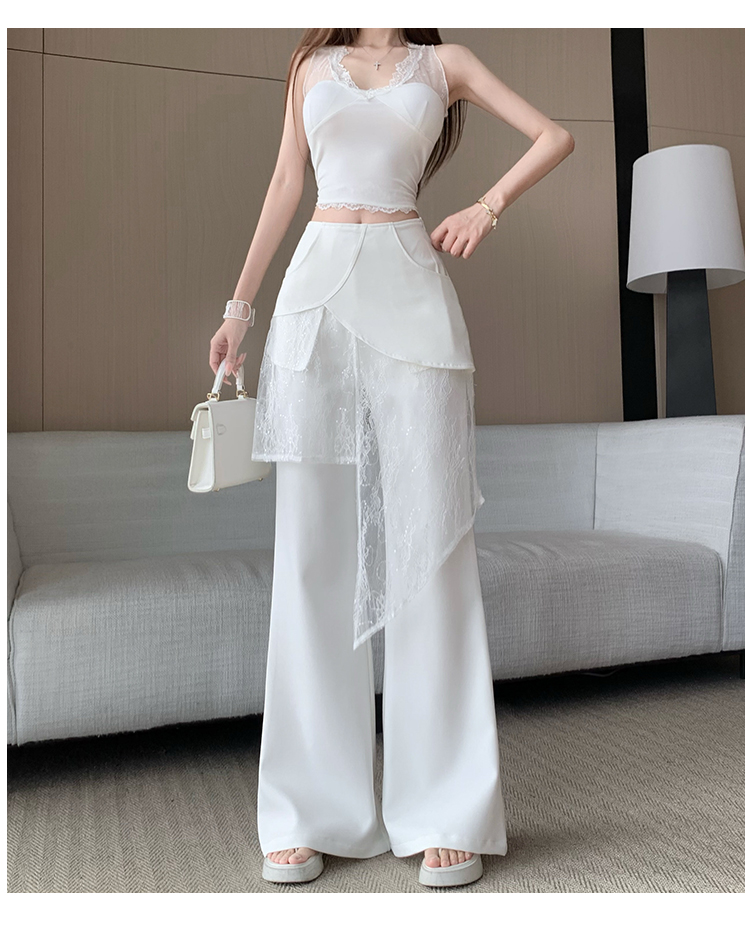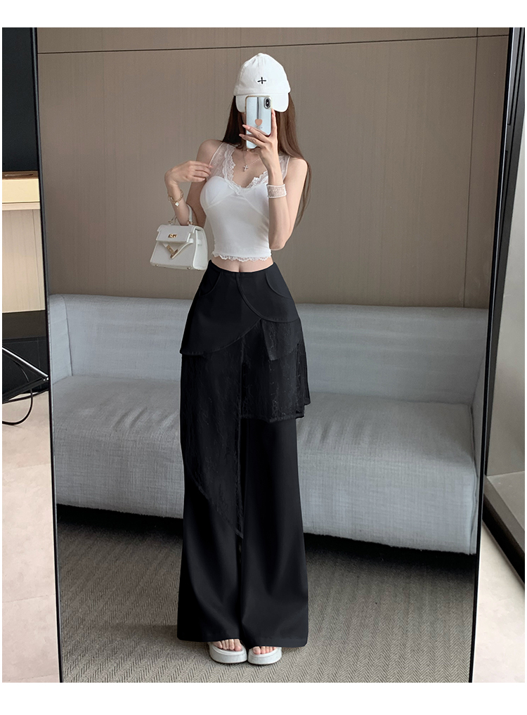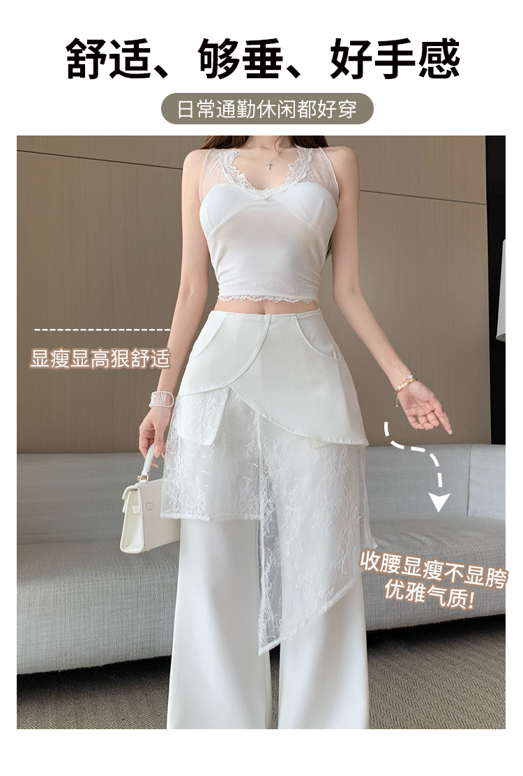 RY2847# 白色叠穿屁帘阔腿裤女夏季薄款假两件拼接高腰垂感直筒拖地休闲裤