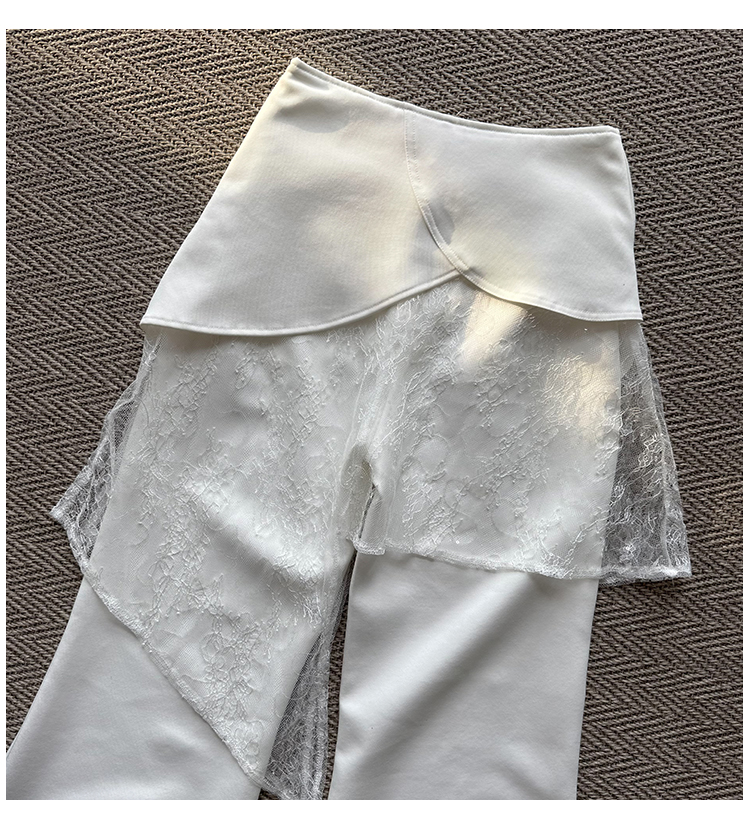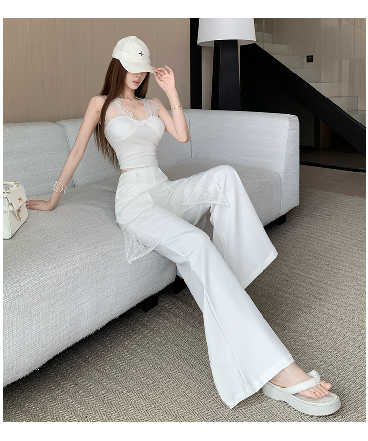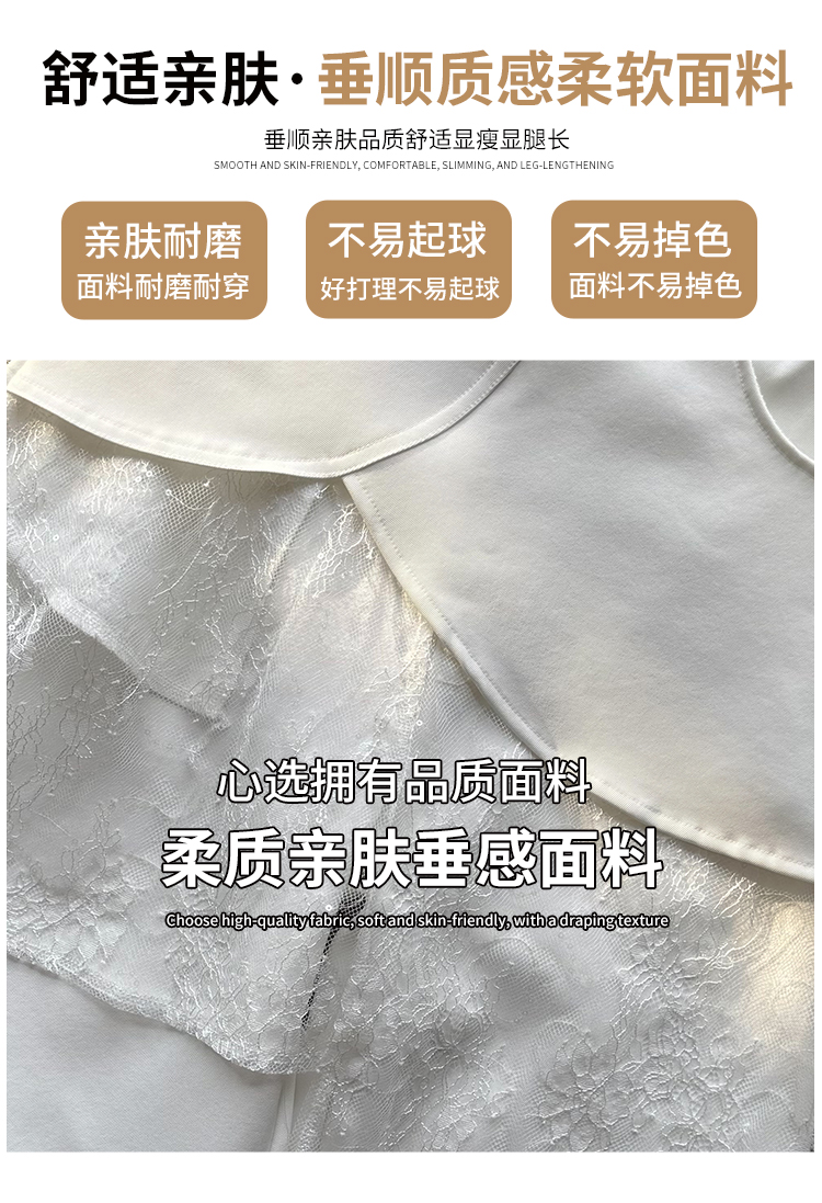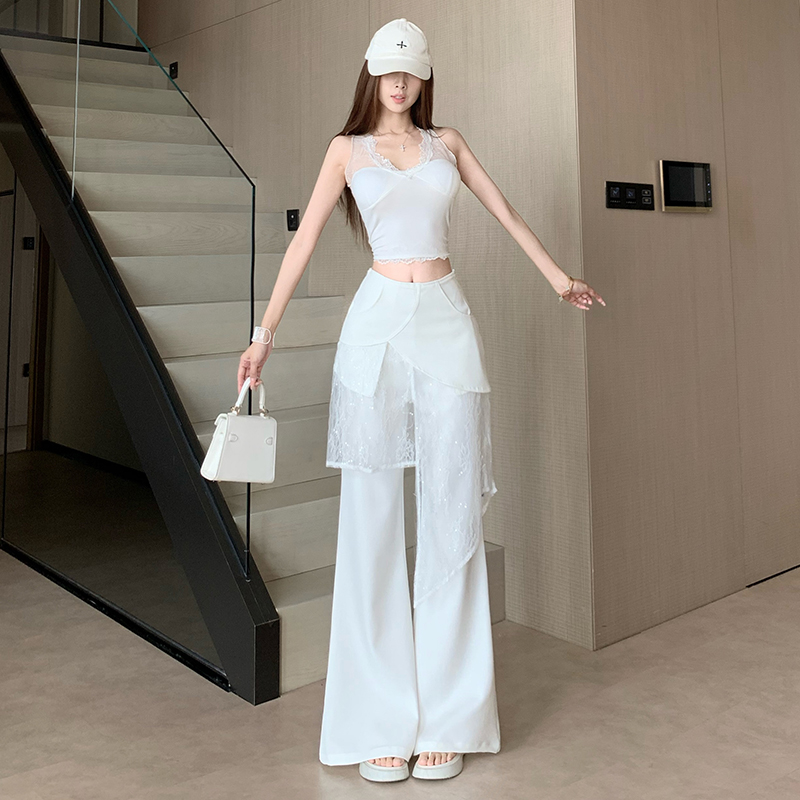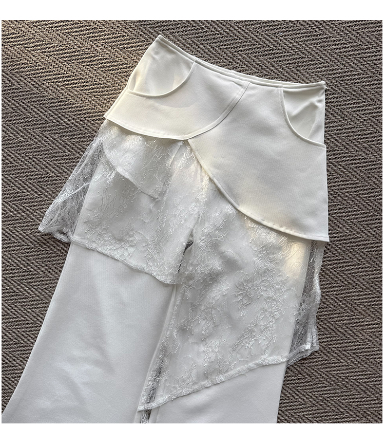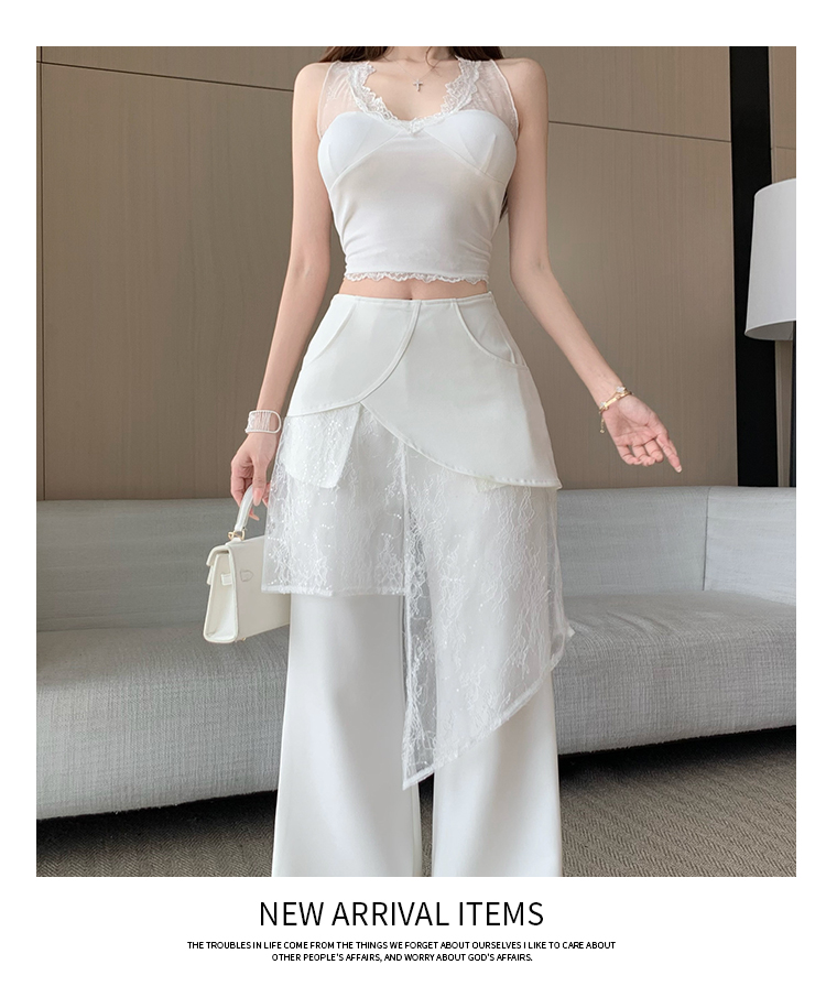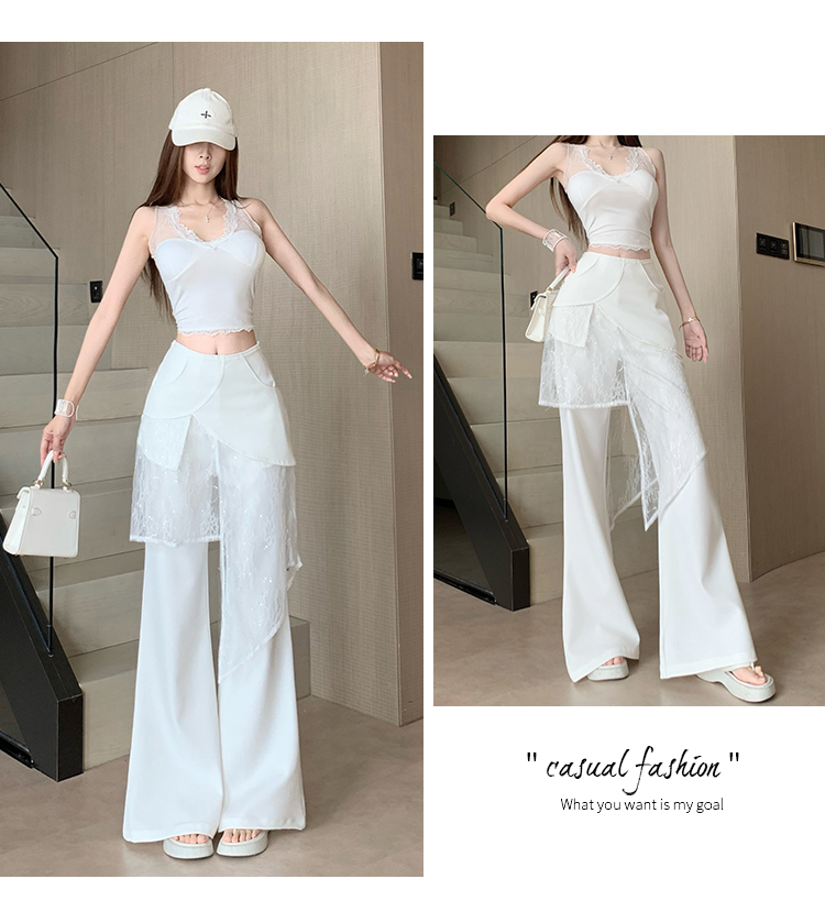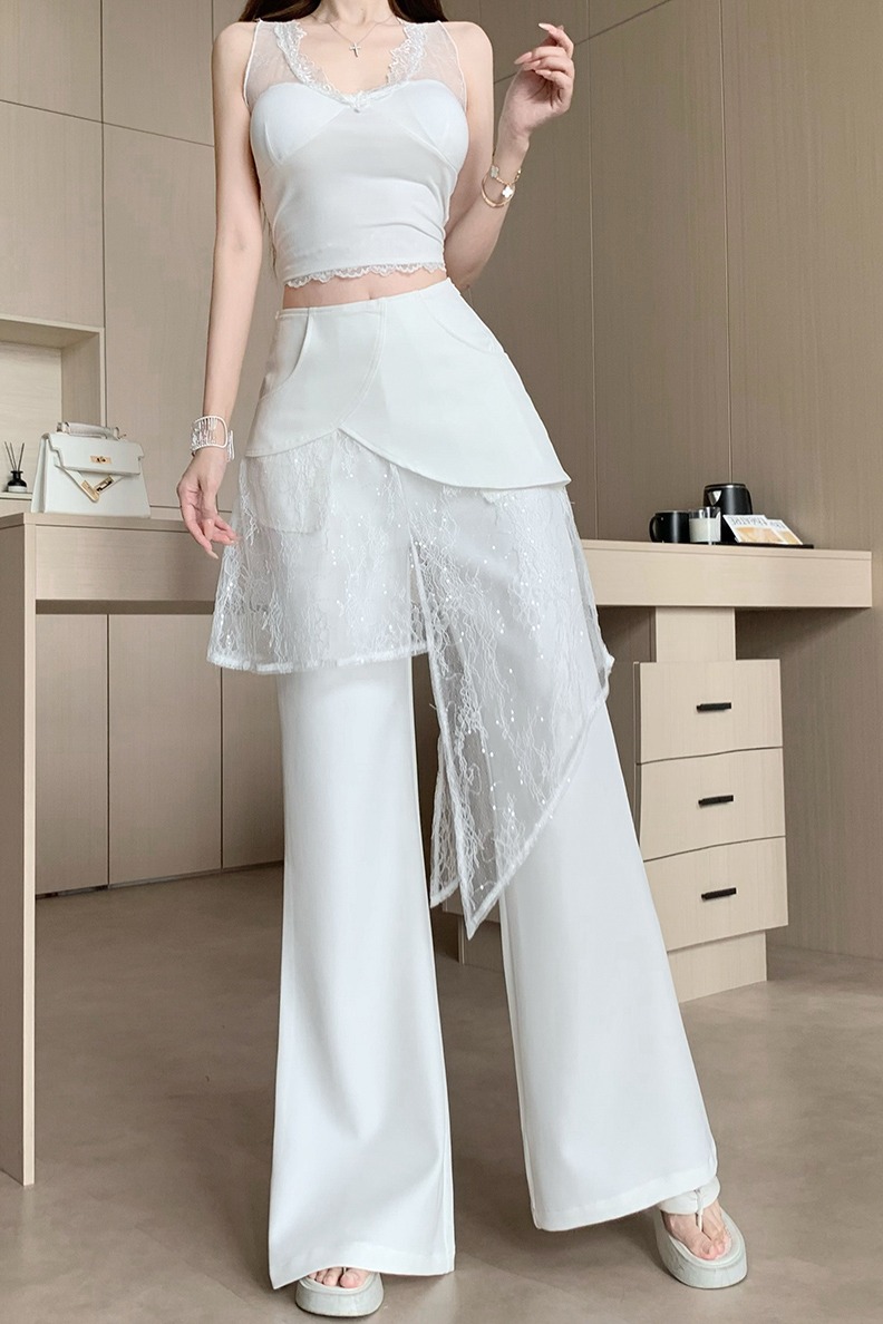 RY2847# 白色叠穿屁帘阔腿裤女夏季薄款假两件拼接高腰垂感直筒拖地休闲裤