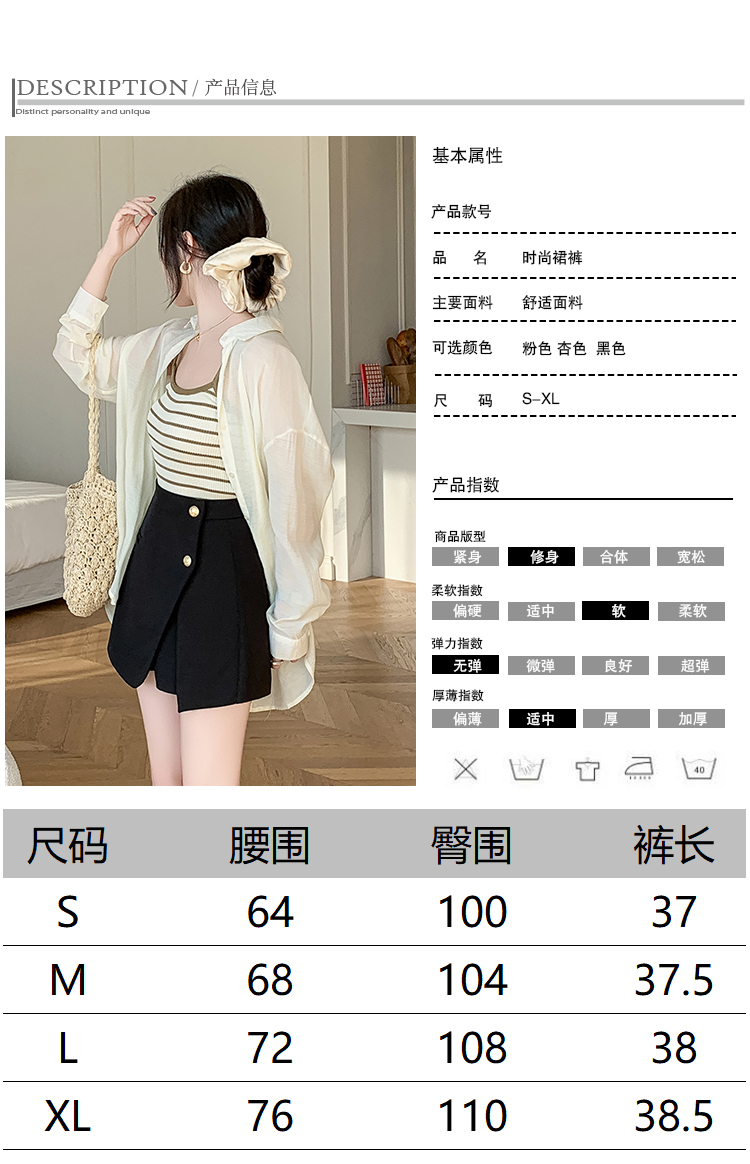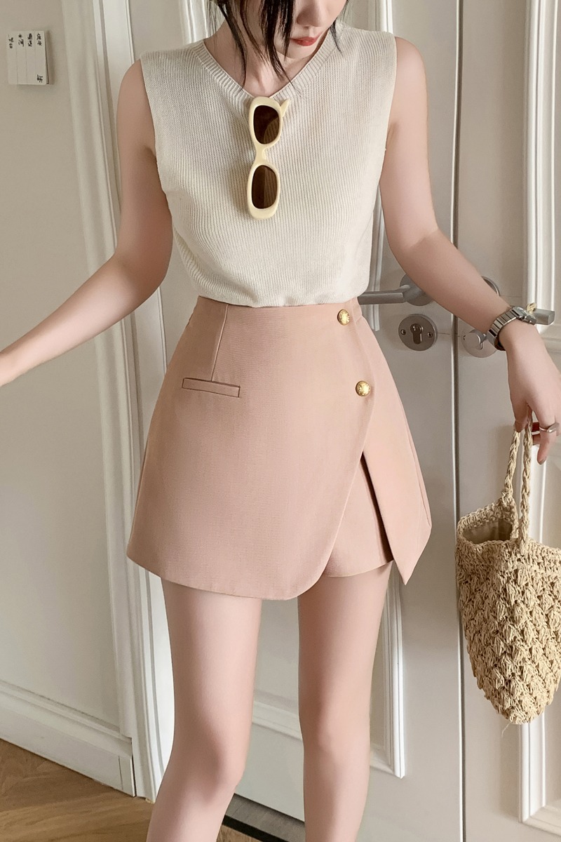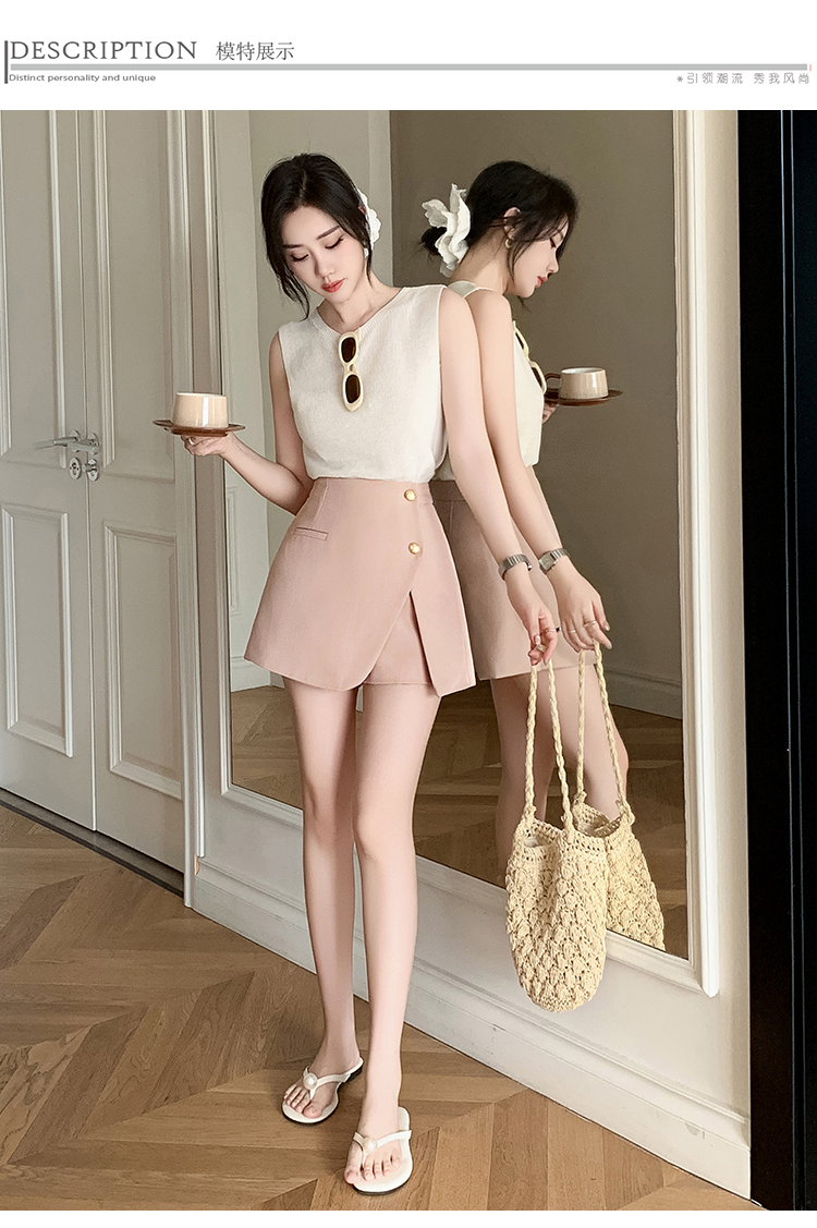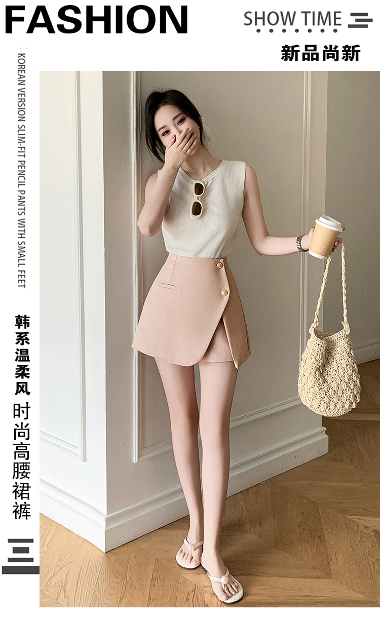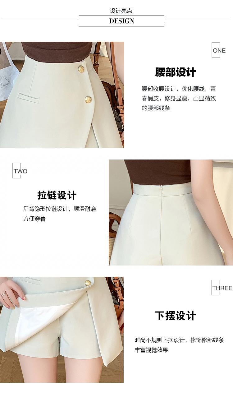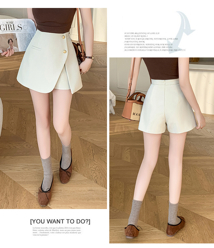 RY3519# 小香风短裤女2026夏季新款西装a字裙裤高腰阔腿靴裤外穿排扣裤裙